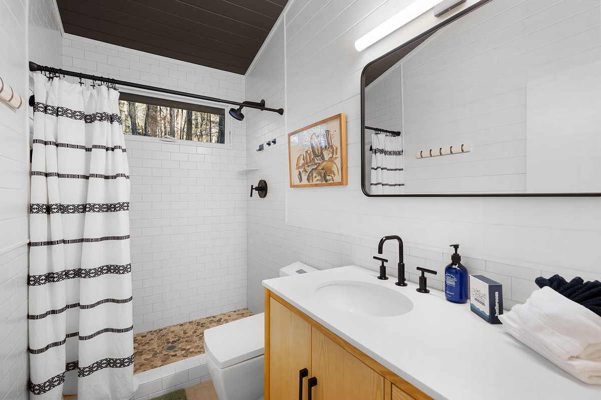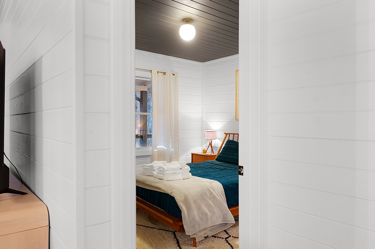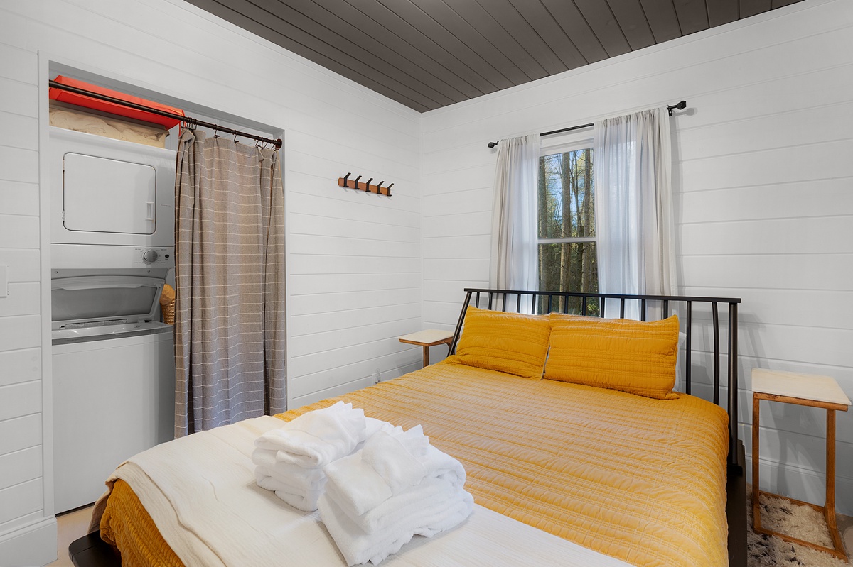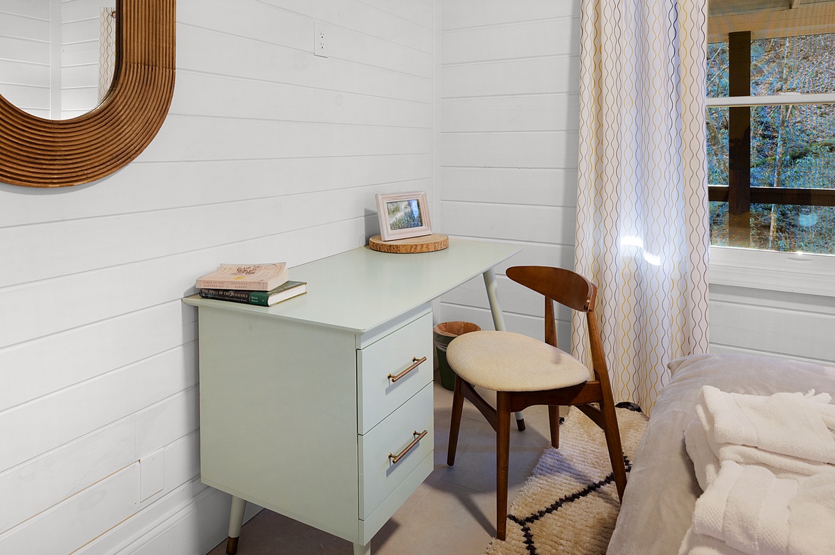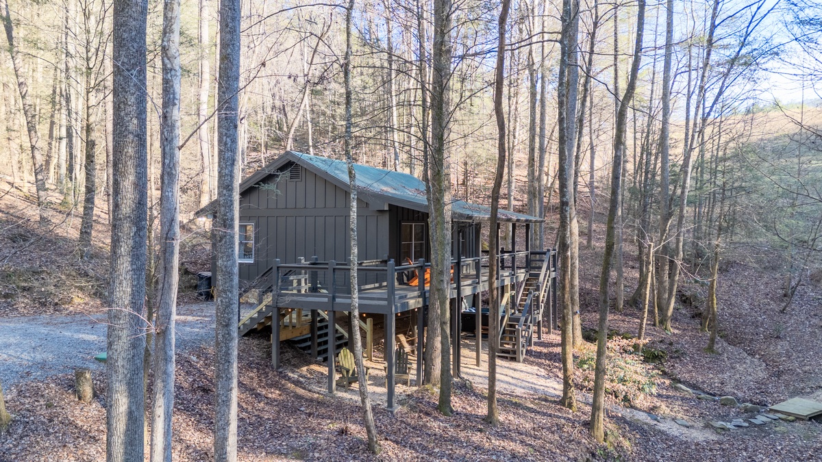 706 On The Creek is a distinctive creekfront cabin set on a private 3-acre lot, offering a bold and creative space with a high-end 1950s, Mid-century modern-inspired vibe. This thoughtfully designed cabin blends modern comforts with artistic style, creating a stay that feels truly unique.
