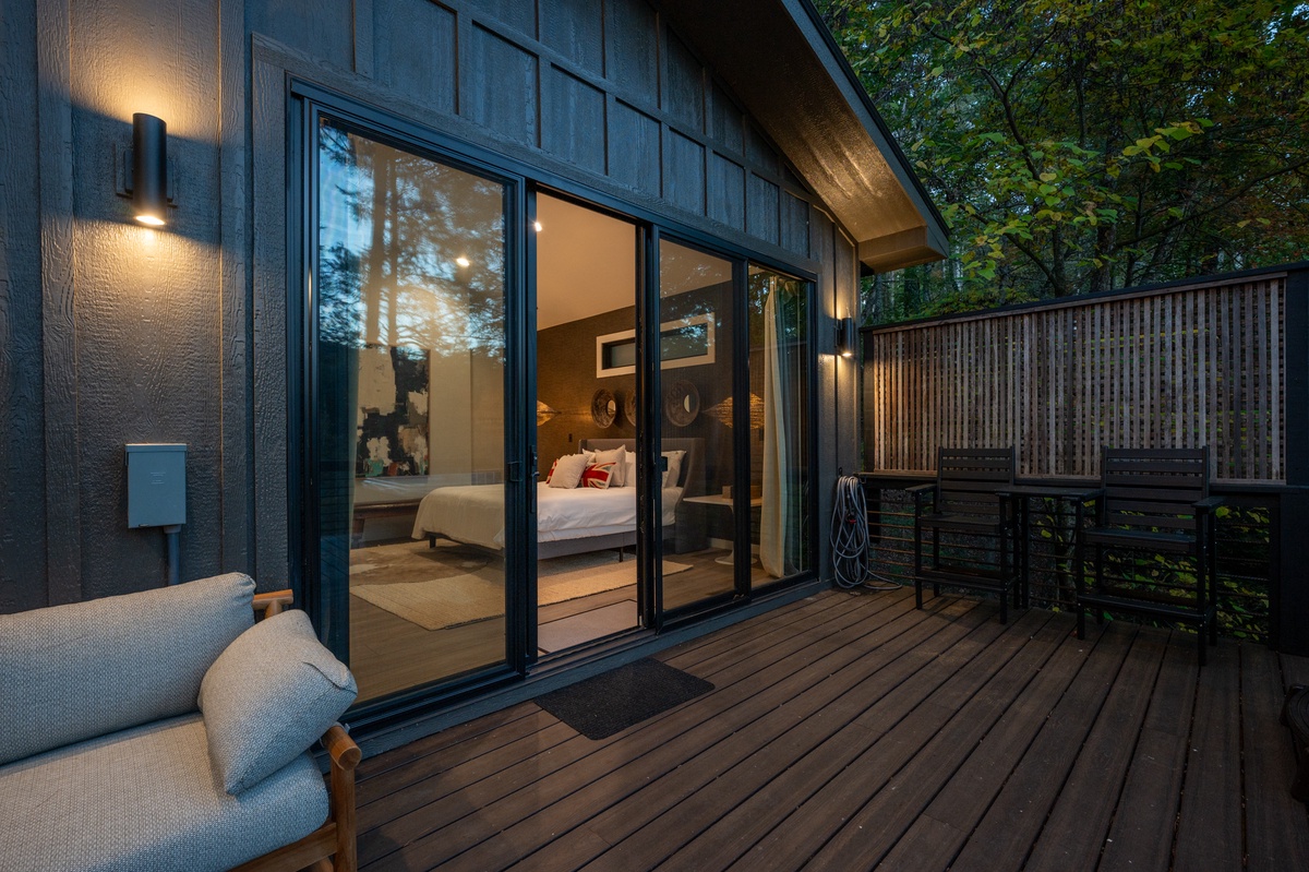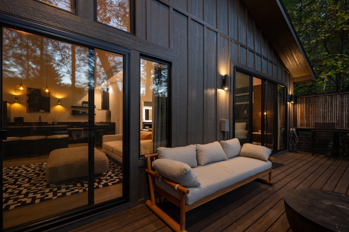 Now available!  A Place & Time just got even better, with a newly added studio featuring a cozy queen bedroom, Smart TV, and convenient wet bar. Step outside onto your private covered deck and enjoy peaceful mountain views with your morning coffee.