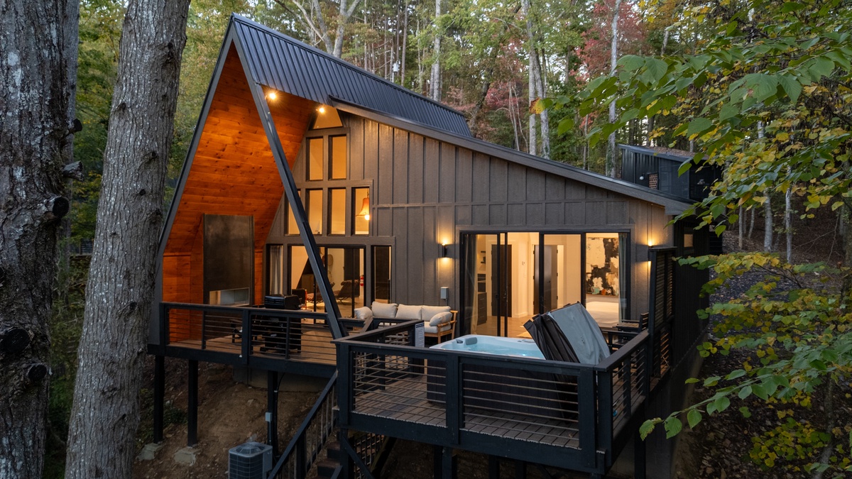 Tucked among the towering pines of the North Georgia Mountains, A Place & Time is a stunning modern A-Frame designed for those who crave simplicity, serenity, and style. This open-concept studio cabin blends contemporary design with rustic charm, offering a peaceful escape where everything you need is thoughtfully placed within one warm and inviting space.
