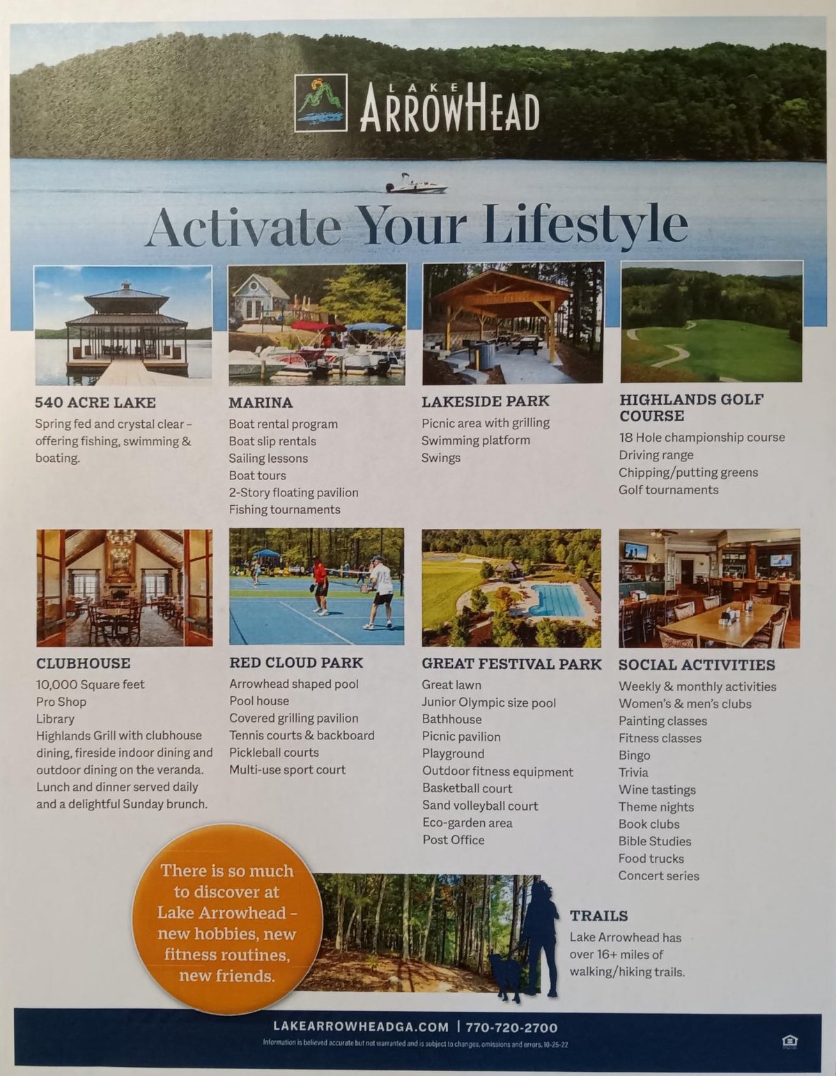 Escape to the crystal-clear waters of Lake Arrowhead, GA and enjoy endless amenities and recreation for all. Ranked one of the cleanest lakes in the state, Lake Arrowhead is perfect for boating, fishing, kayaking, and swimming either in the lake or in one of two community pools. Lake Arrowhead is also known for its 18-hole Championship Highlands Golf Course, considered to be one of the best golf courses in all of Georgia. Ease into a peaceful, gorgeous lakeside getaway at A Stoney Marina. This 2-level luxurious 3 bedroom, 2.5 bath villa with garage, boasts lakeview floor to ceiling windows and superior accommodations.