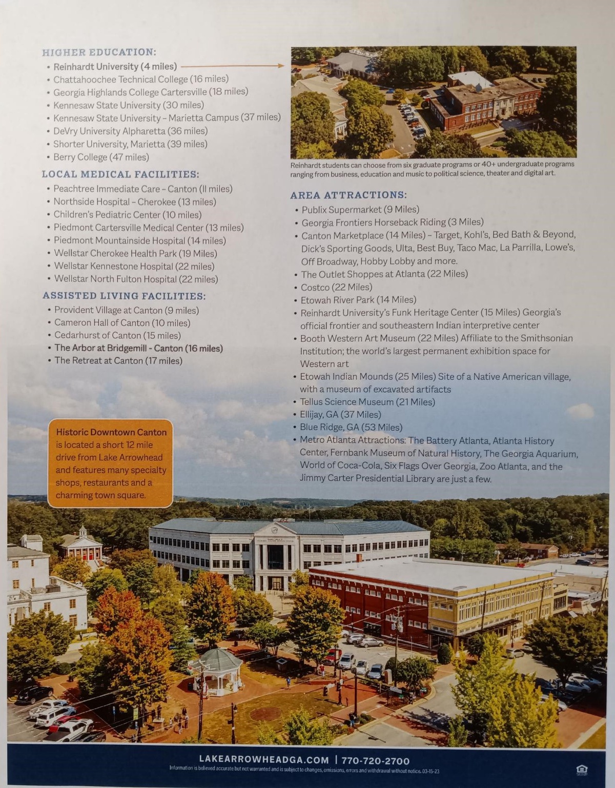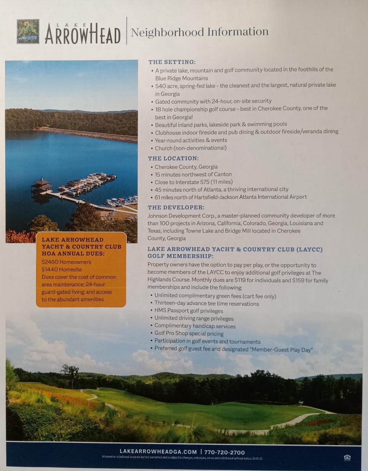 A Stoney Marina, located in the upscale, gated community of Lake Arrowhead is 1 hour from metro Atlanta in the foothills of the Blue Ridge Mountains and just 15 minutes from the Canton area with a variety of fine dining options, shopping and community festivals. Lake Arrowhead is just over an hour south of Blue Ridge, GA.