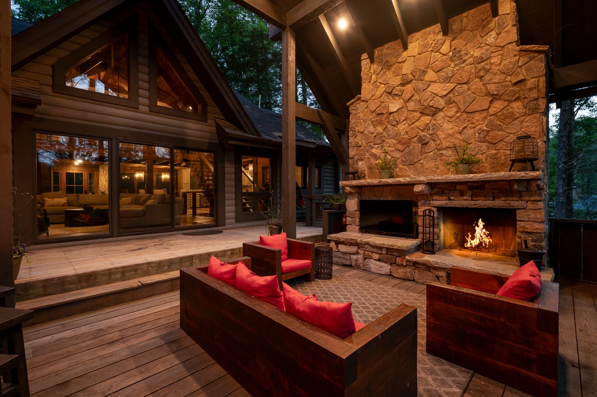 Let’s take an adventure outside. With as much to offer outside as inside, A Stoney River boasts some incredible outdoor living that can be enjoyed during every season. The entry level covered deck has a large stack stone wood burning fireplace, TV and high-top seating with custom Edison bulb light fixture to create a warm evening glow for entertaining and relaxing. The lower level deck mirrors the deck amenities above and includes, grilling, games and walk way access to a covered hot tub tucked away and privately situated on the side of the home. It’s hard to describe the feeling you will get in each of the environments, but the owners of this home are certain you will make memories to last a life time here.