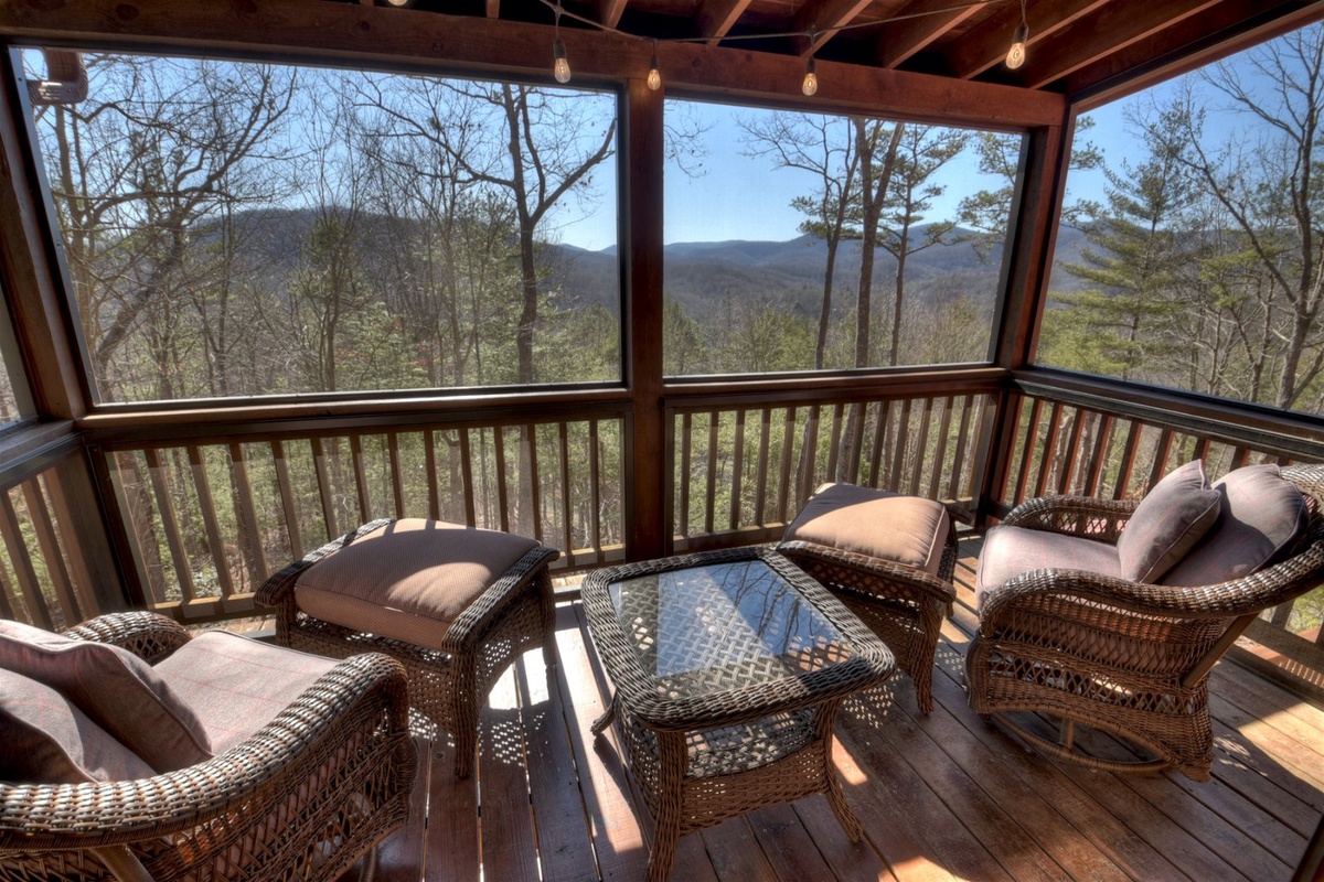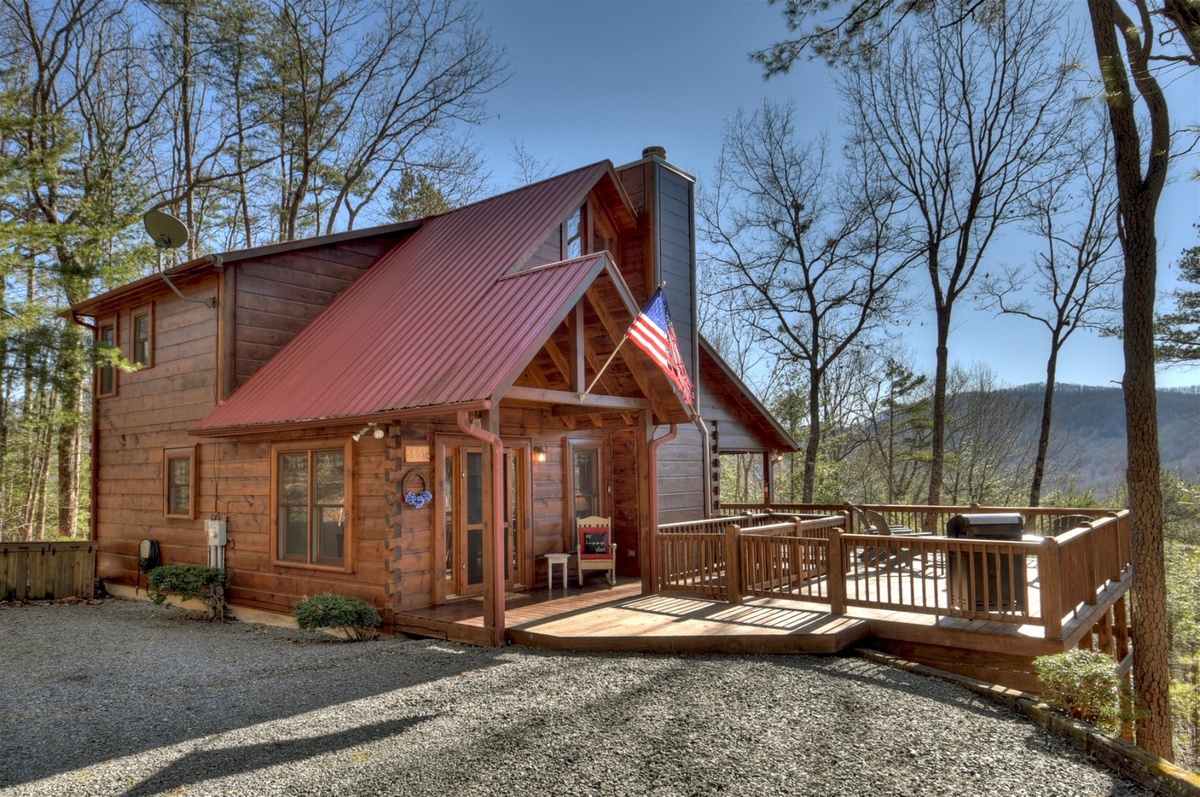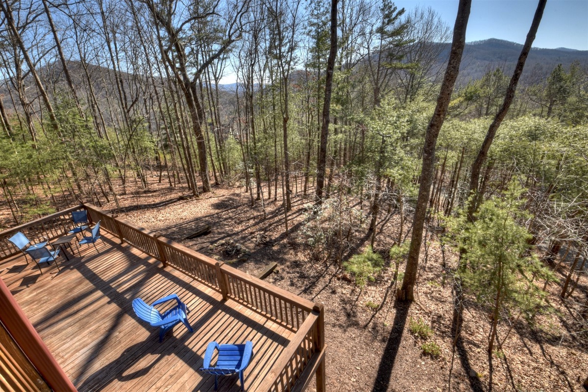 If deck life is what you’re craving, you’ll be in heaven at A Walk The Clouds! Be sure to spend some time outside, where the calming sounds of the United States Forest Service area are always present. Enjoy a fun evening around the firepit on the main-level deck, where you can roast hot dogs and watch the sun go down over the mountains. Sip some sweet tea in one of the rockers on the back porch, or take in the views from the full-length covered deck off the main level.