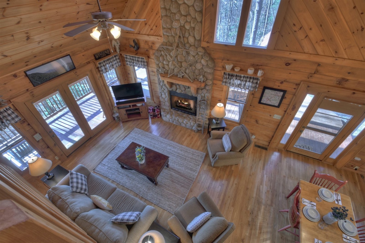 If gorgeous cabins with multi-level decks and long-range mountain views make you smile, you might just be the happiest person in the world when you enter A Walk In The Clouds.