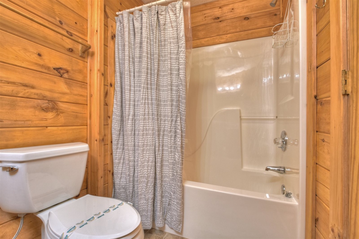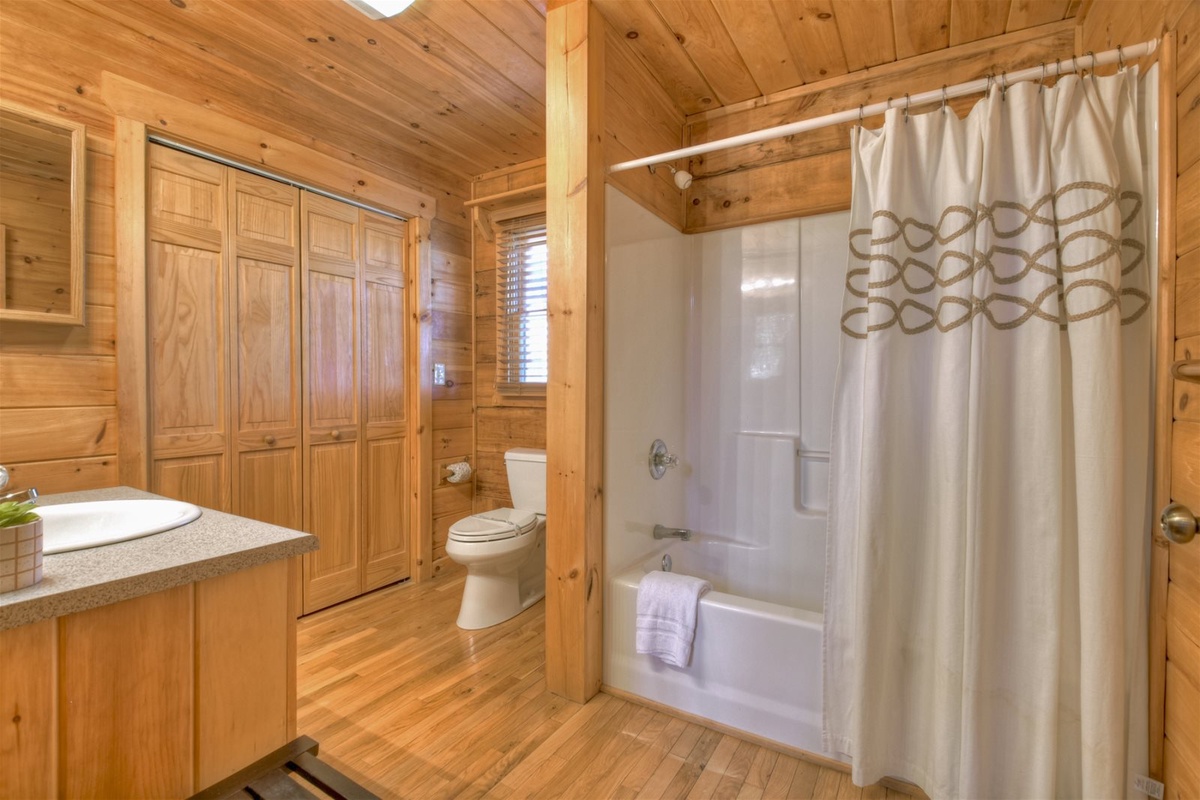 - Shared bathroom with shower/tub combo