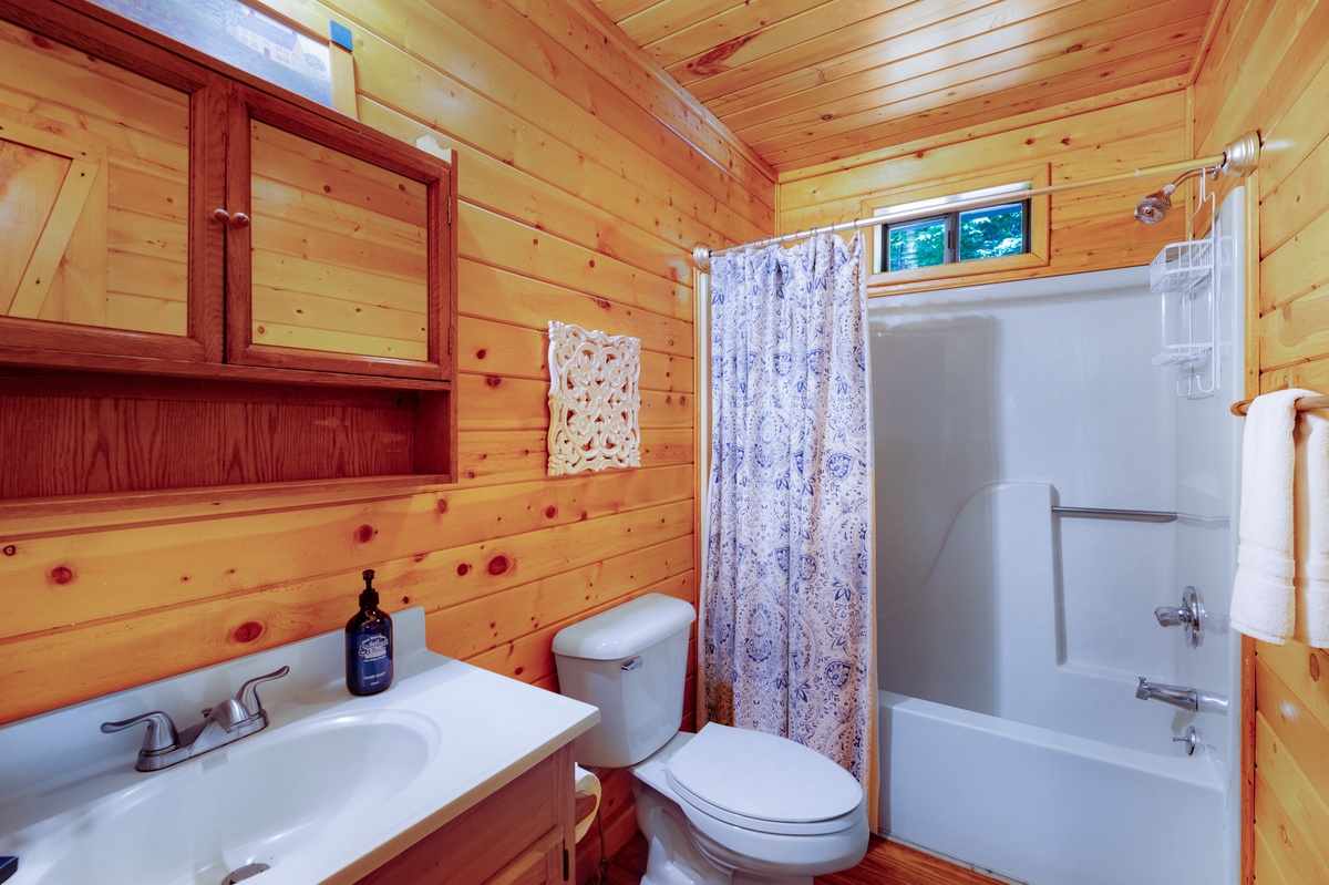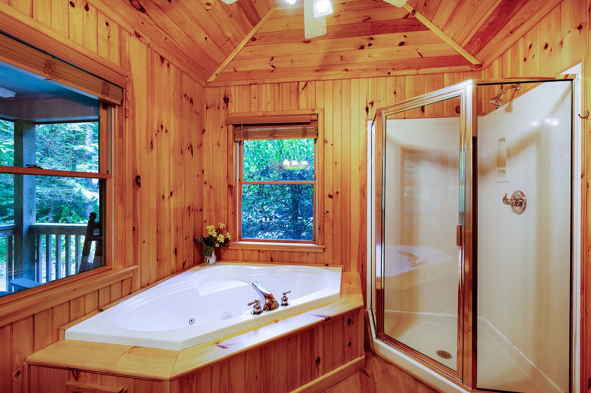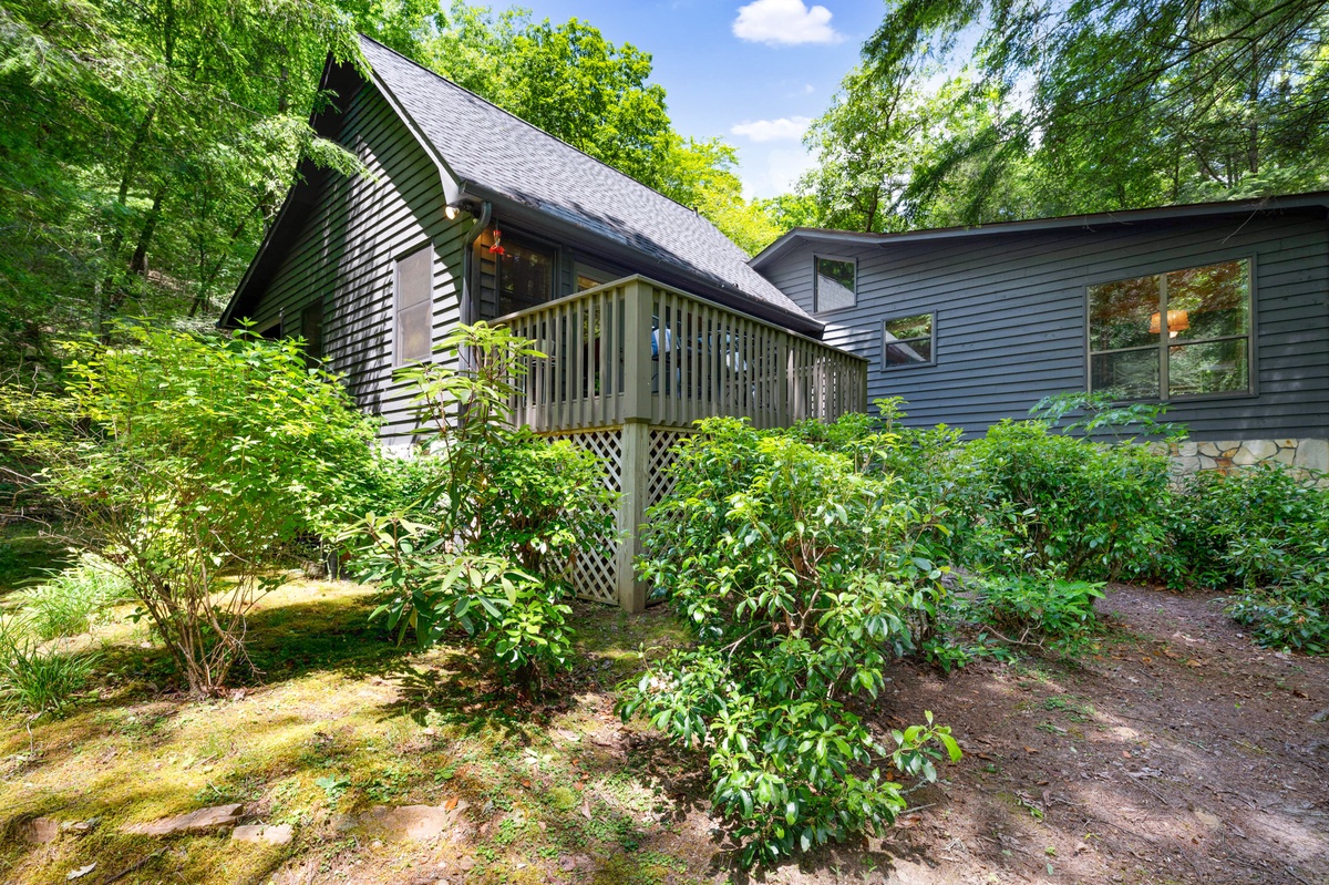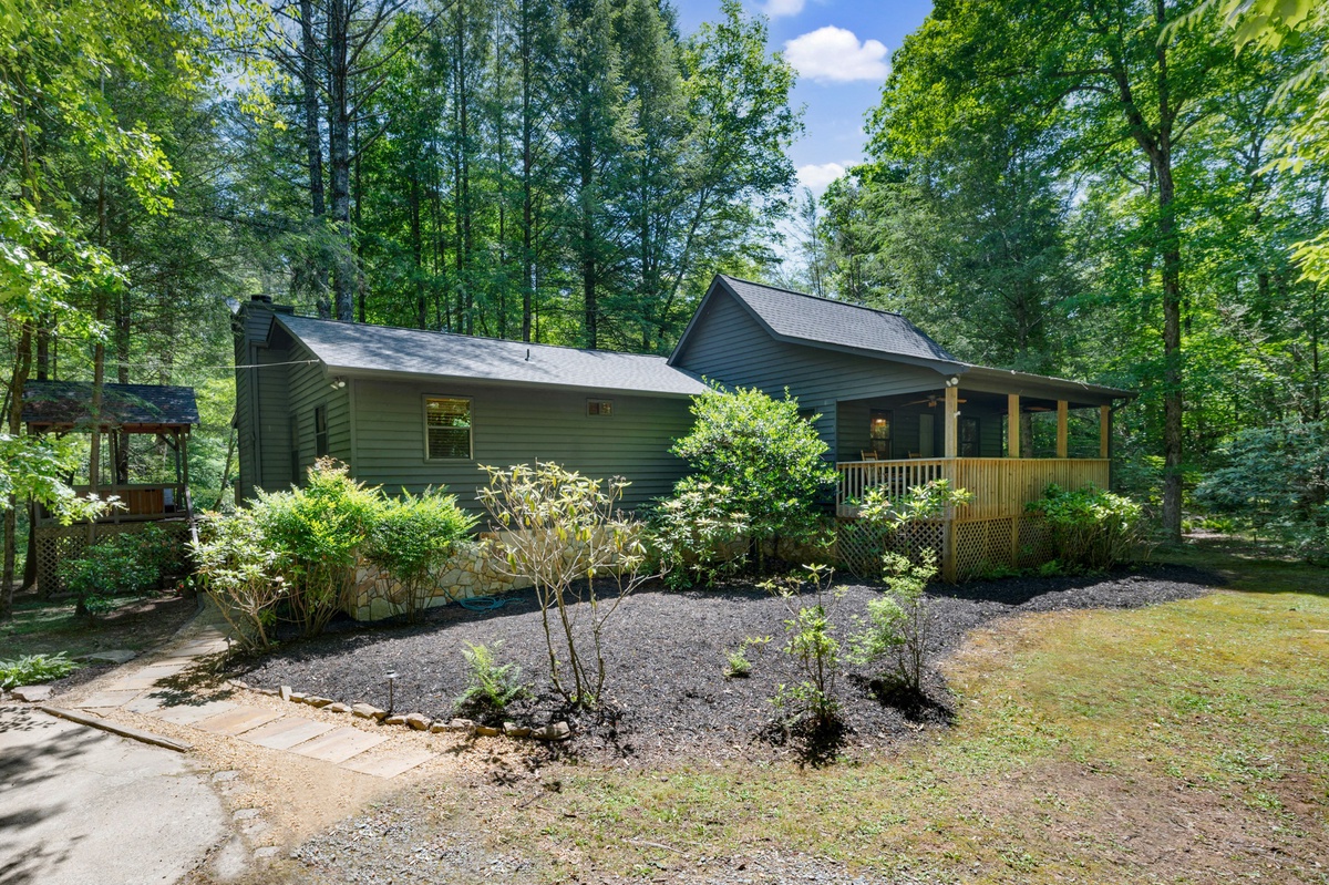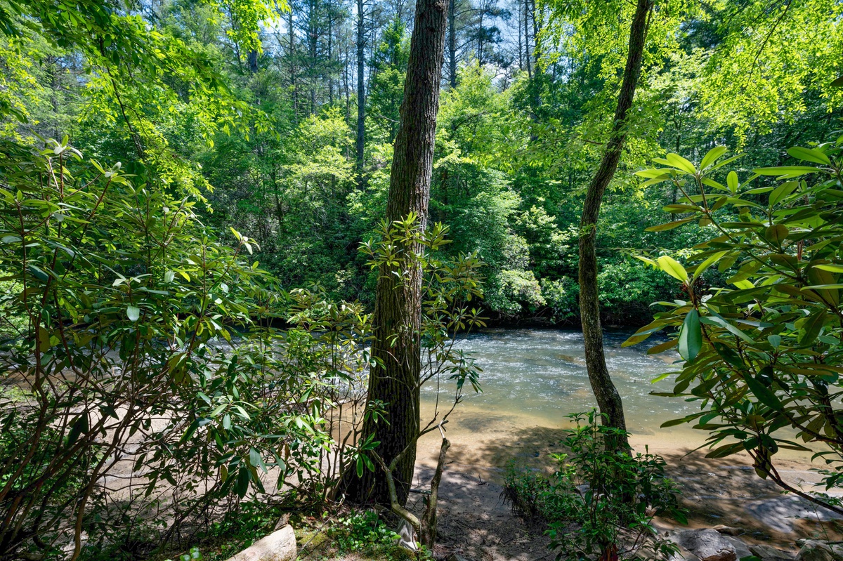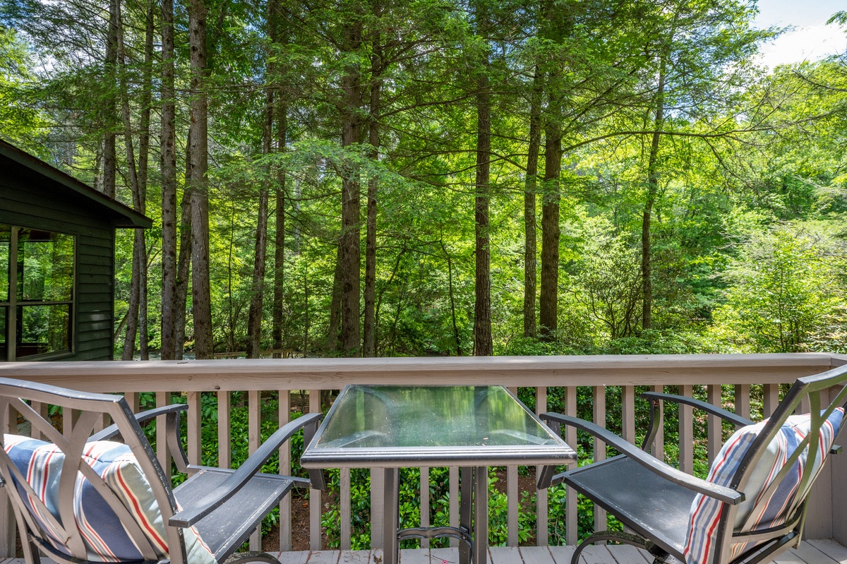 When you return to your retreat, let the hot tub on the covered deck embrace you with its warm, soothing waters. Soak away any tired muscles while admiring the panoramic view of Fightingtown Creek, flowing right before your eyes. Immerse yourself in the lush greenery, vibrant flowers, and the captivating presence of Mountain Laurel and Rhododendron that surround you.