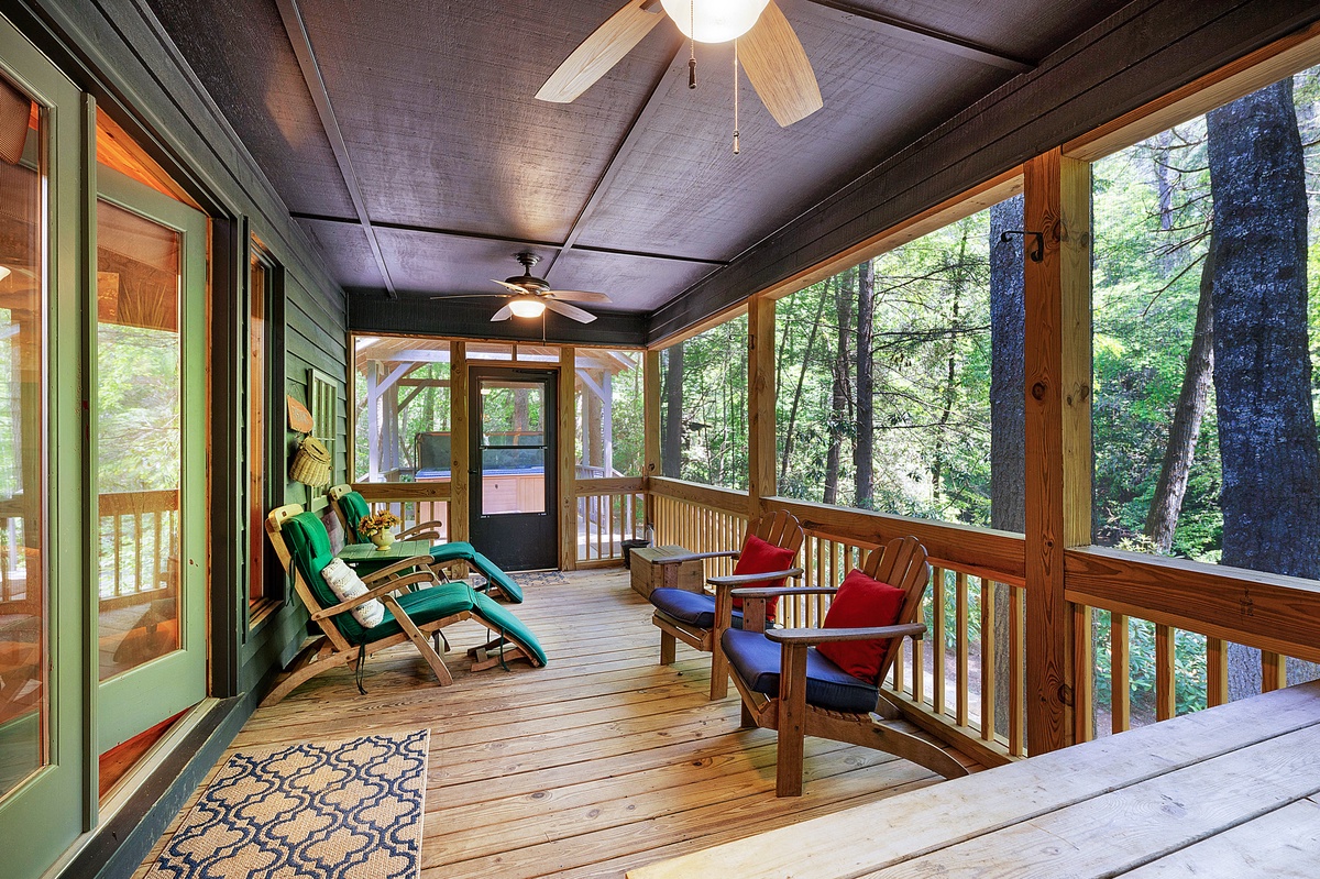 Step into your comfortable getaway where you can indulge in various activities. If you're an avid angler, grab your waders and cast your line into the sparkling waters of Fightingtown Creek, filled with lively fish waiting to be caught. For those seeking relaxation, sink into the cozy sofa with your favorite book, or unwind on the screened porch while the soothing sounds of the cascading creek serenade you.