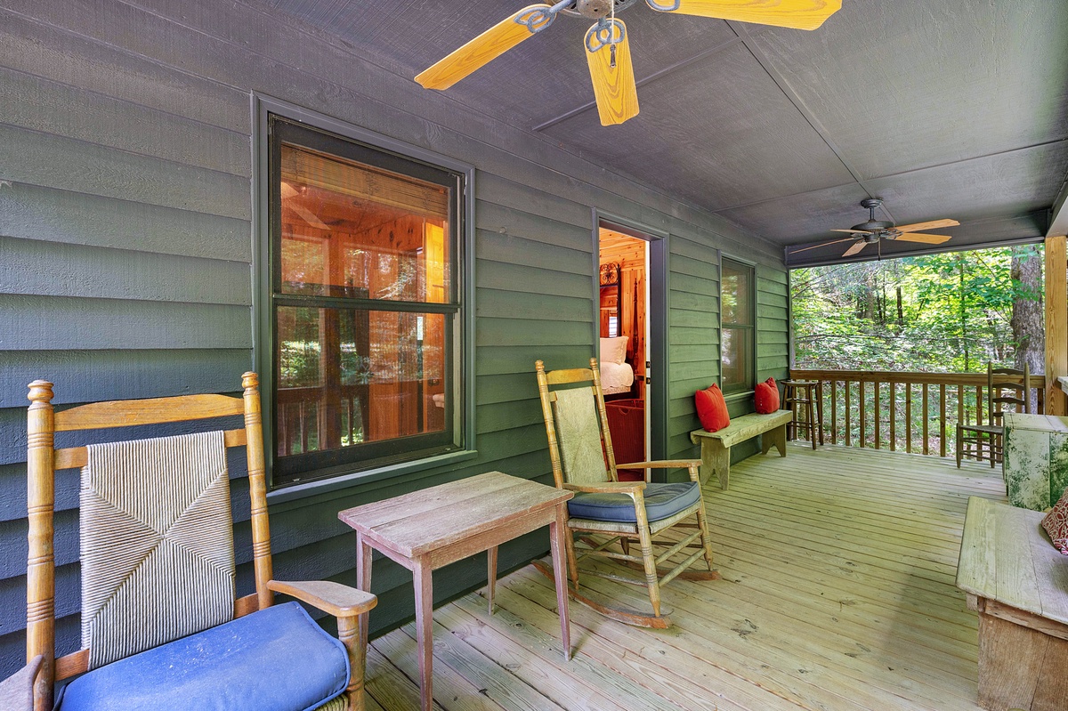 • Back porch holds 2 rocking chairs, bench, stool and chair