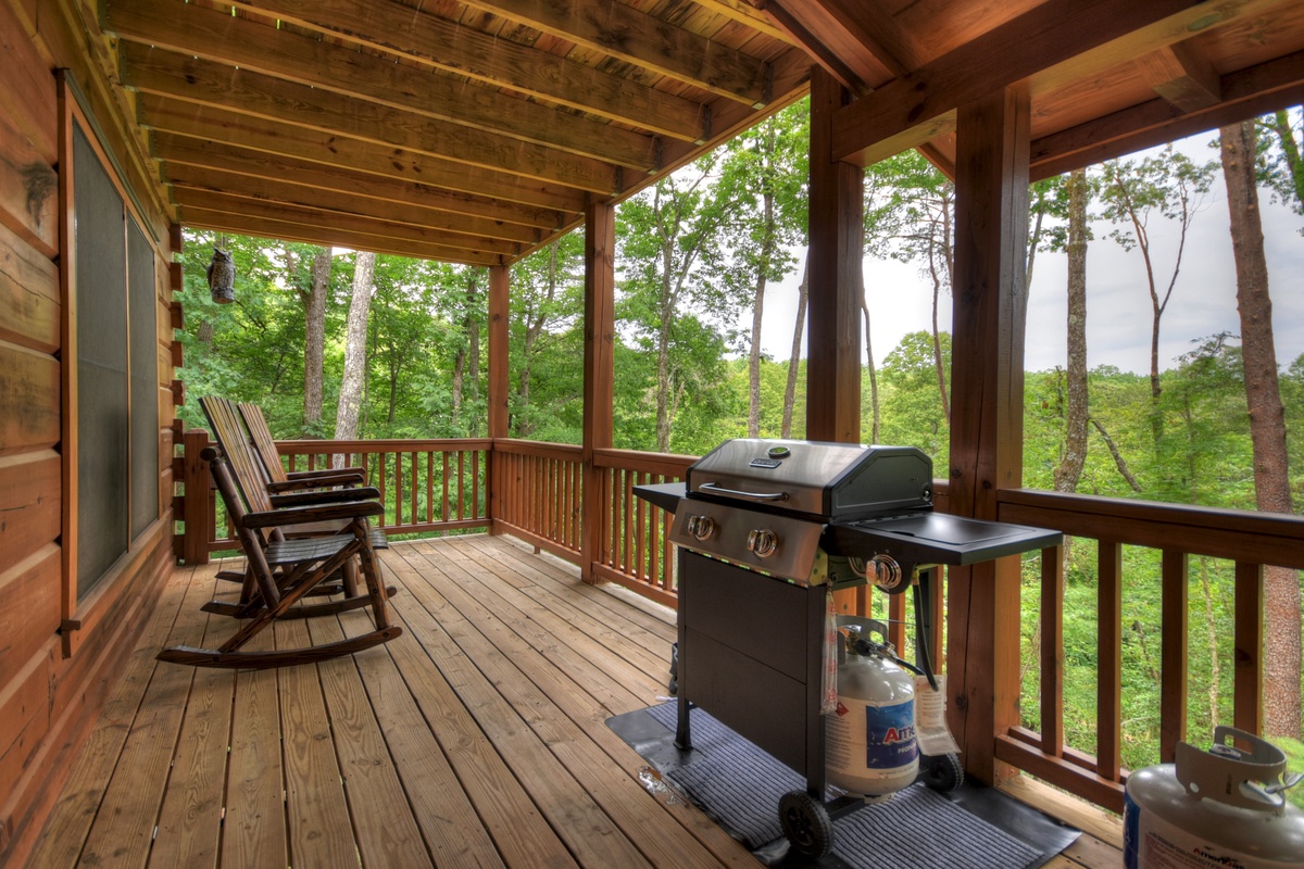 While spending time on the back deck, make sure to take a dip in the brand new, 4-person hot tub offered to you. Dad can cook the burgers on the gas grill while everyone else either relaxes in the 2 wooden rocking chairs or soaks their bones in the stress-relieving hot tub while enjoying the peaceful nature of the quiet forest view.