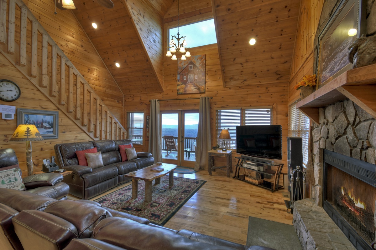 - Woodburning fireplace, 50" TV and sound bar