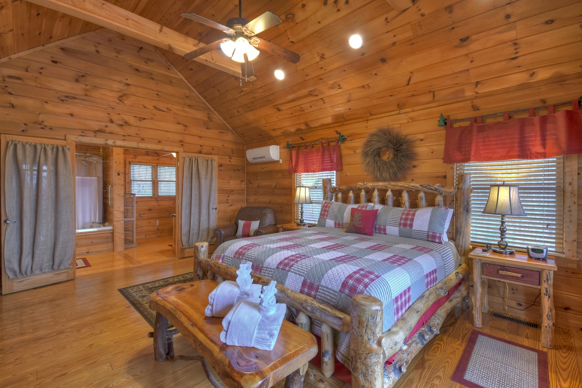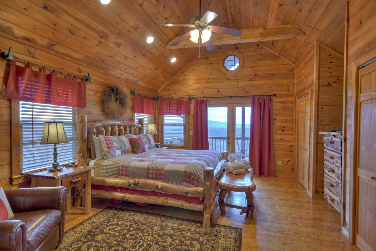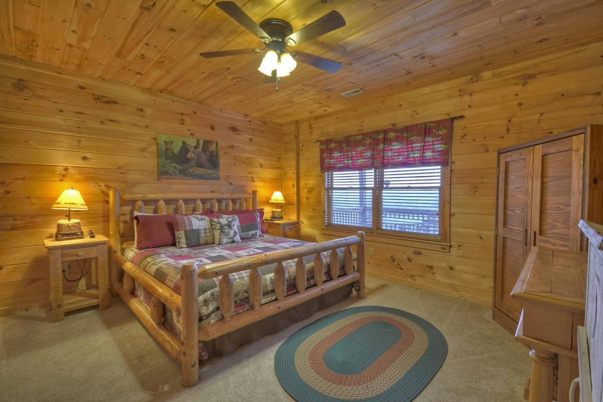 - Carpeted guest king bedroom with 48" TV and VCR/DVD player