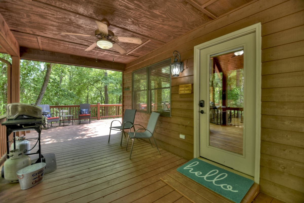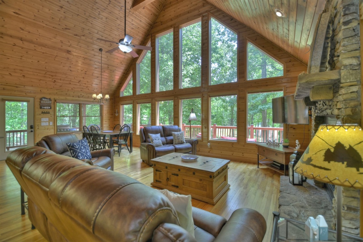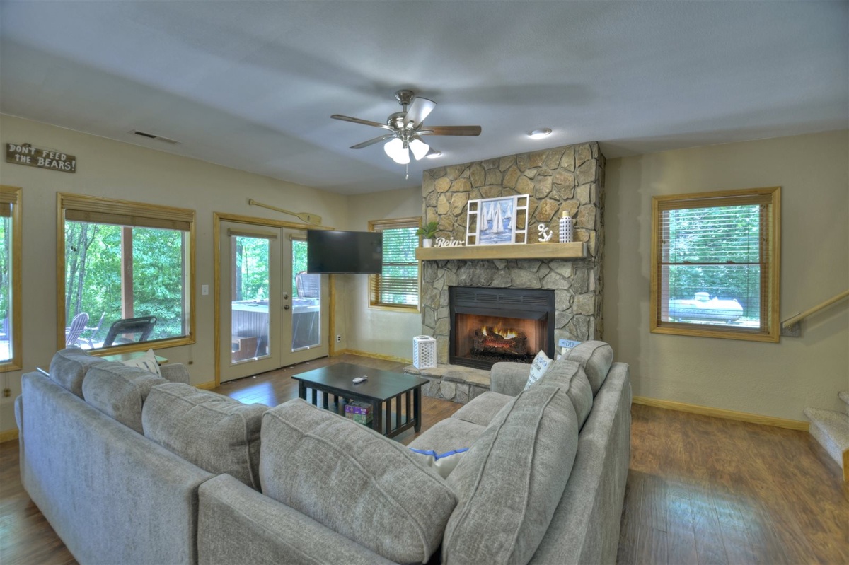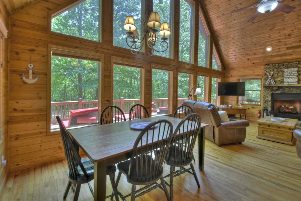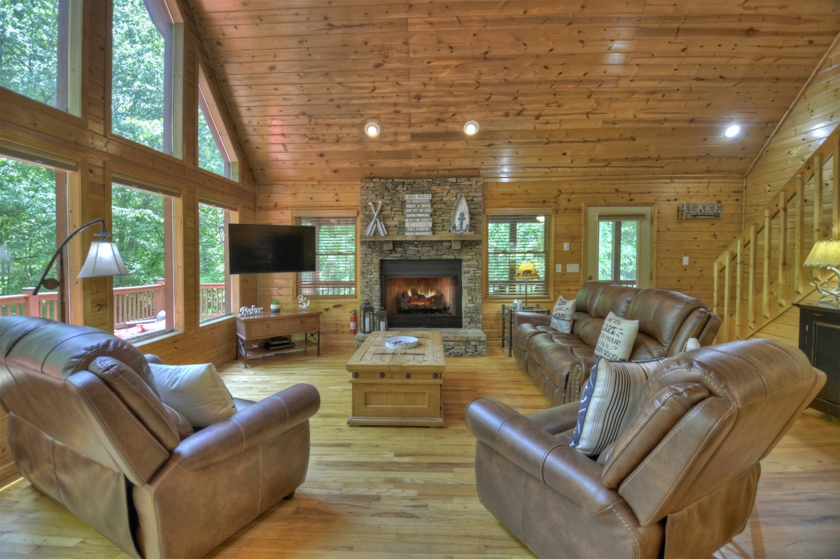 As you step inside Anchors Away, you'll be immediately struck by its tasteful and cozy decor. The cabin exudes warmth and character, with wooden accents and delightful touches throughout. The inviting ambiance is complemented by two indoor gas fireplaces, creating a cozy atmosphere for relaxing evenings or cooler nights.