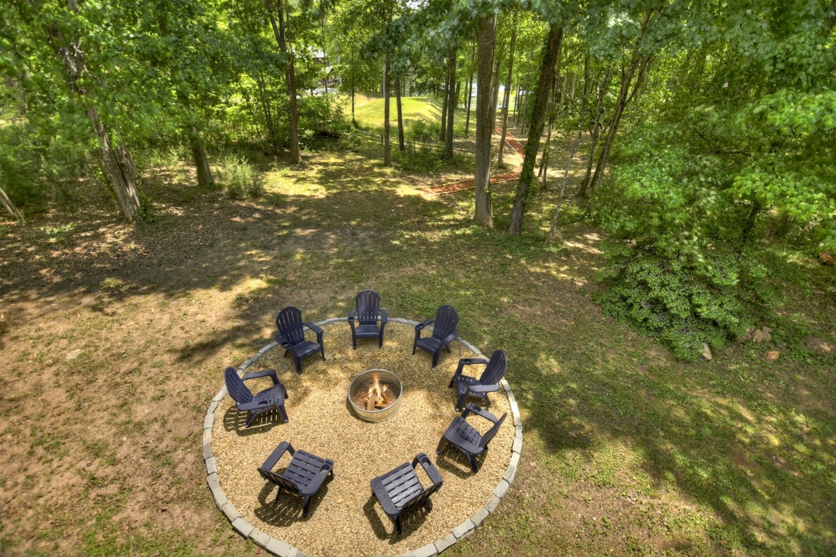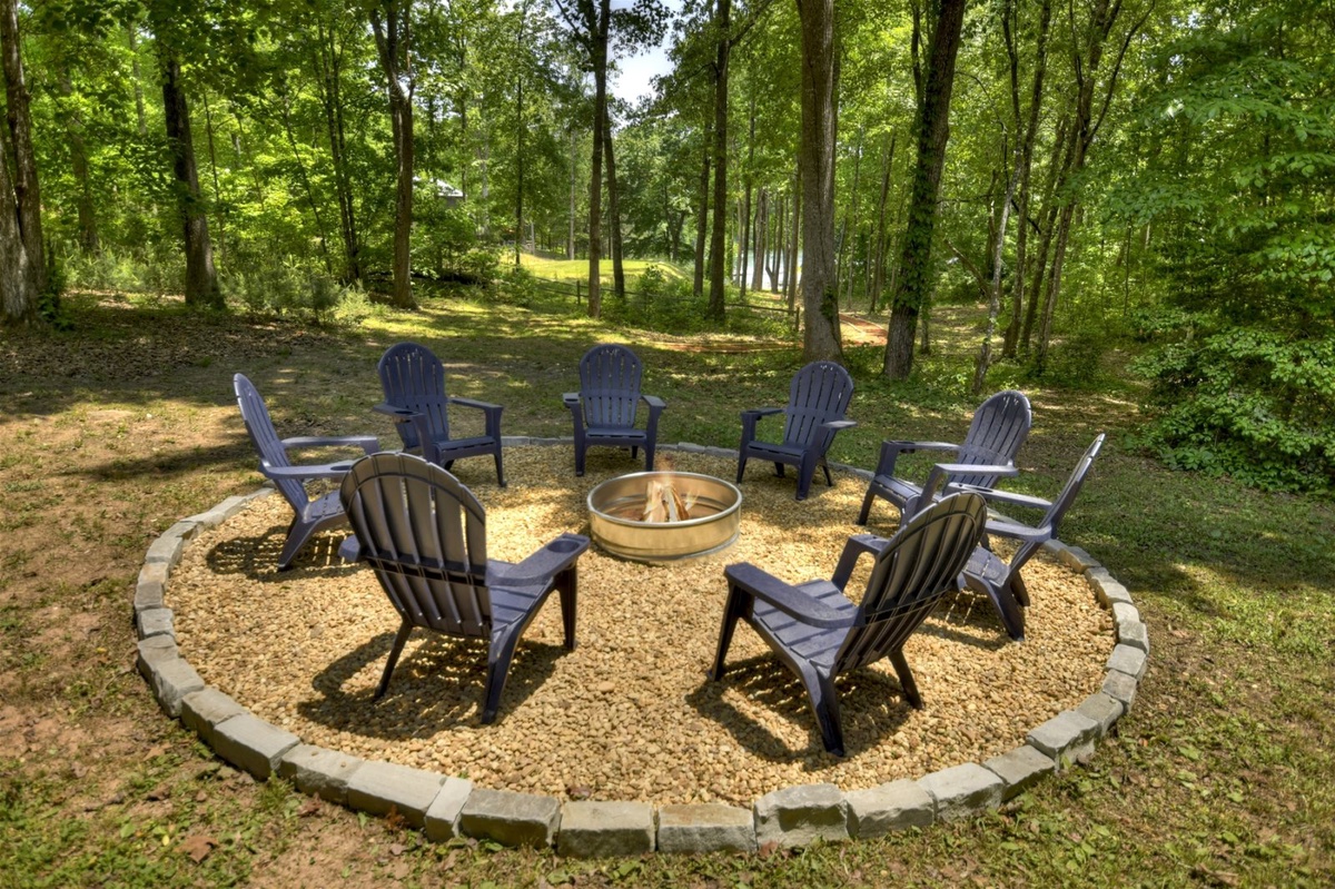 - Backyard fire pit with 8 Adirondack chairs