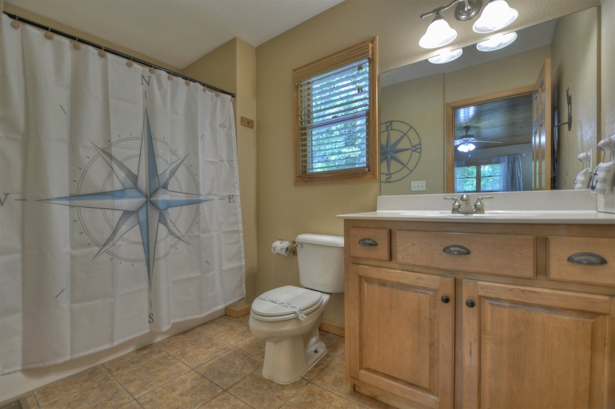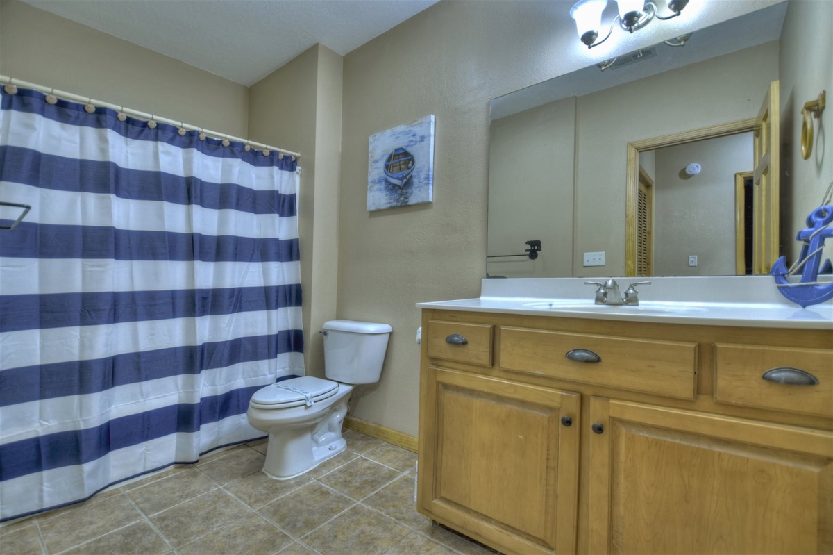 - Shared bathroom with shower/tub combo