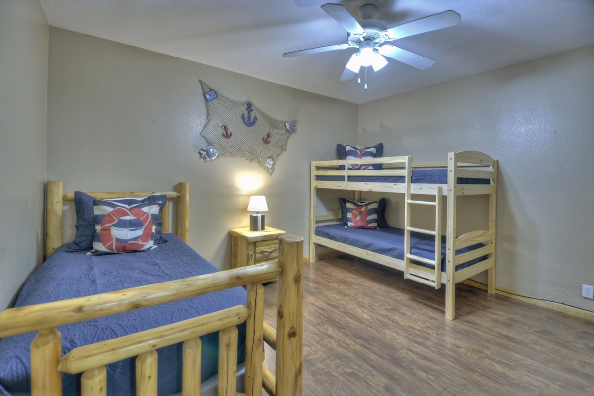 - Guest bedroom with twin size bunkbed, single bed and closet