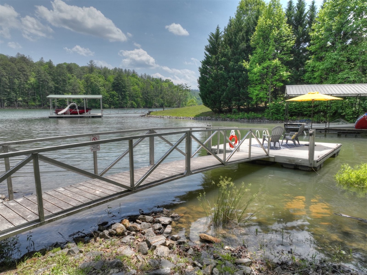- Dock with 2 Adirondack chairs and umbrella