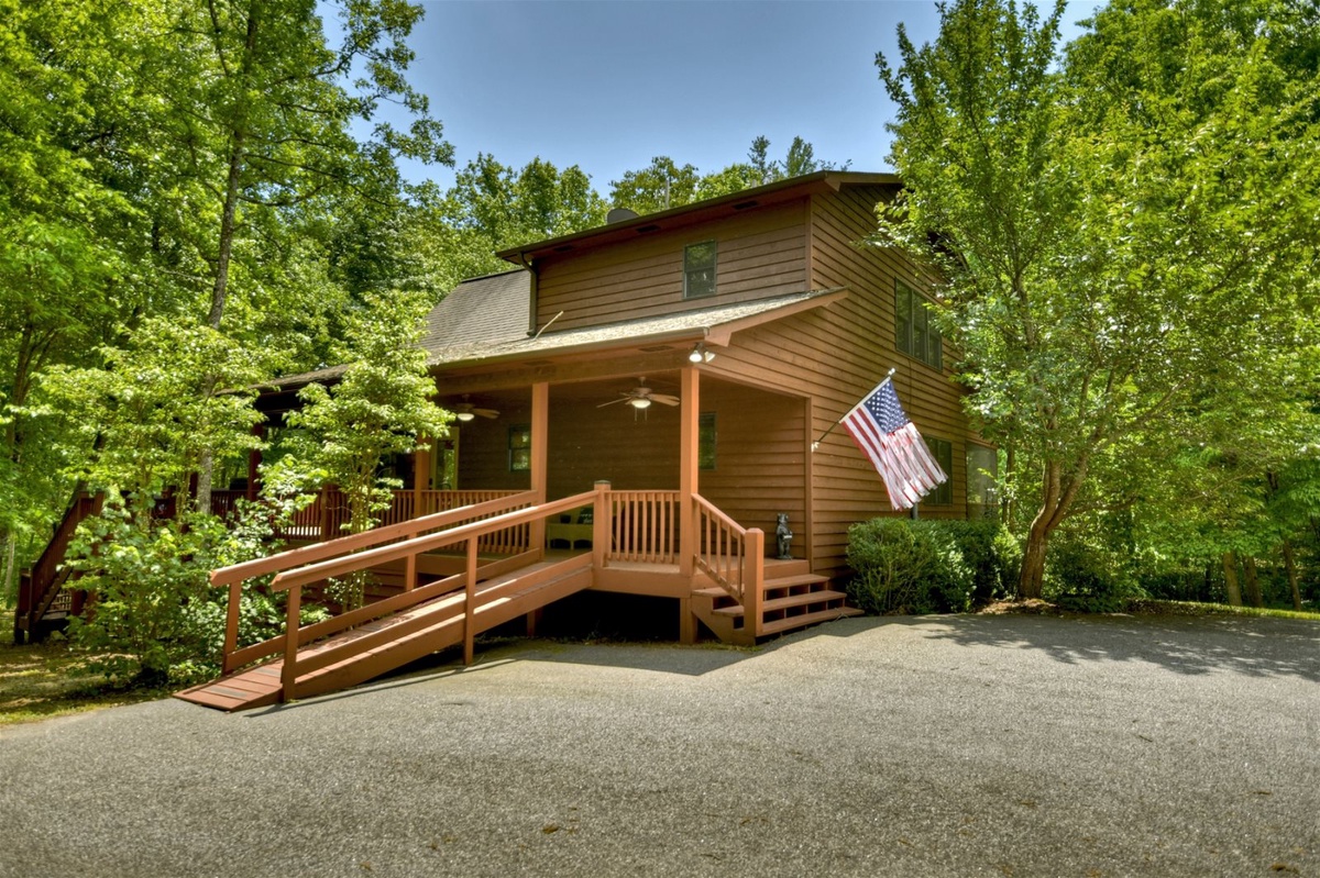 The paved access ensures a smooth arrival and departure, and the cabin's location provides a sense of seclusion while remaining conveniently accessible.