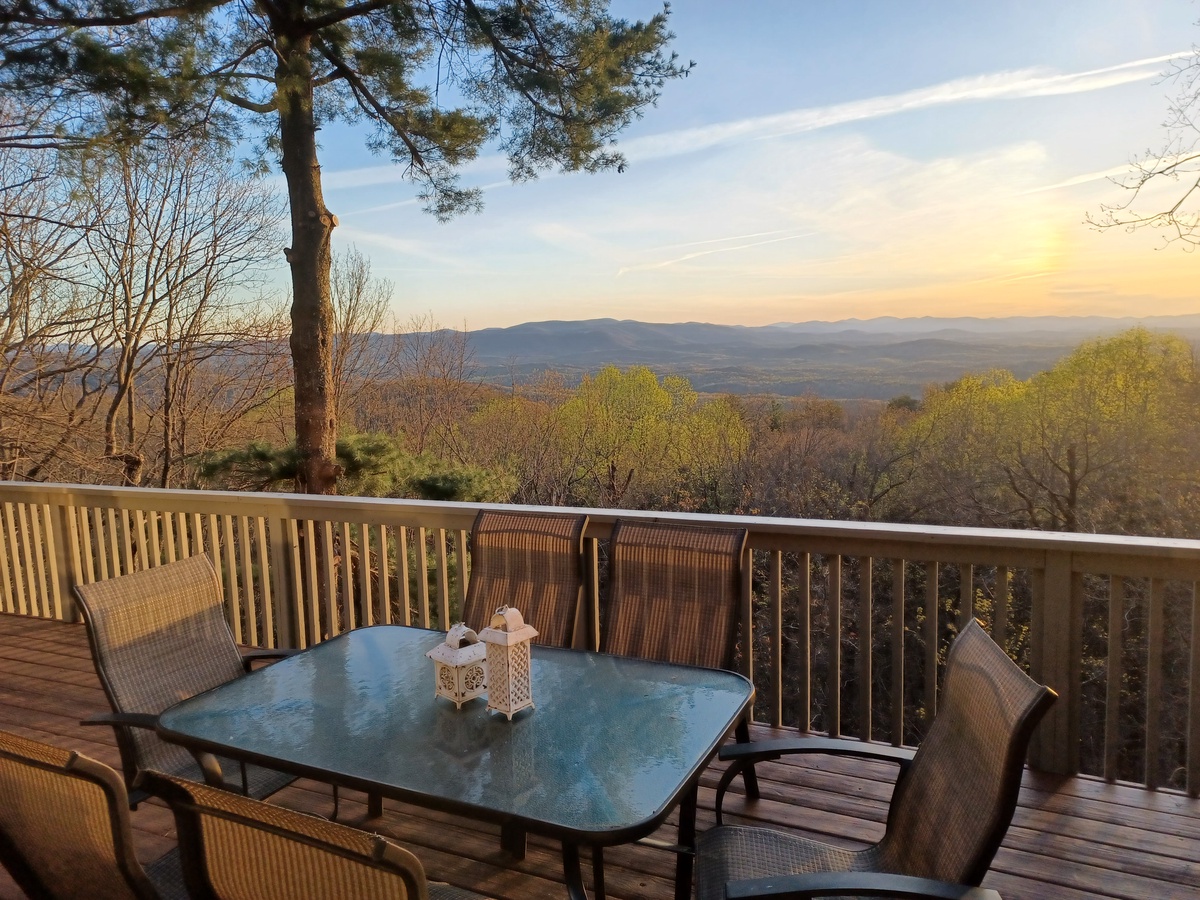 What a view!! ABSOLUTELY INCREDIBLE. Experience layered long-range mountain vistas that change with the light of day, from sunrise to sunset, and are backlit by pink, orange, and blue skies. Enjoy these stunning views from the upper and lower decks, dining table, living room, master bedroom, and lower living areas.