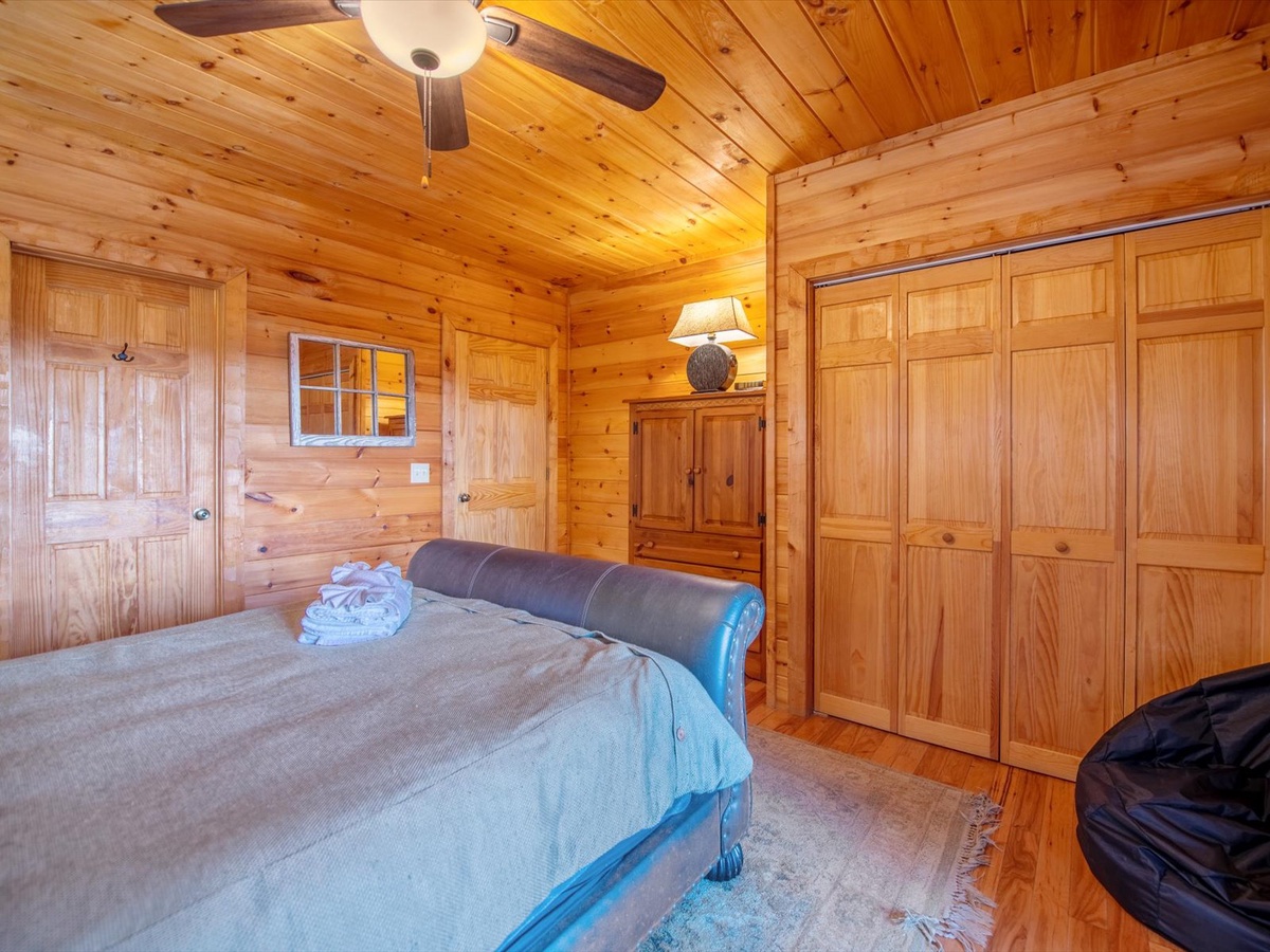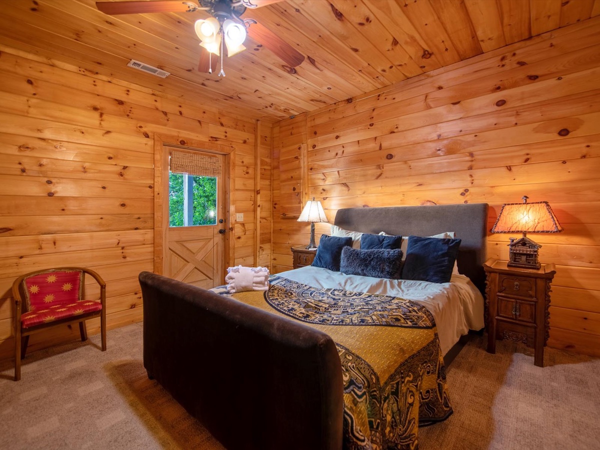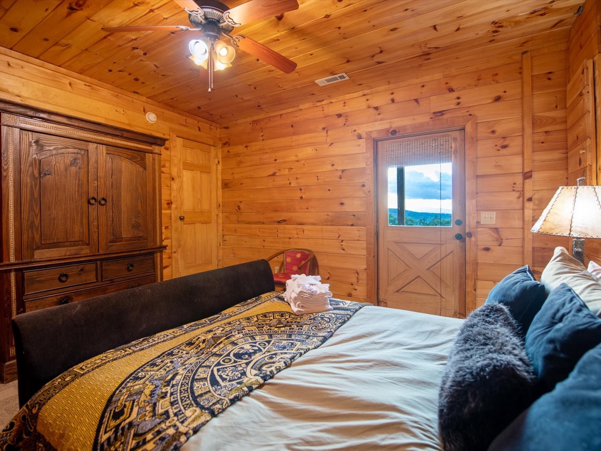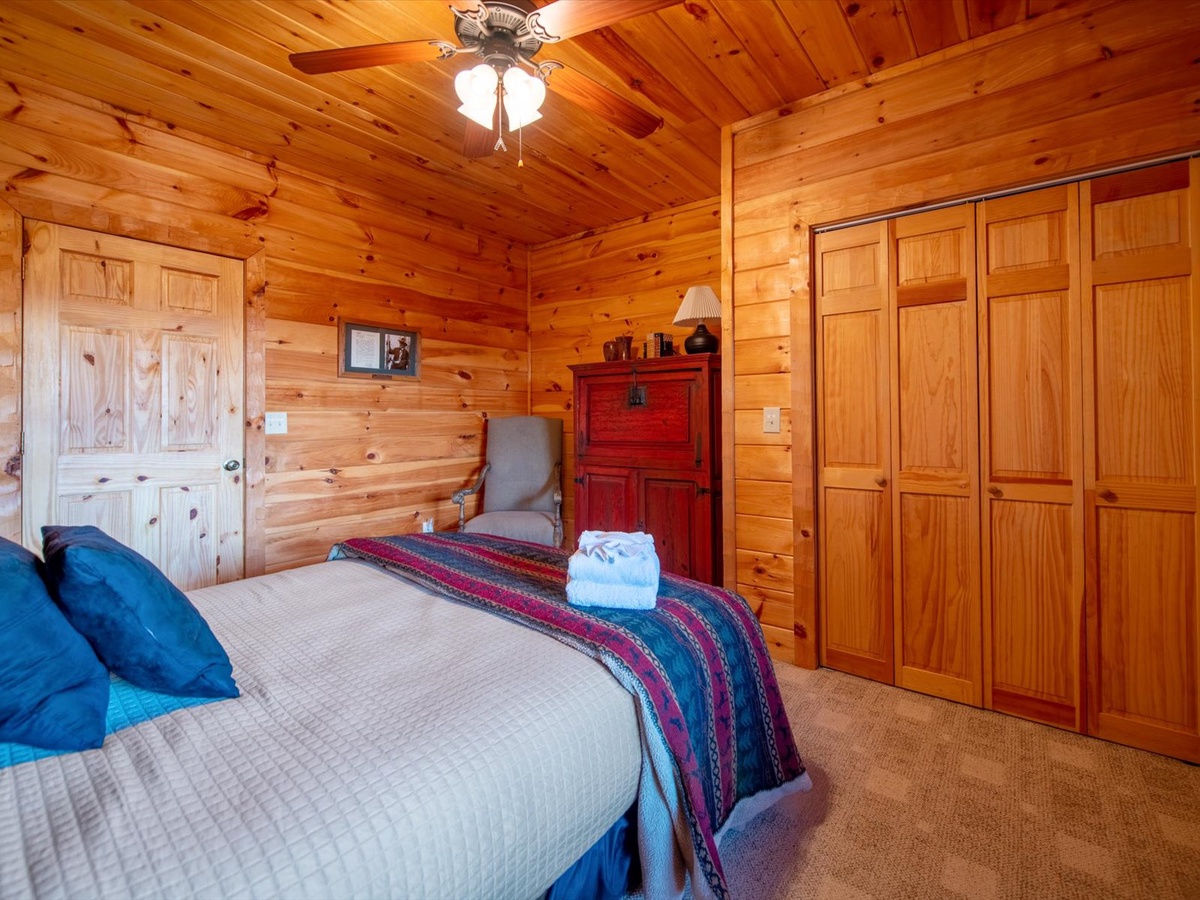 - Guest queen bedroom #2 with armoire, closet, arm chair and deck access