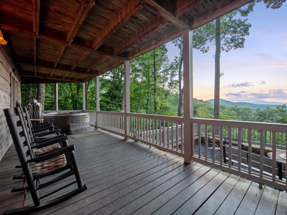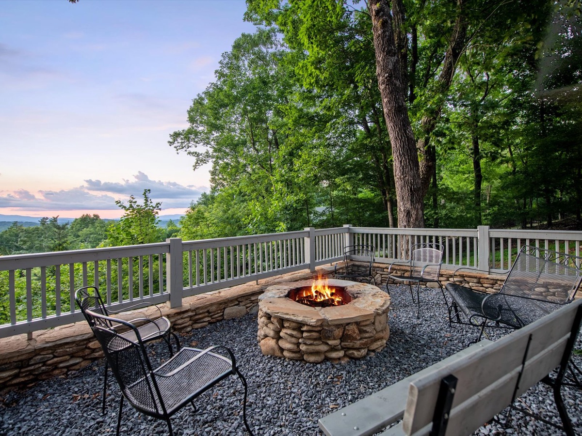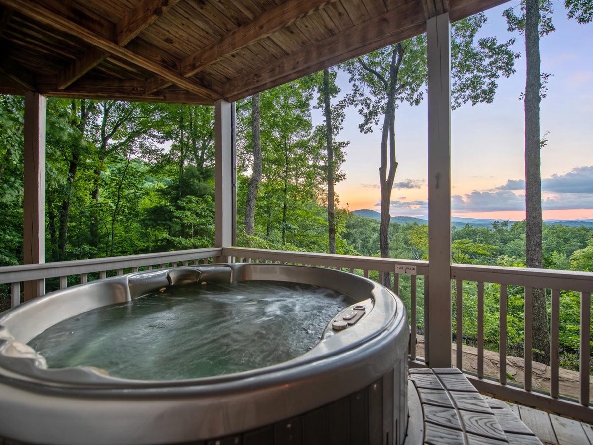 he hot tub and fire pit are ideal spots to unwind and take in the fresh mountain air. Once you lay eyes on the screened-in back porch, you will not want to go anywhere else! Ample seating, views and a table to dine al fresco.