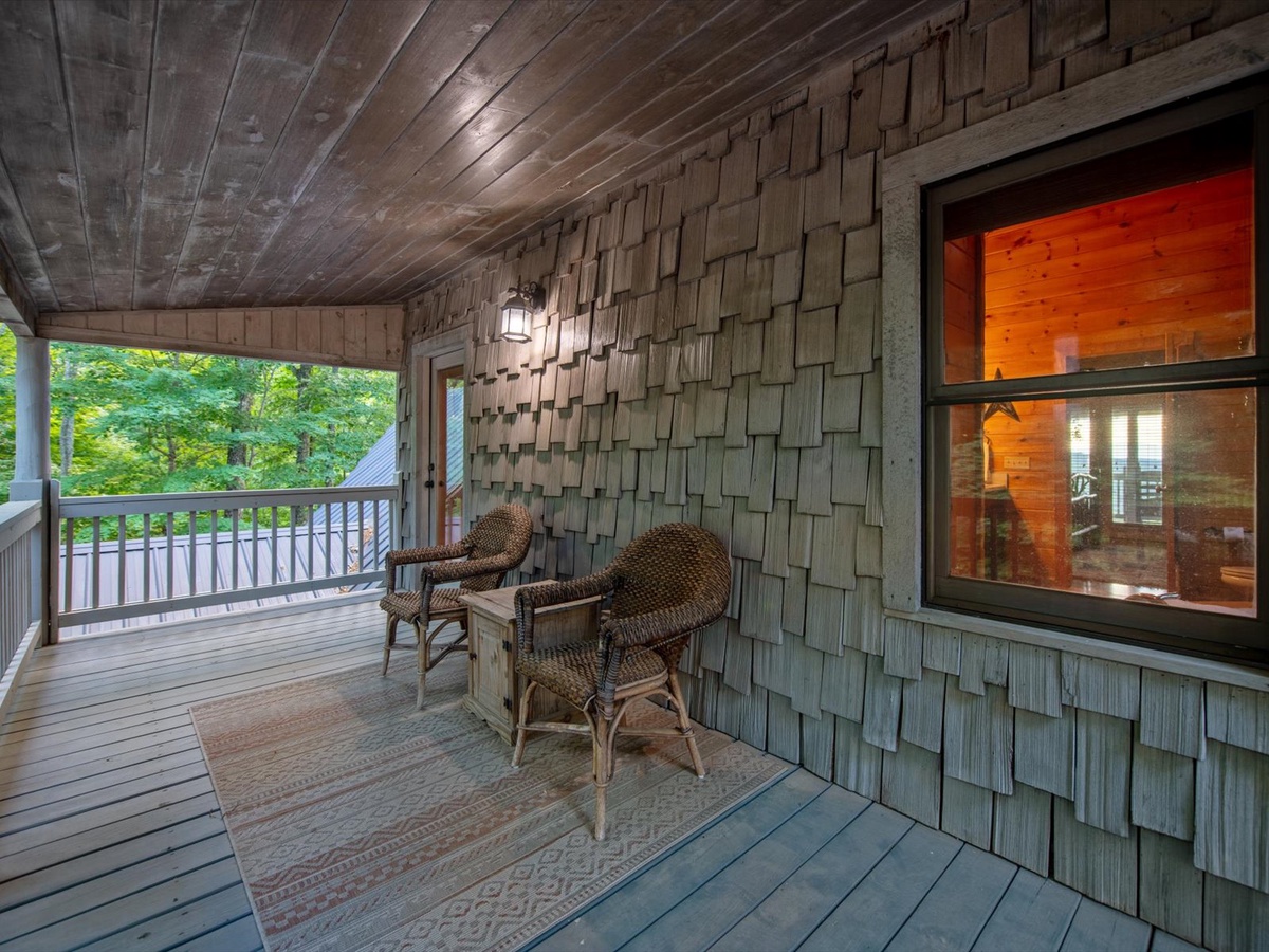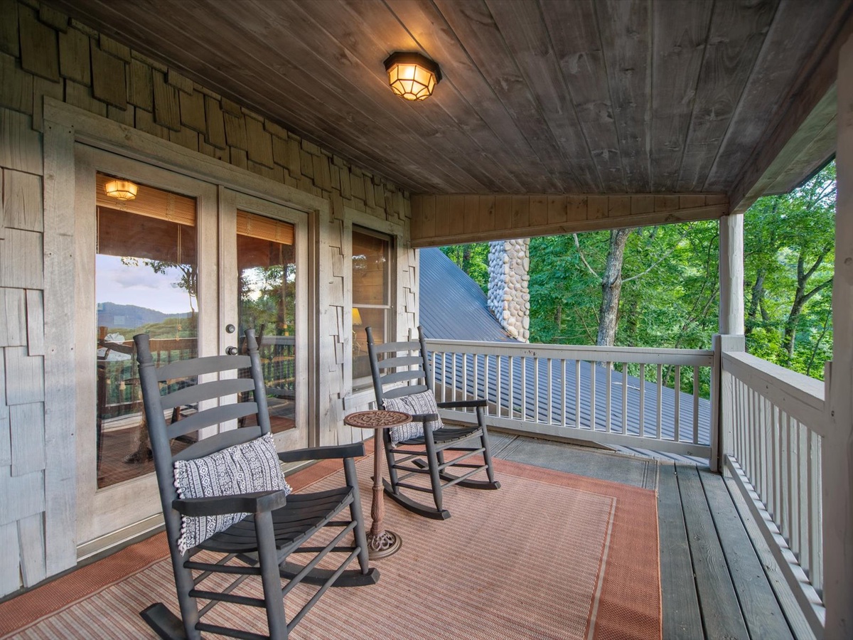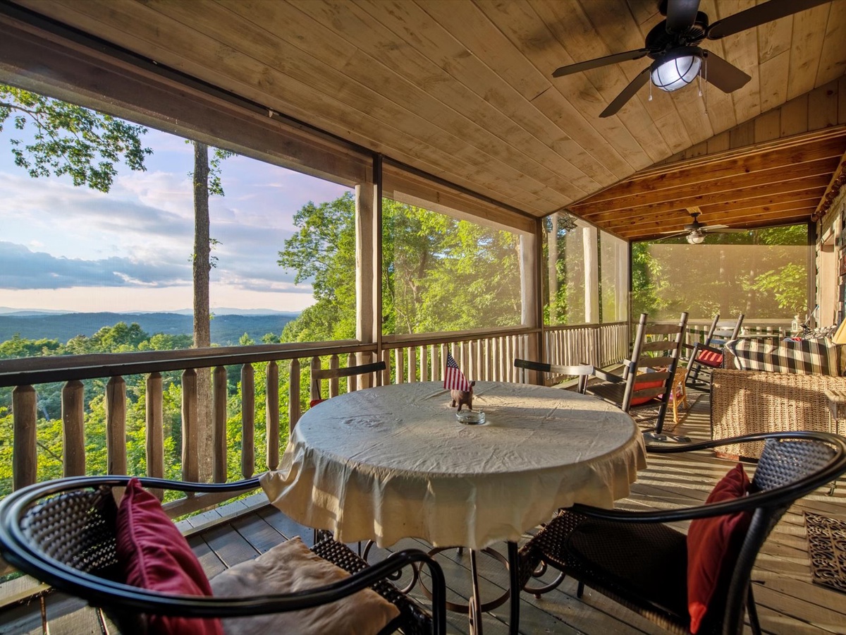 he hot tub and fire pit are ideal spots to unwind and take in the fresh mountain air. Once you lay eyes on the screened-in back porch, you will not want to go anywhere else! Ample seating, views and a table to dine al fresco.
