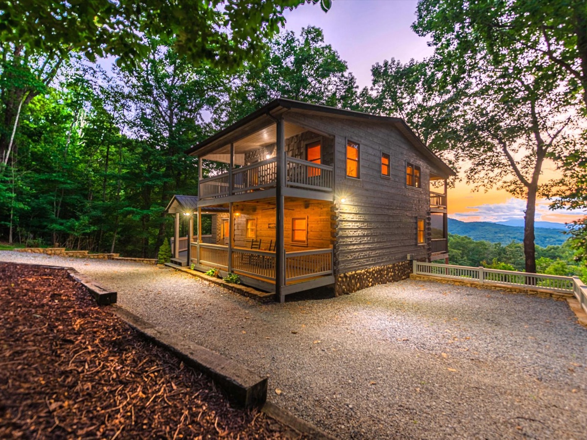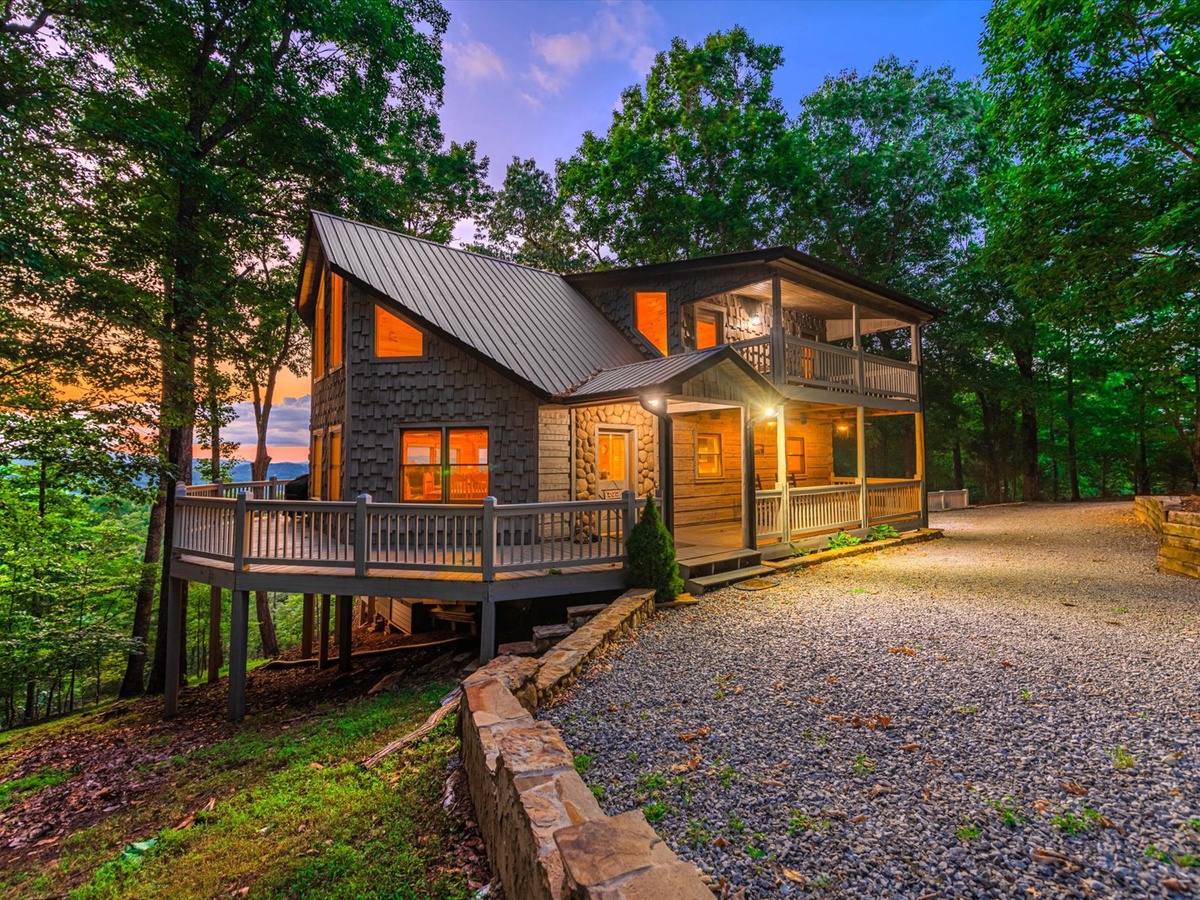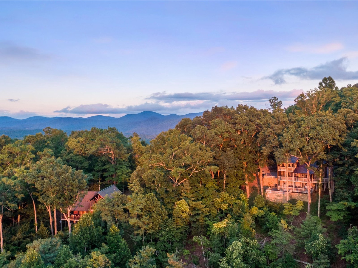 Upon arrival, you will notice that Aska Bliss is perfectly perched on a hillside to showcase the incredible long-range North Georgia mountain views! The location also offers a unique top of the tree canopy perspective over the valley.
