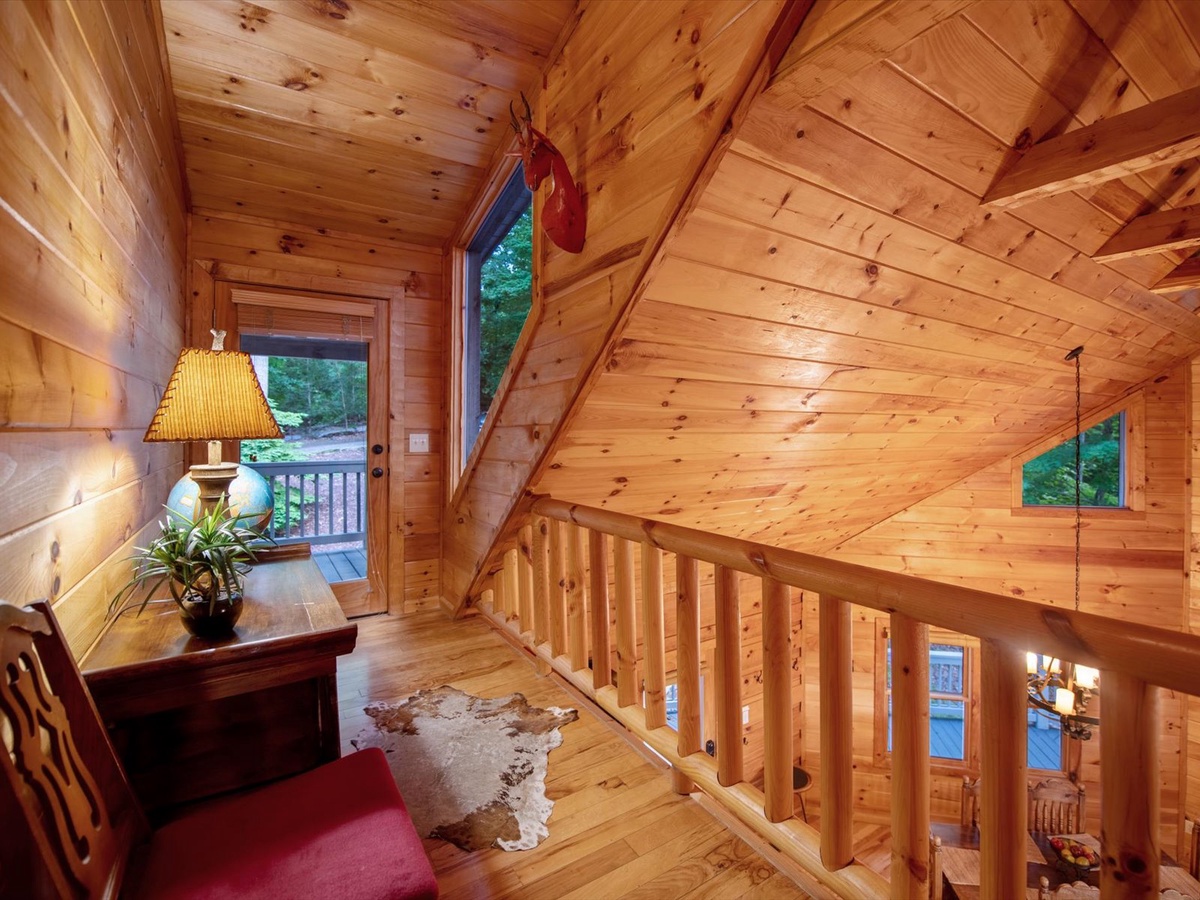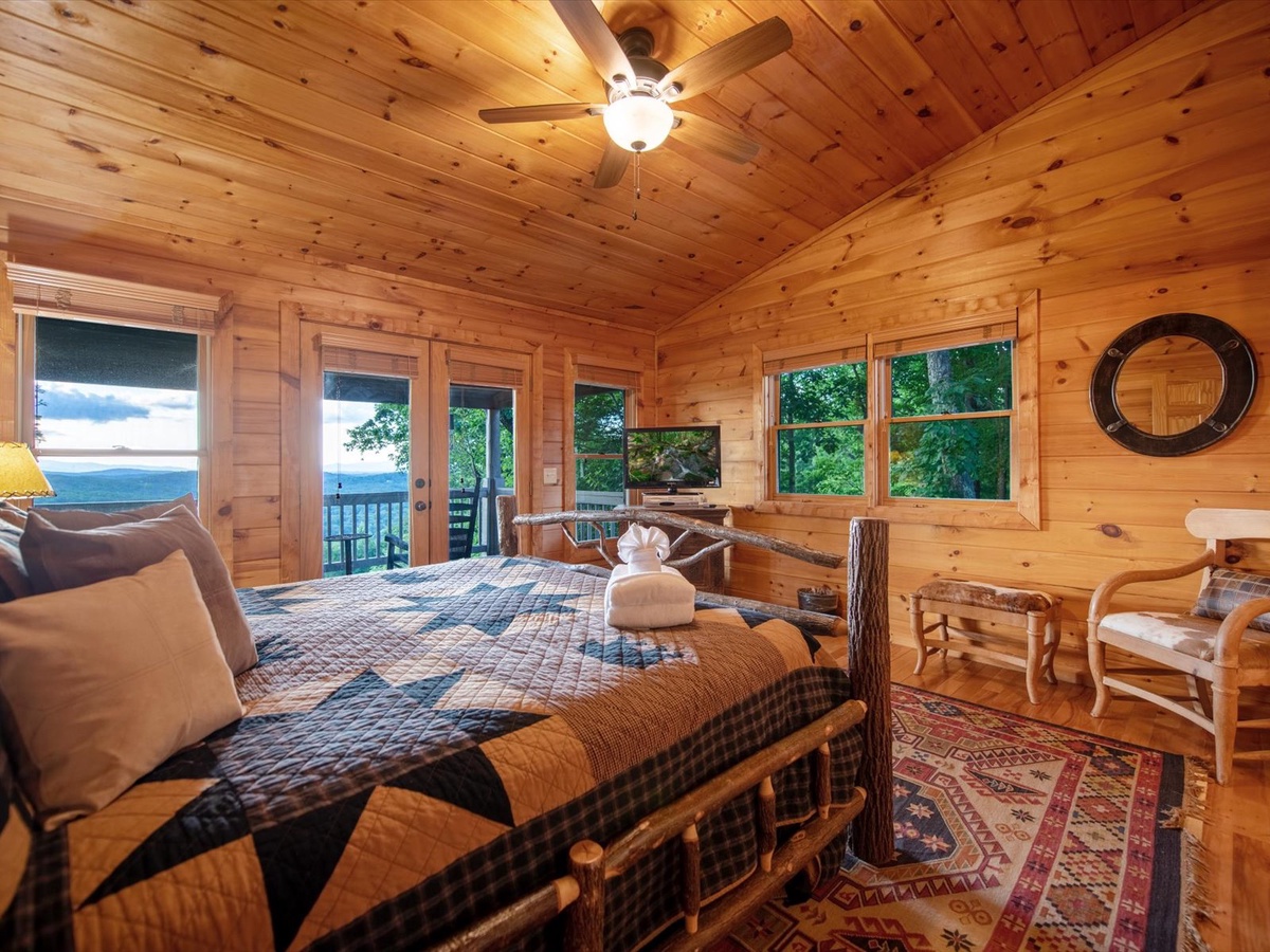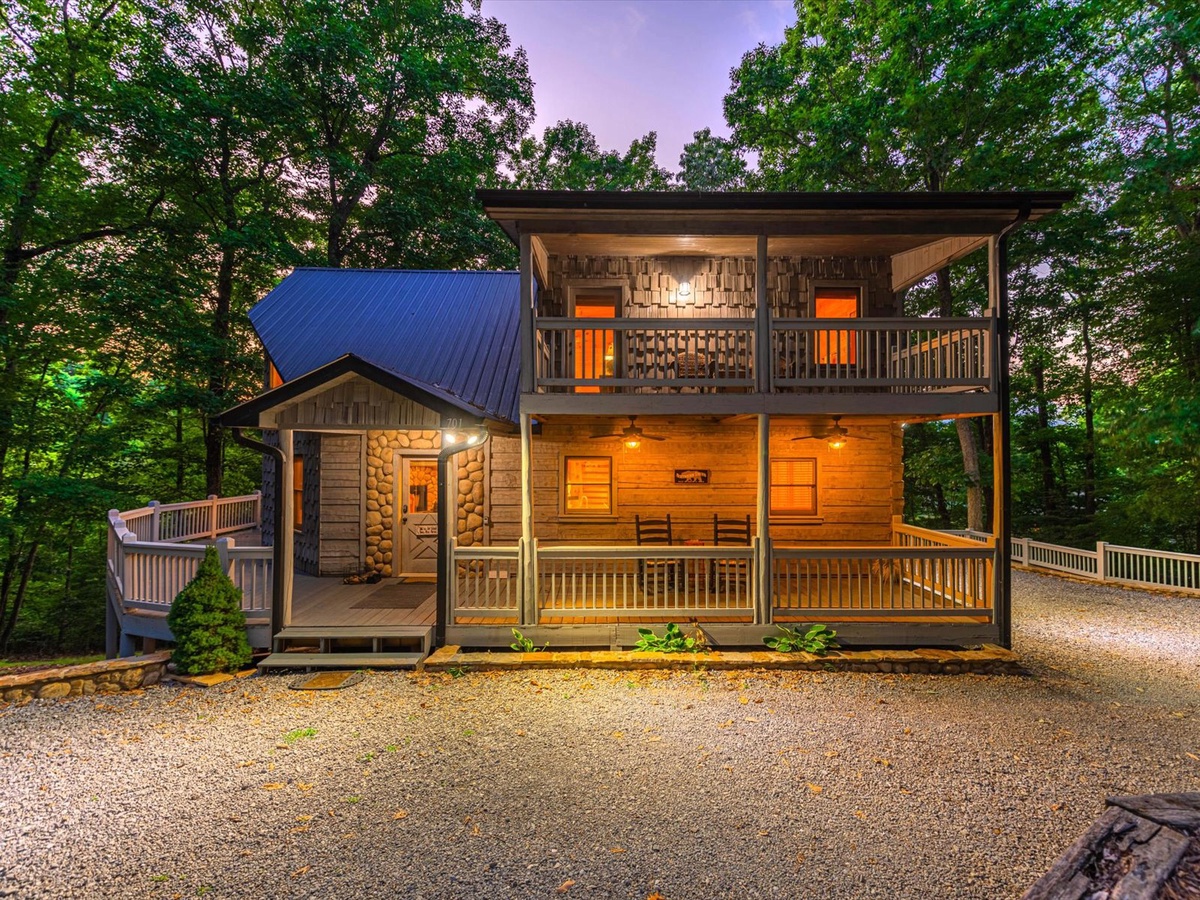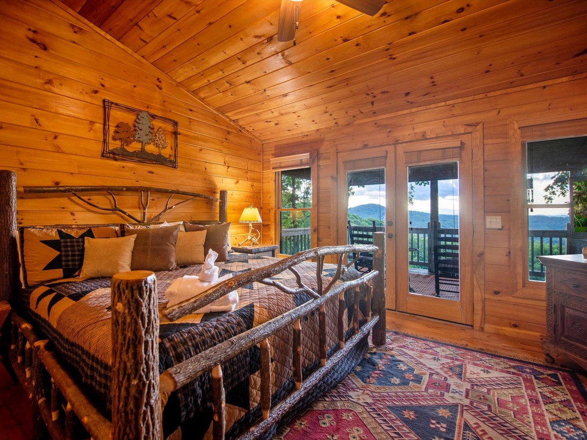 Upon arrival, you will notice that Aska Bliss is perfectly perched on a hillside to showcase the incredible long-range North Georgia mountain views! The location also offers a unique top of the tree canopy perspective over the valley.