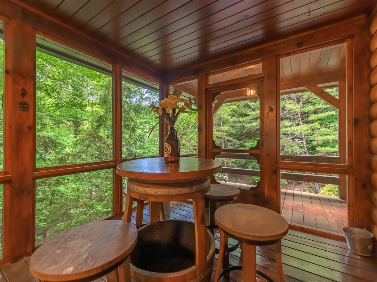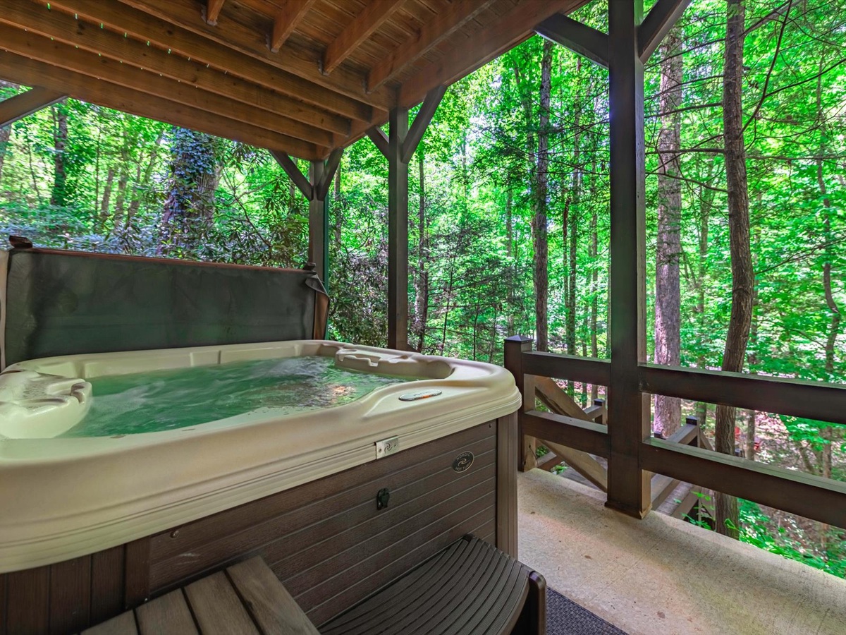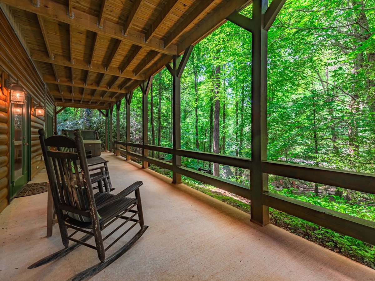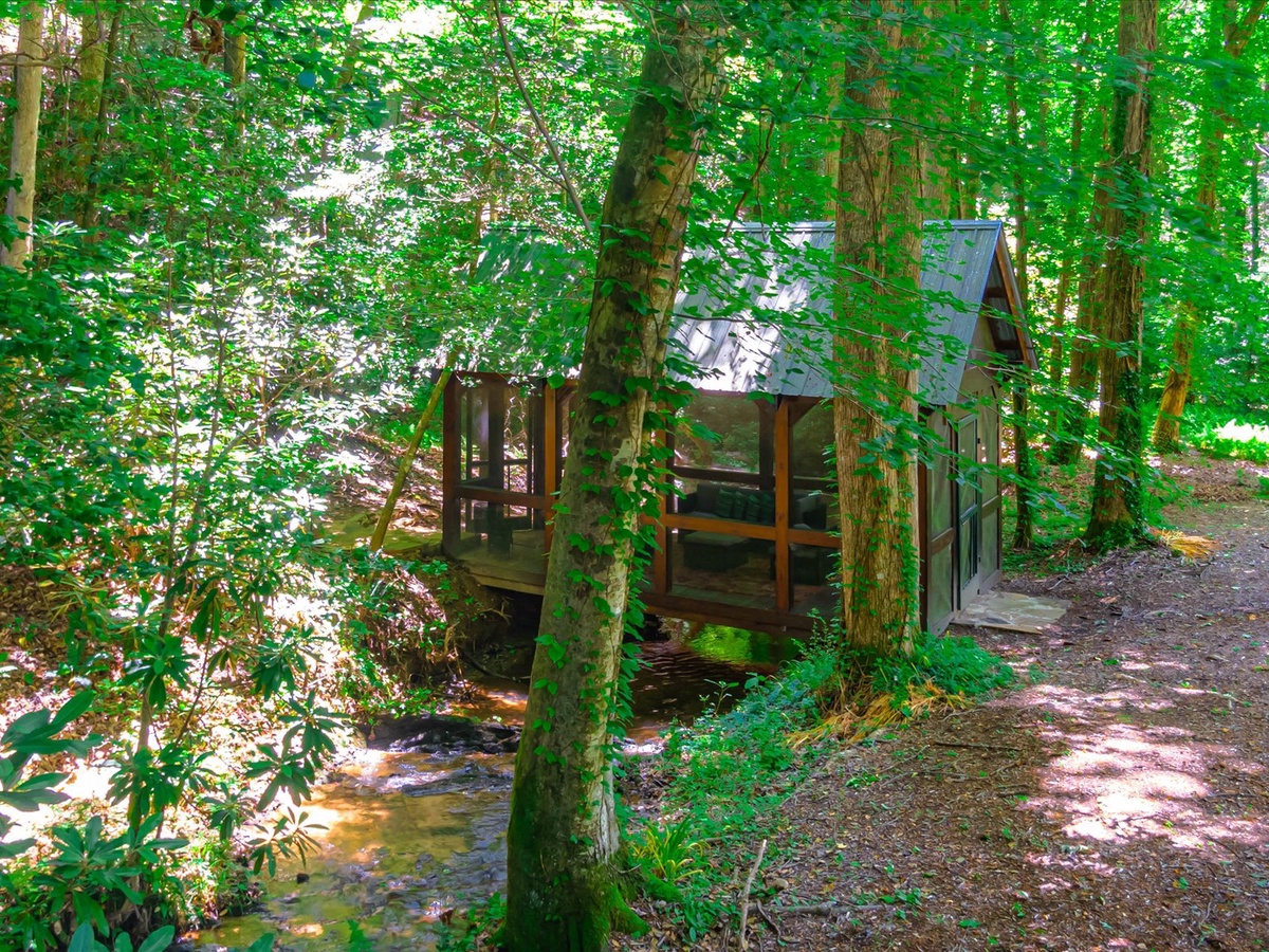 Loved the babbling brook and the screened in porch. Beautiful cabin in the perfect setting + Great Service