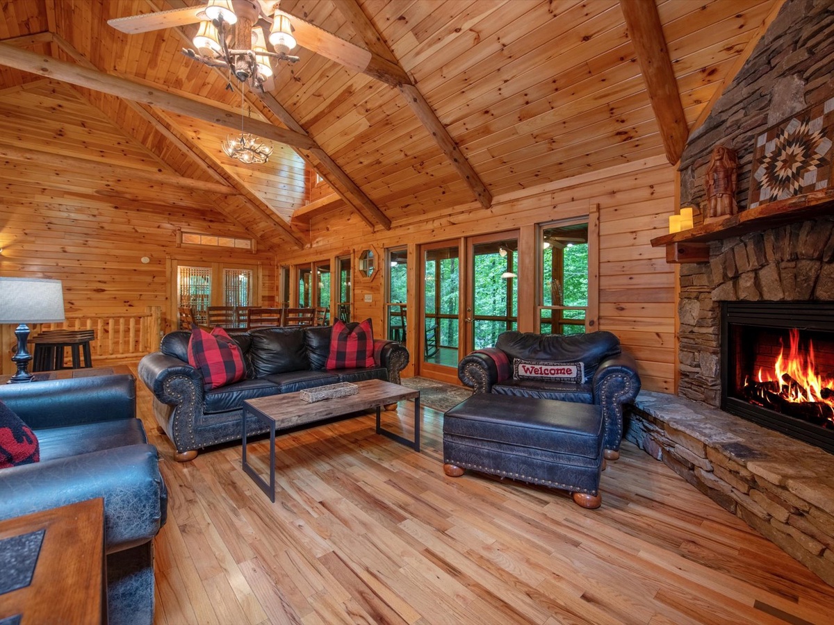 The site is a great resource and the cabin was exactly as described and pictured. Check in and out was so easy. The cabin is beautiful, spacious and has the unique water feature of the stream with full access. We loved sitting on the porch to the sound of the water. The porch with tons of seating and the mountain stream running through the property. So relaxing. Also loved the huge family room with so much comfortable seating.