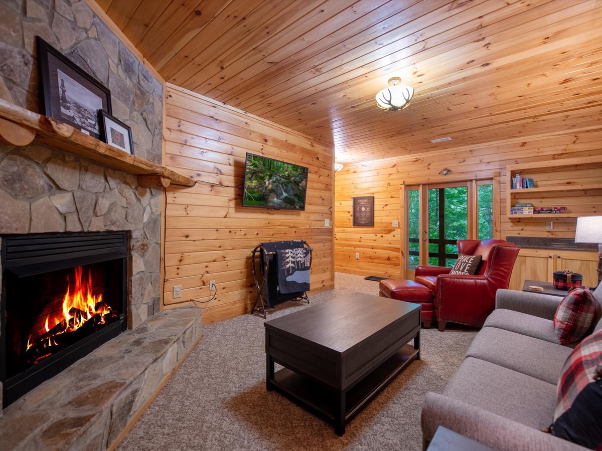 Soak away your worries in the hot tub and then take a small walk down to the running waters of the brook as you relax in the screened in porch above. This unique cabin certainly offers something for everyone.