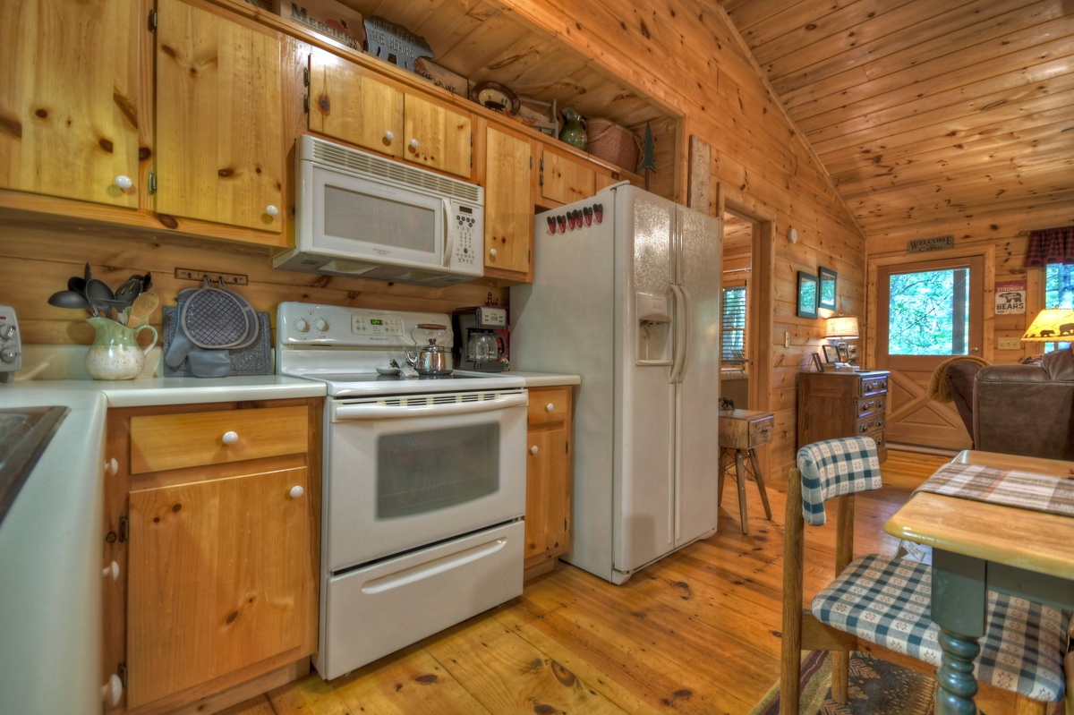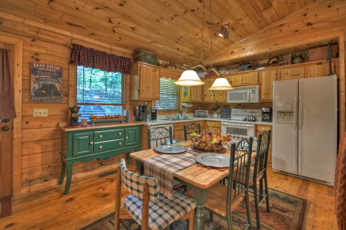 This 2 bedroom cabin is only a short 15 minute drive to downtown Blue Ridge or Ellijay. You can spend your days hiking the wooded terrain, but be aware that Bear Watch didn't receive the name due to deer or turkeys, however you will see those too. Make the short drive South to Ellijay, the apple capital of GA or North to Mericer Orchards and spend the day picking strawberries, apples, and blueberries depending on the seasons.