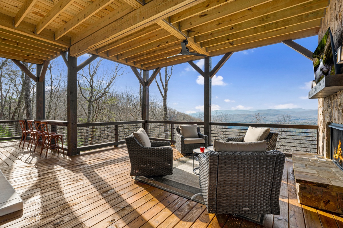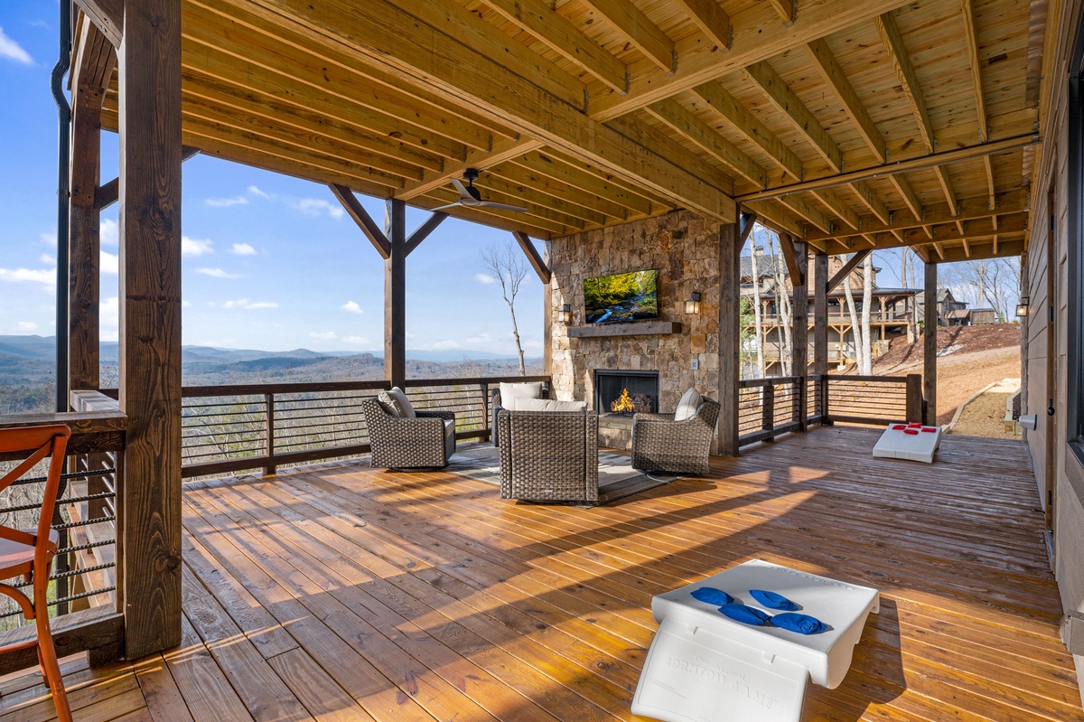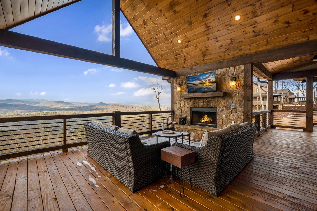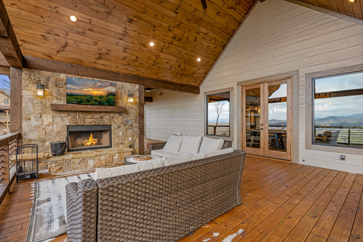 - Wood burning fireplace and 55” TV