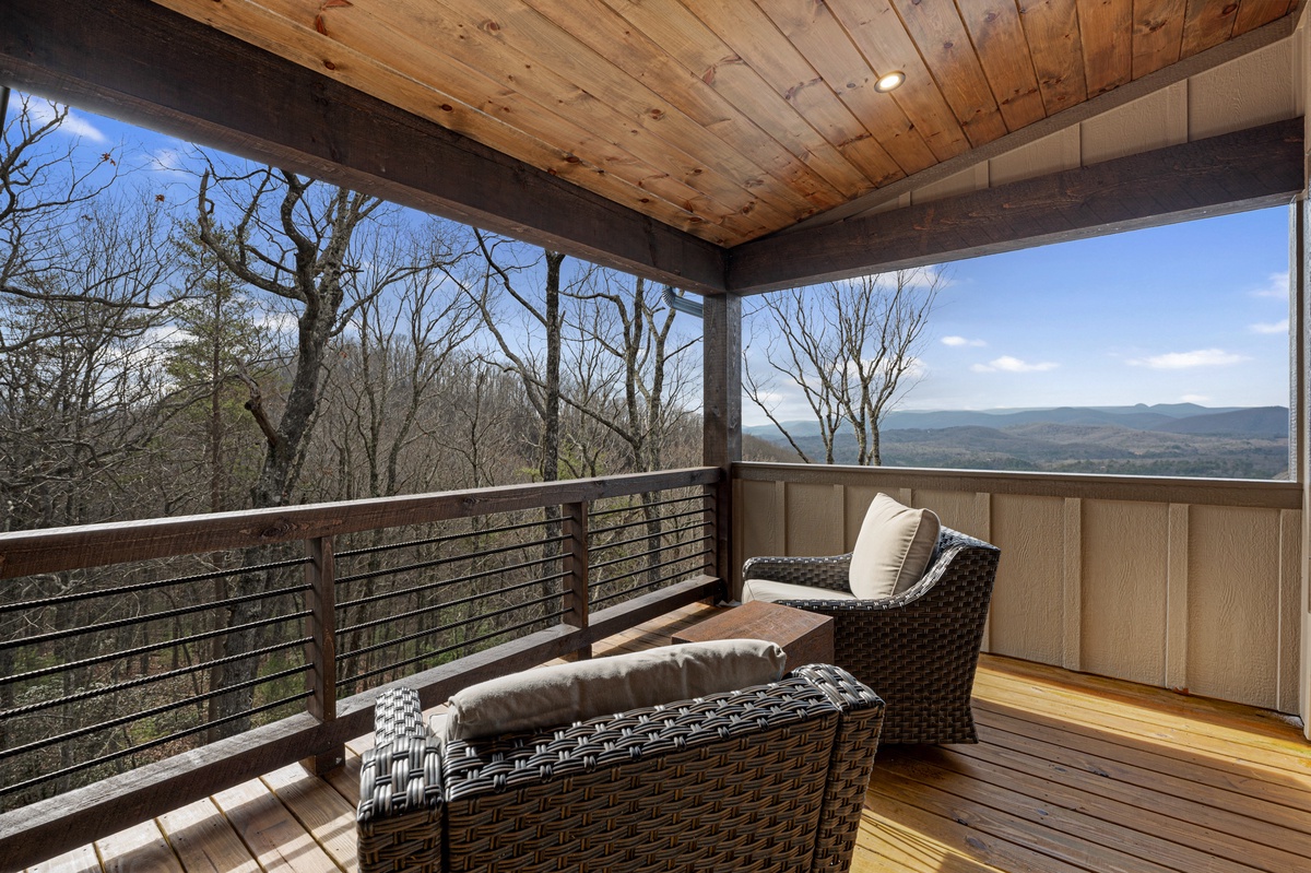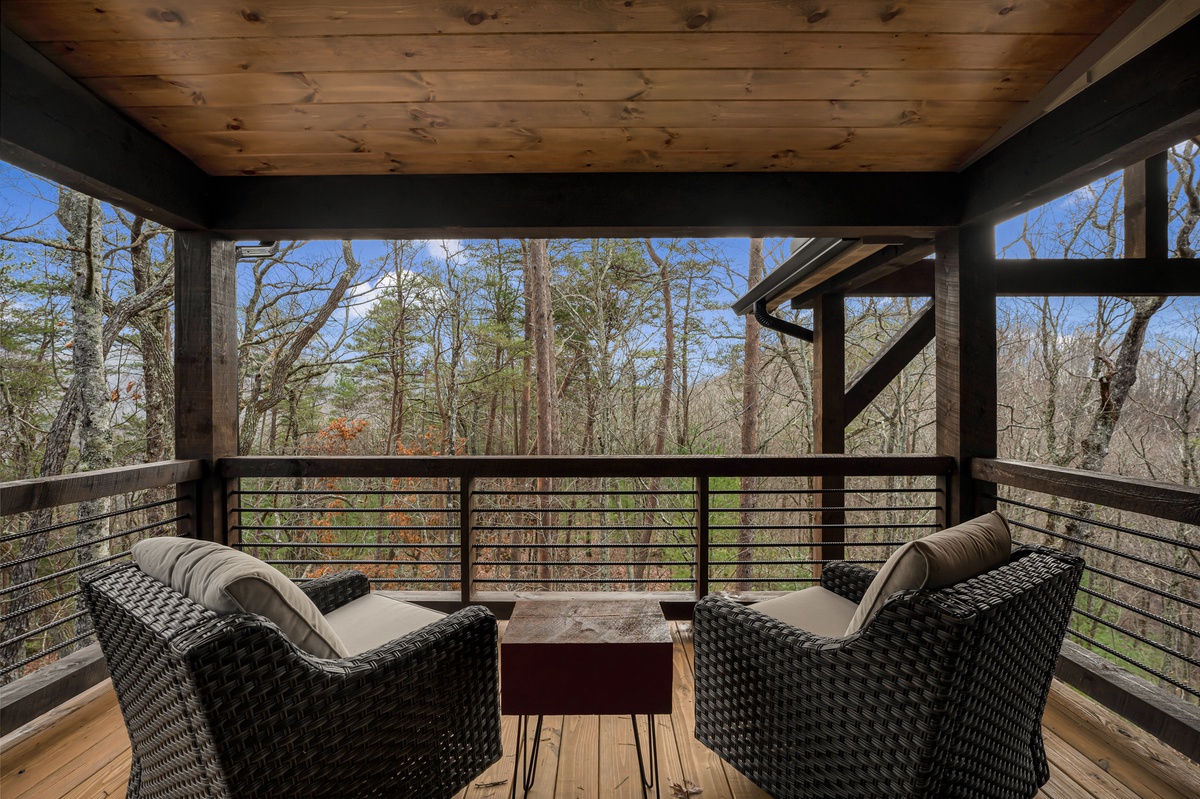 - Private balcony with two wicker swivel chairs