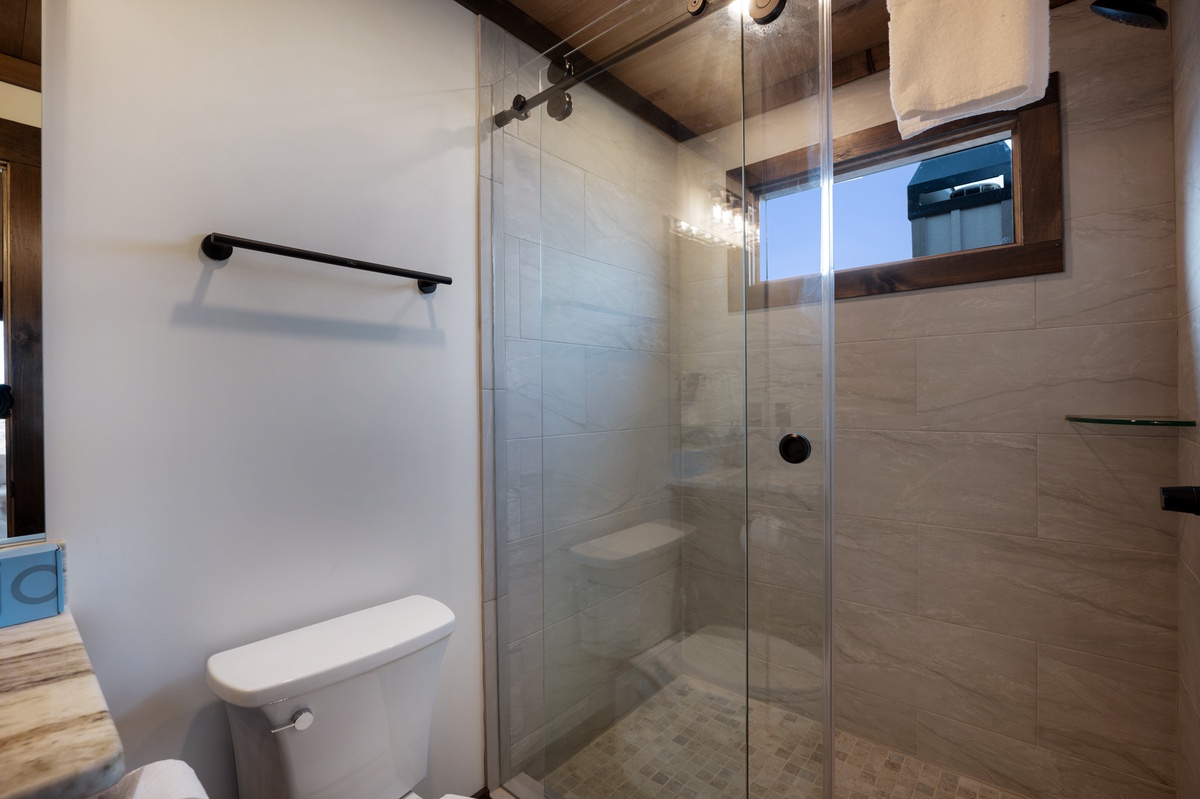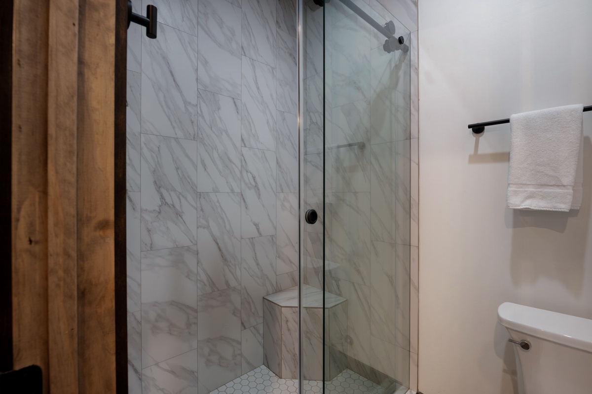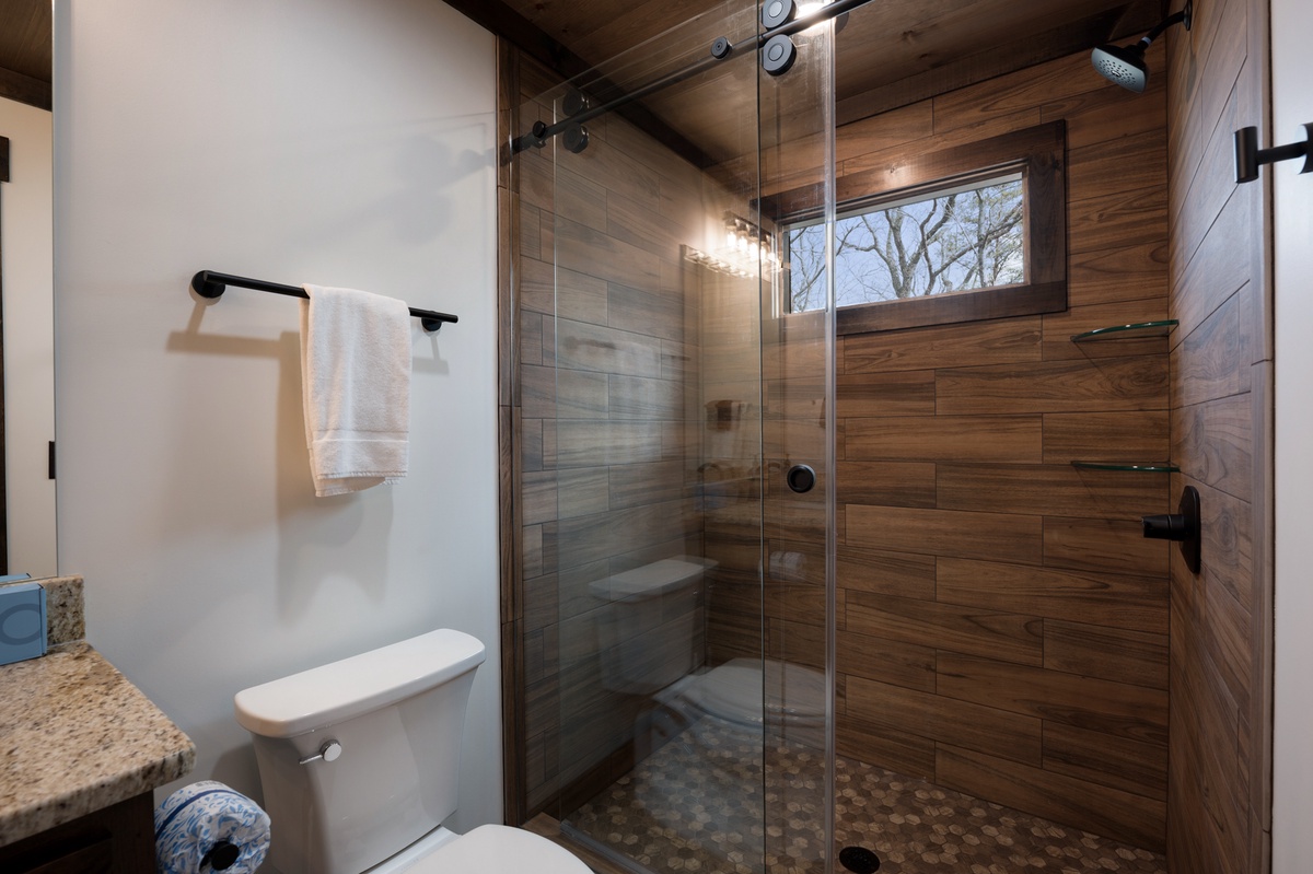 - Shared bathroom with walk-in shower