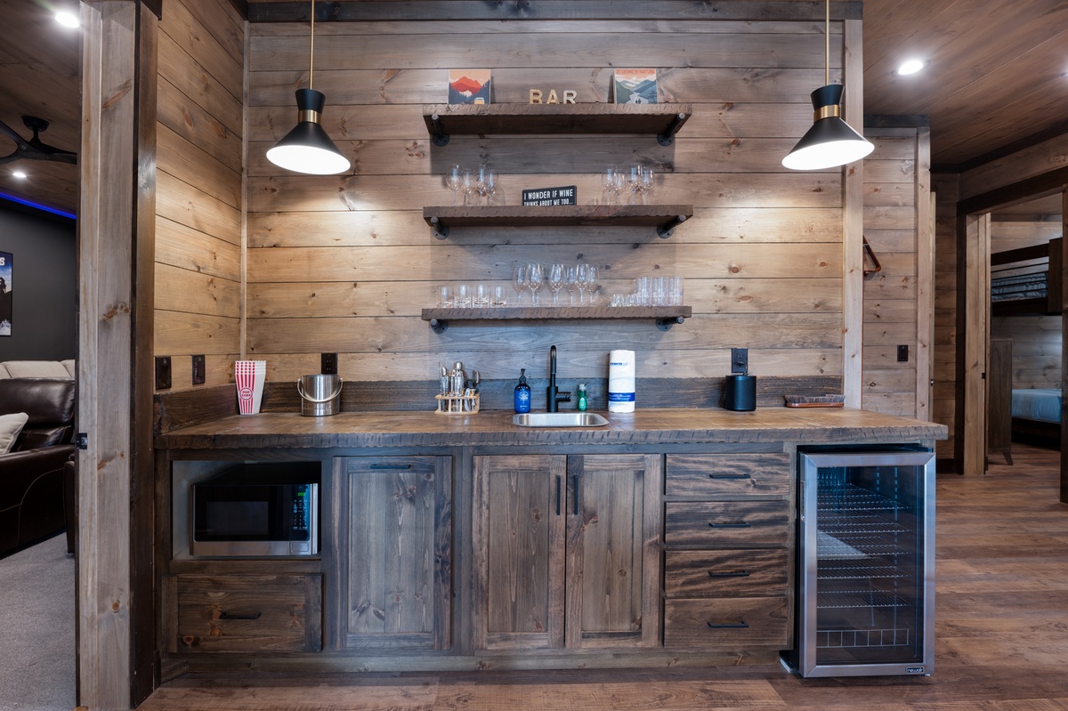 - Wet bar with wine cooler and microwave
