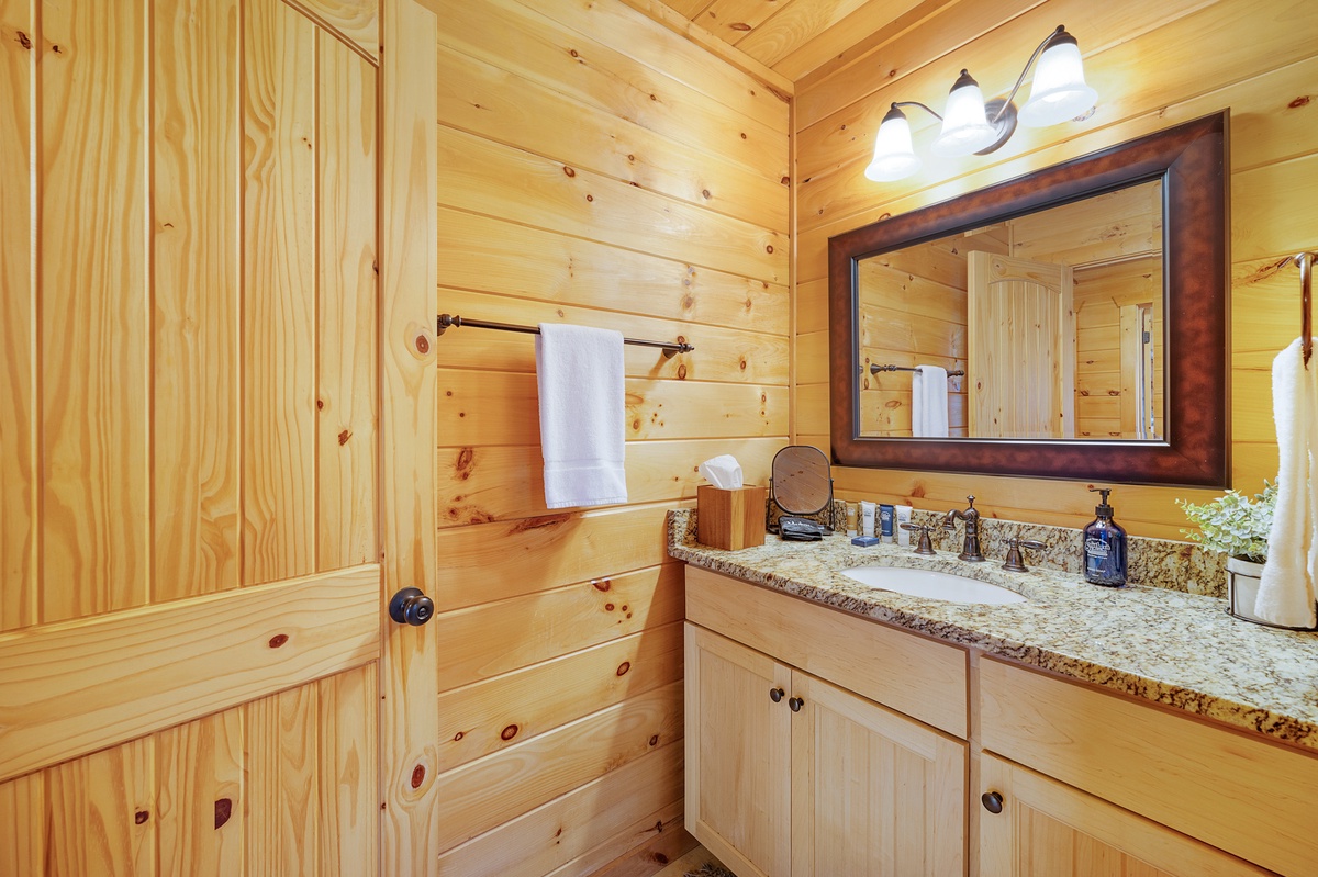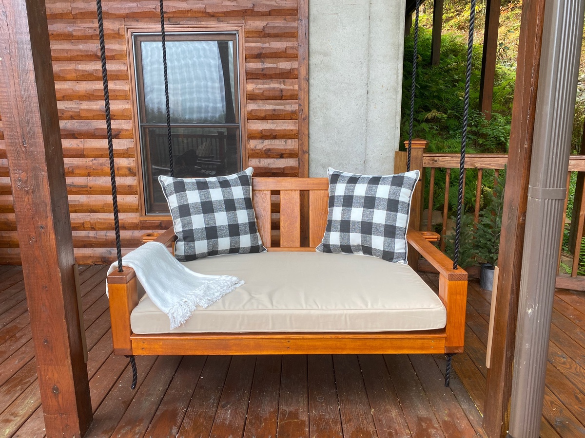 Those that prefer to exercise their talent outdoors, we have at your disposal a cornhole set. While enjoying the beautiful afternoon, don't forget to spread a couple scoops of the provided deer corn to attract the deer from the forest creek and sit back on the new bed swing without a care in the world. Before turning in, rest those weary bones around your large stone-laid fire pit. Roasting marsh mallows, quietly gazing at the stars and sharing thoughts with those nearby warms your heart as much as the fire warms your body.