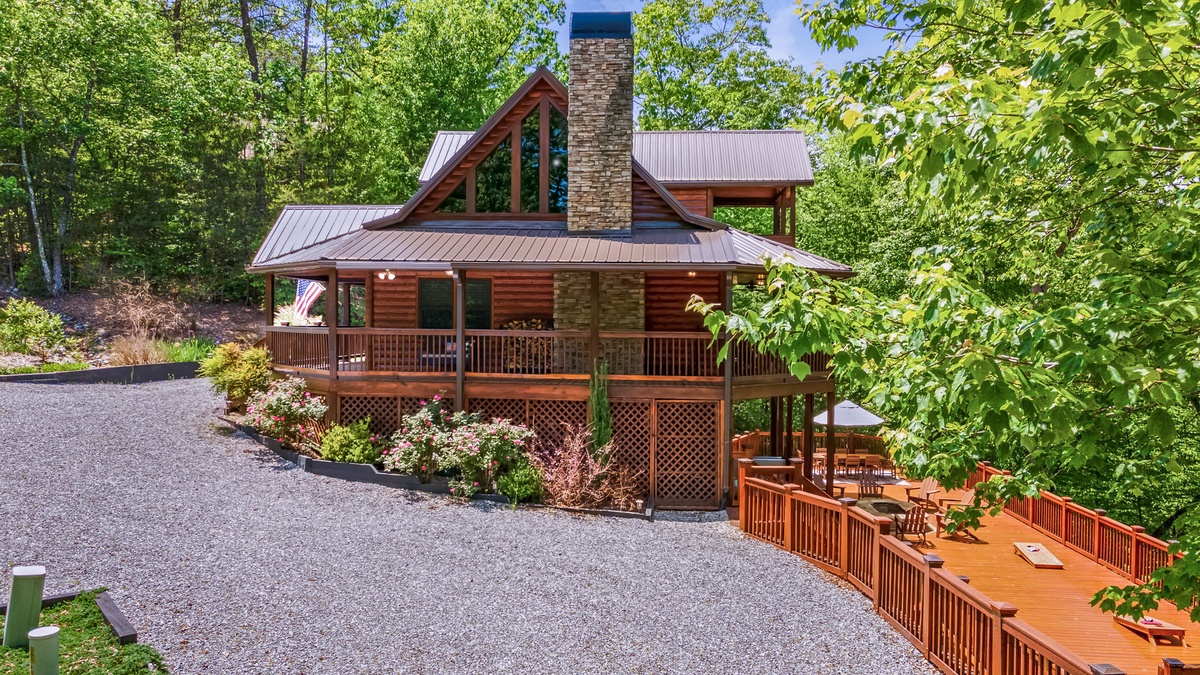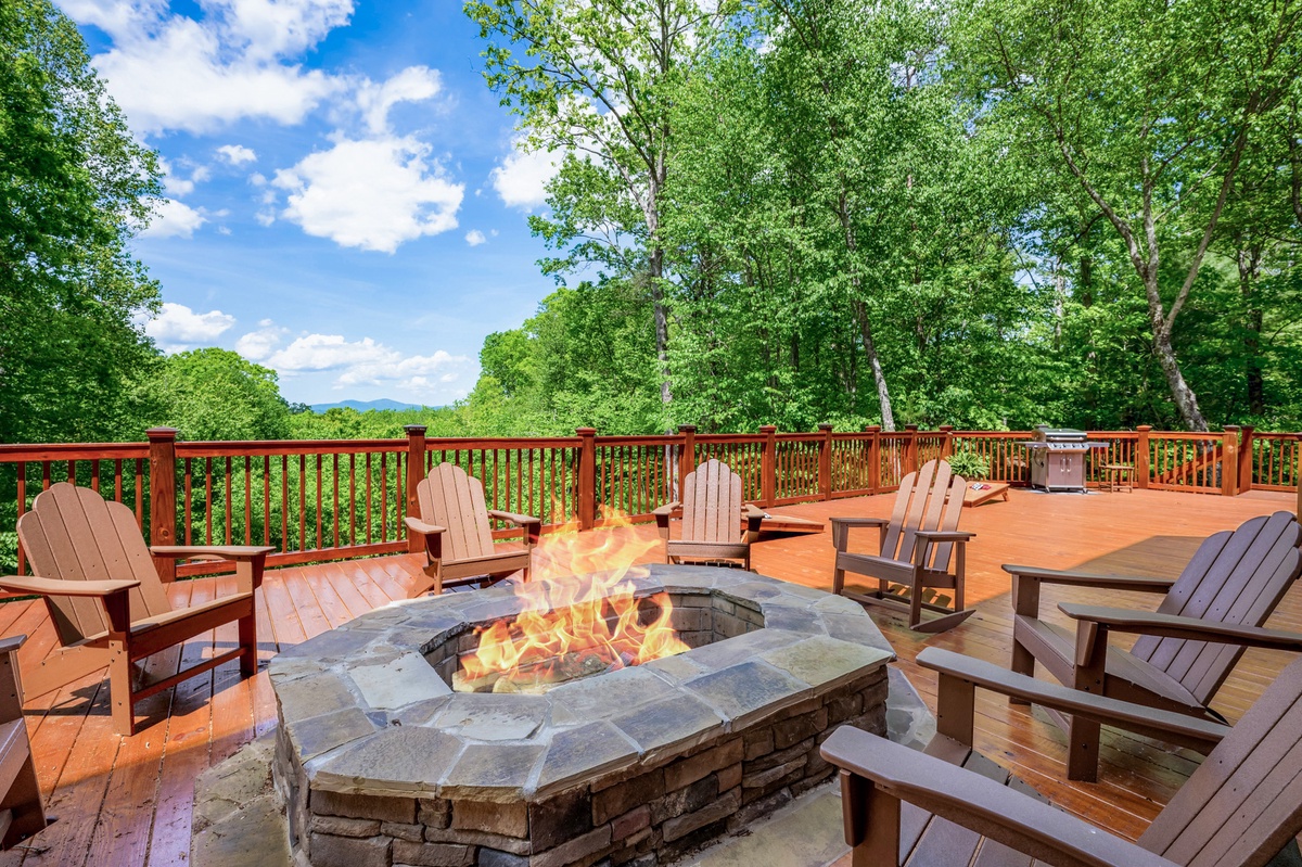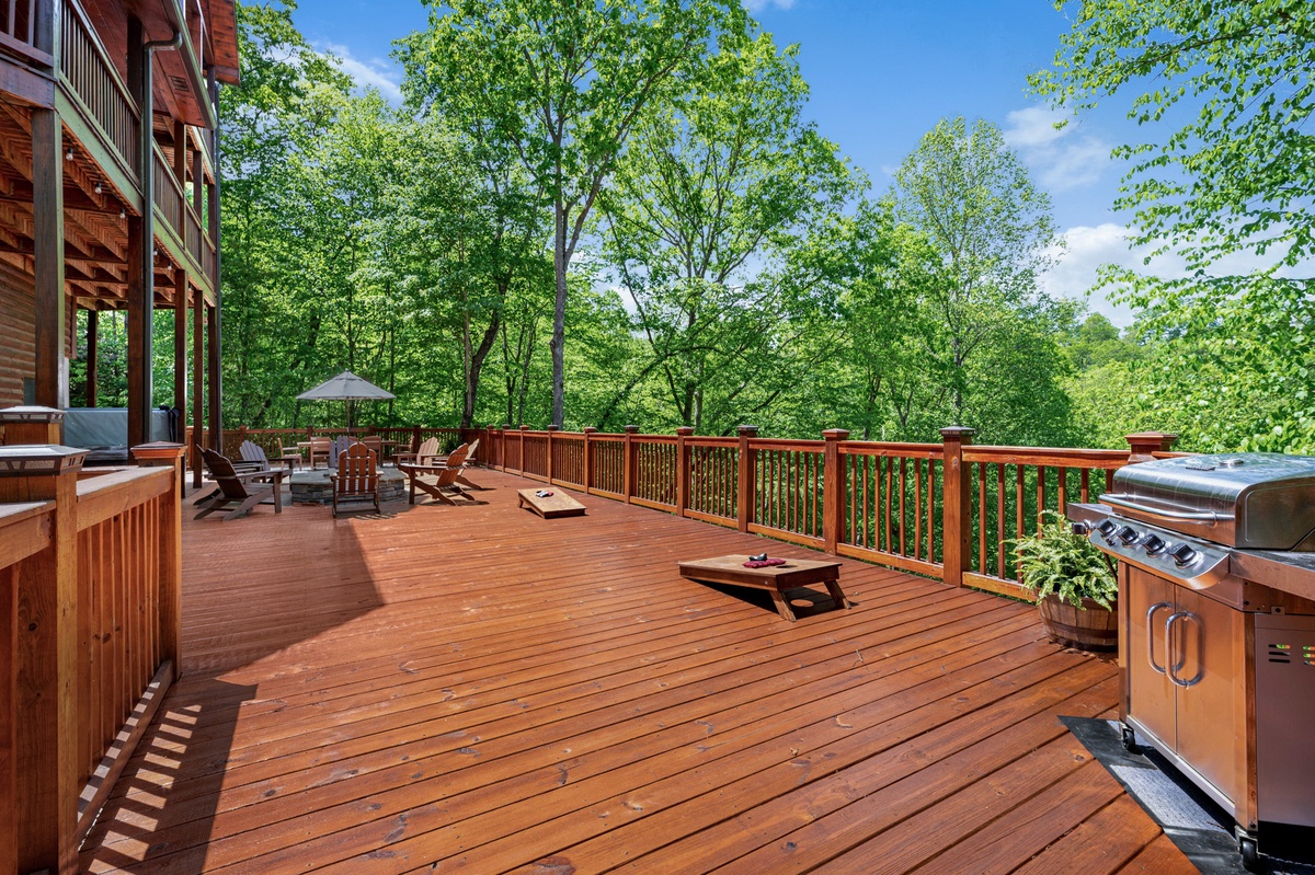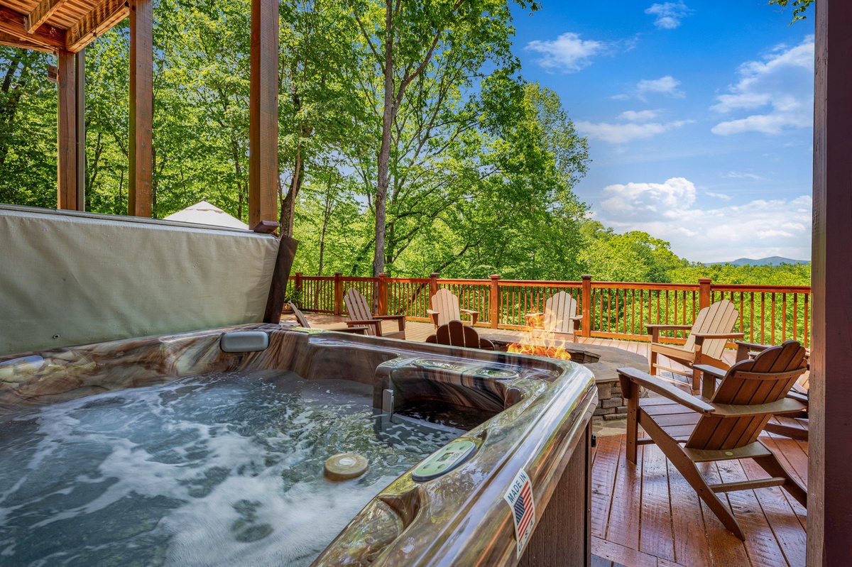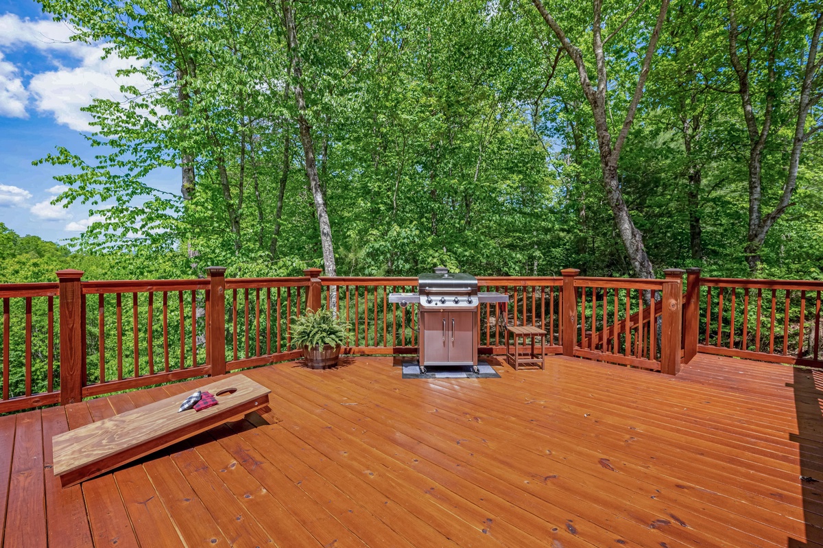 Updated oversize deck just in time for your vacation! New outdoor dining table for 8 with umbrella, freshly stained decks and grilling station perfect for spending hours enjoying the mountain view, hot tub, bed swing, cornhole & stone fire pit! In addition, this property boasts a true gated wrap around deck for all to enjoy! All this, less than 5 minutes from downtown on completely paved roads, nestled in a gated community.