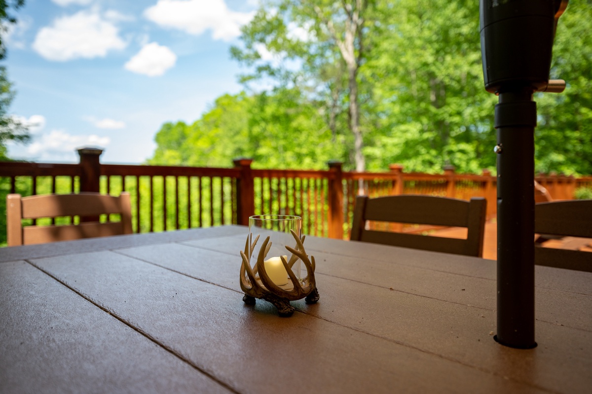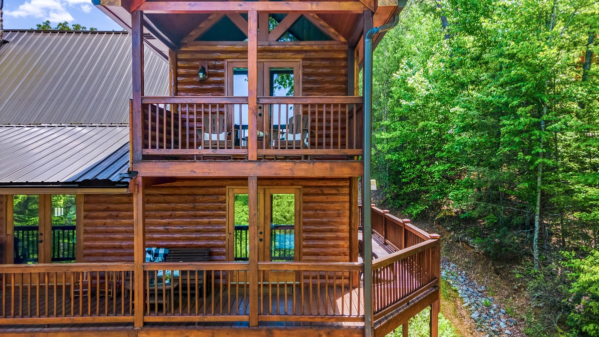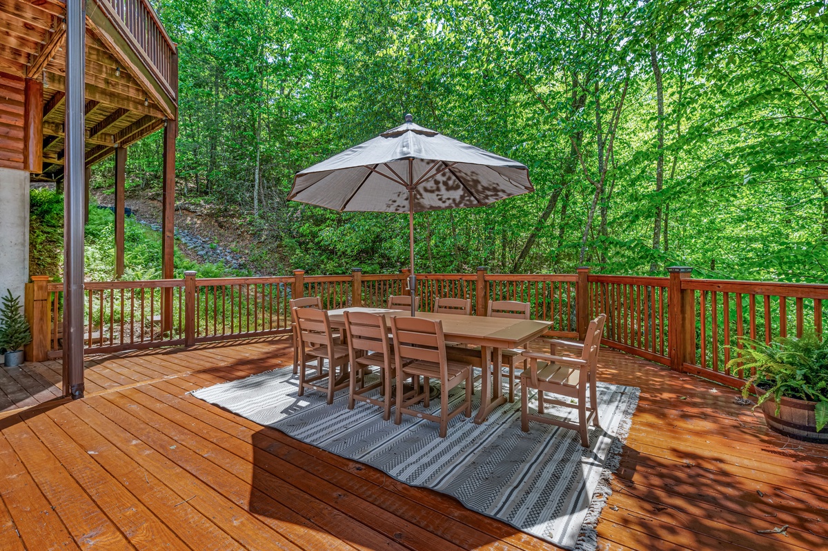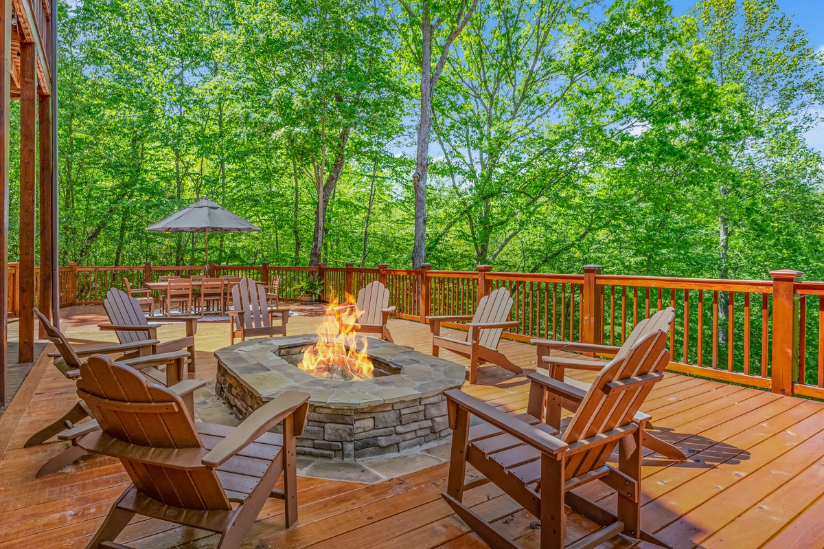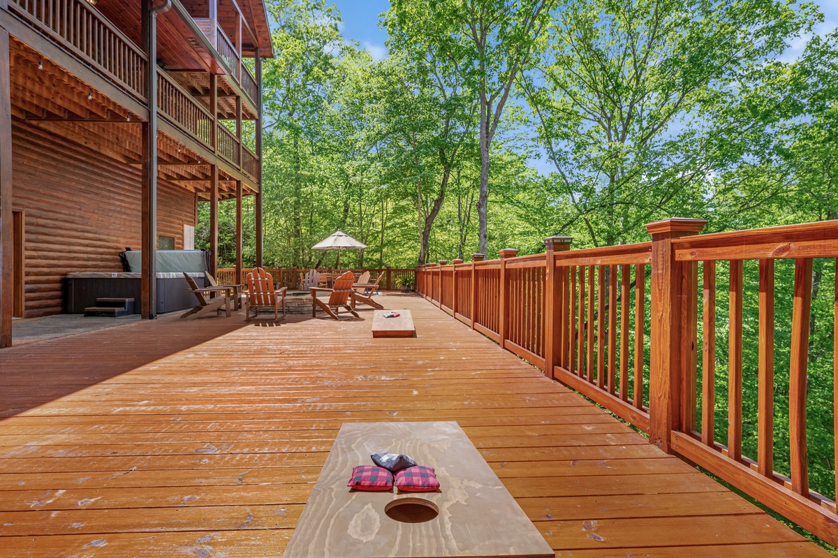 Updated oversize deck just in time for your vacation! New outdoor dining table for 8 with umbrella, freshly stained decks and grilling station perfect for spending hours enjoying the mountain view, hot tub, bed swing, cornhole & stone fire pit! In addition, this property boasts a true gated wrap around deck for all to enjoy! All this, less than 5 minutes from downtown on completely paved roads, nestled in a gated community.