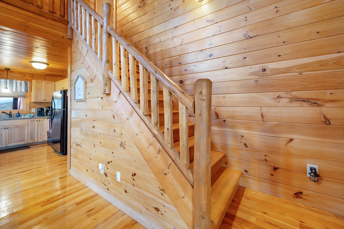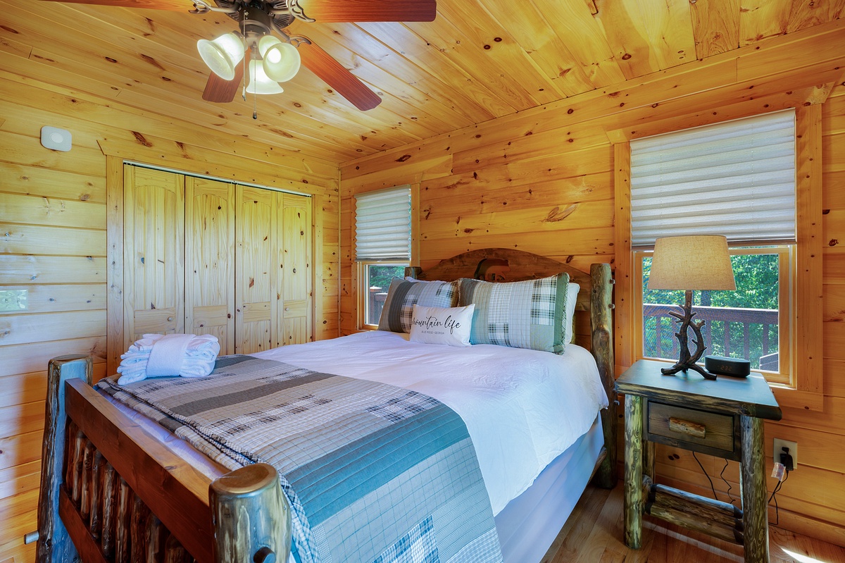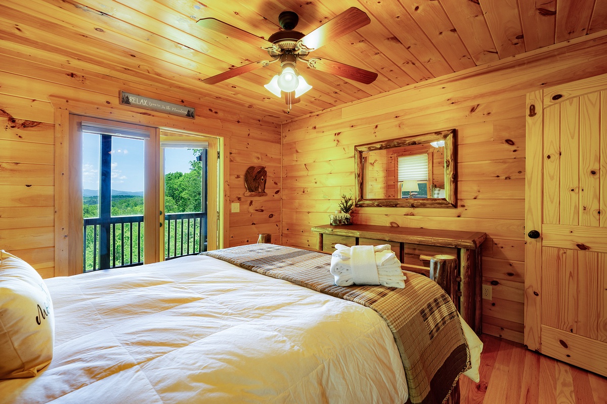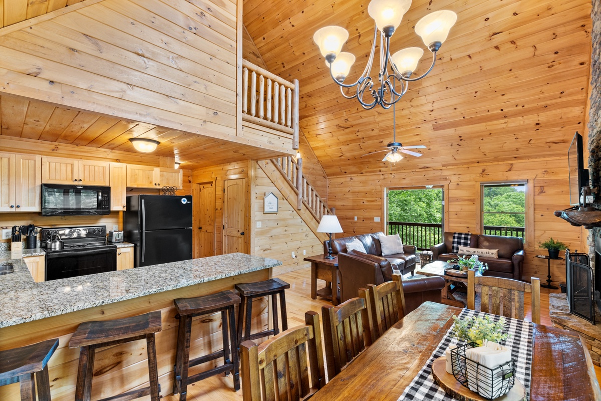 Savoring those hot meals on the natural wood dining table or that nighttime popcorn around the wood burning fireplace is a breeze with your kitchen close at hand. For those who need to bring a little bit of work with them, there is a desk in the upper-level master bedroom. But I would wager, the view from you private balcony, will beat any hand in front of you and help you release the cares of tomorrow for tomorrow.