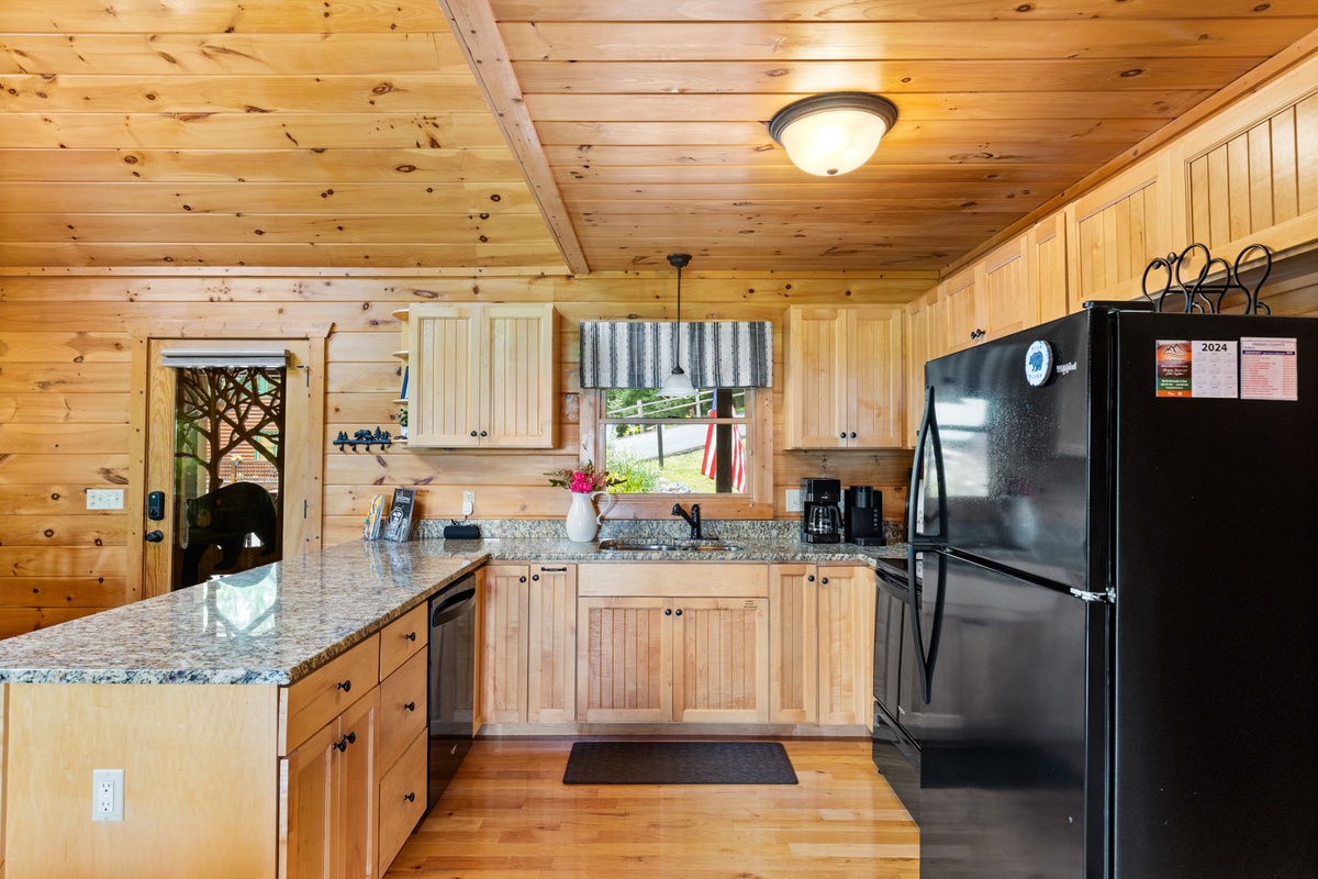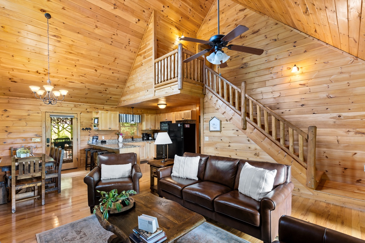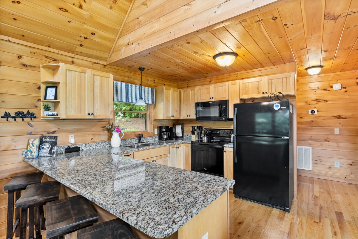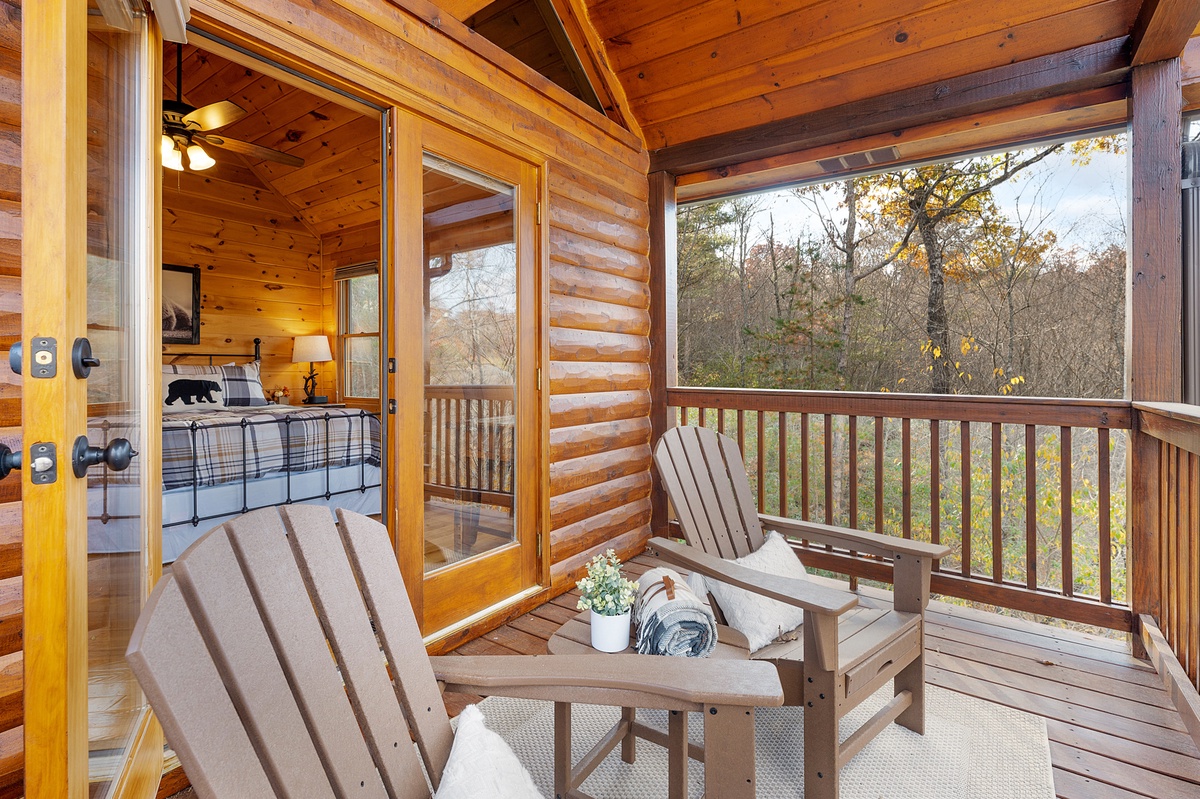 Savoring those hot meals on the natural wood dining table or that nighttime popcorn around the wood burning fireplace is a breeze with your kitchen close at hand. For those who need to bring a little bit of work with them, there is a desk in the upper-level master bedroom. But I would wager, the view from you private balcony, will beat any hand in front of you and help you release the cares of tomorrow for tomorrow.