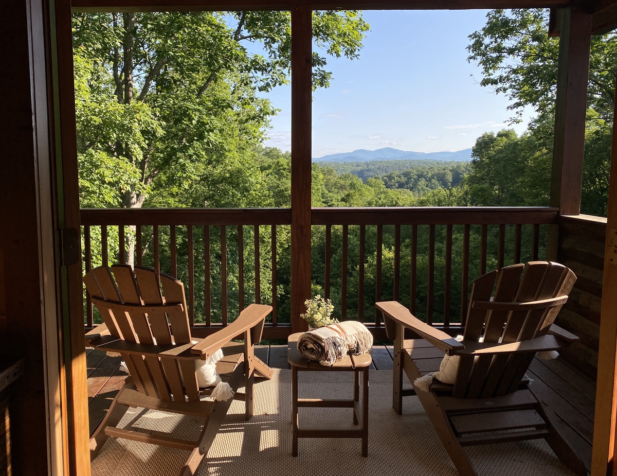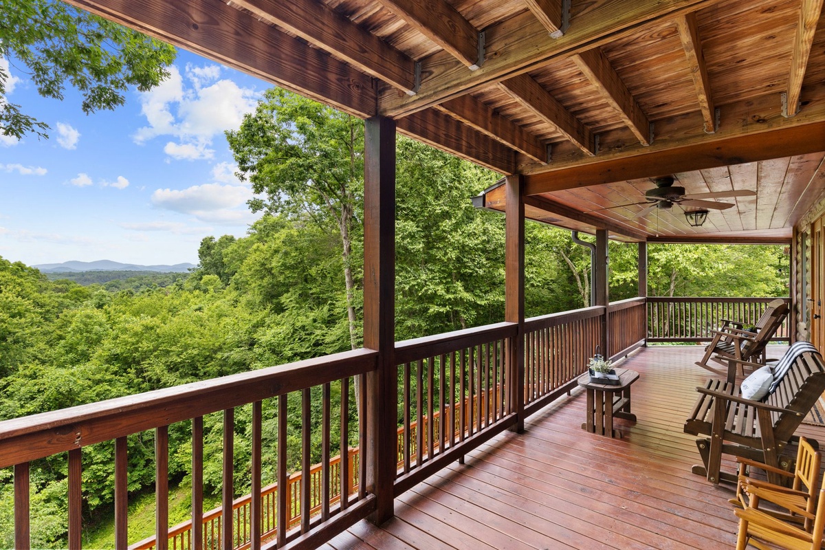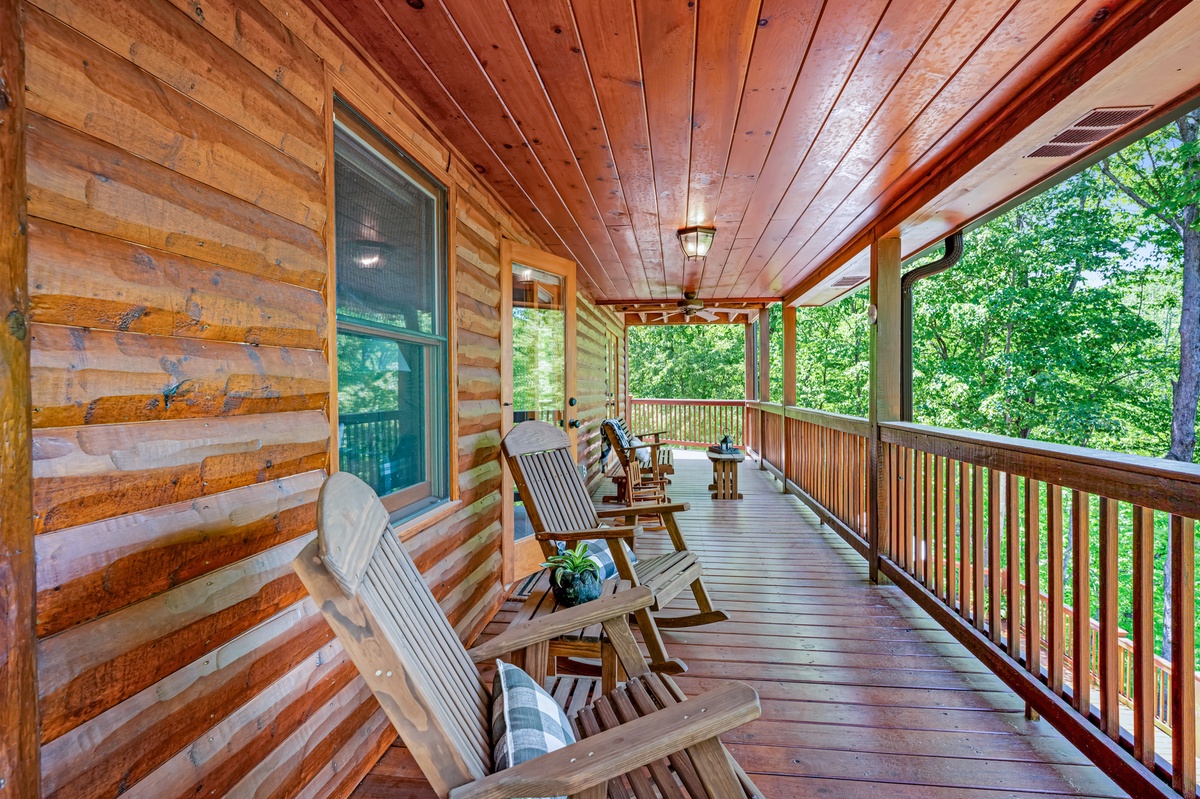 - A true wrap around deck with 2 rocking chairs out front, 2 chairs to the left and to the right a love seat.