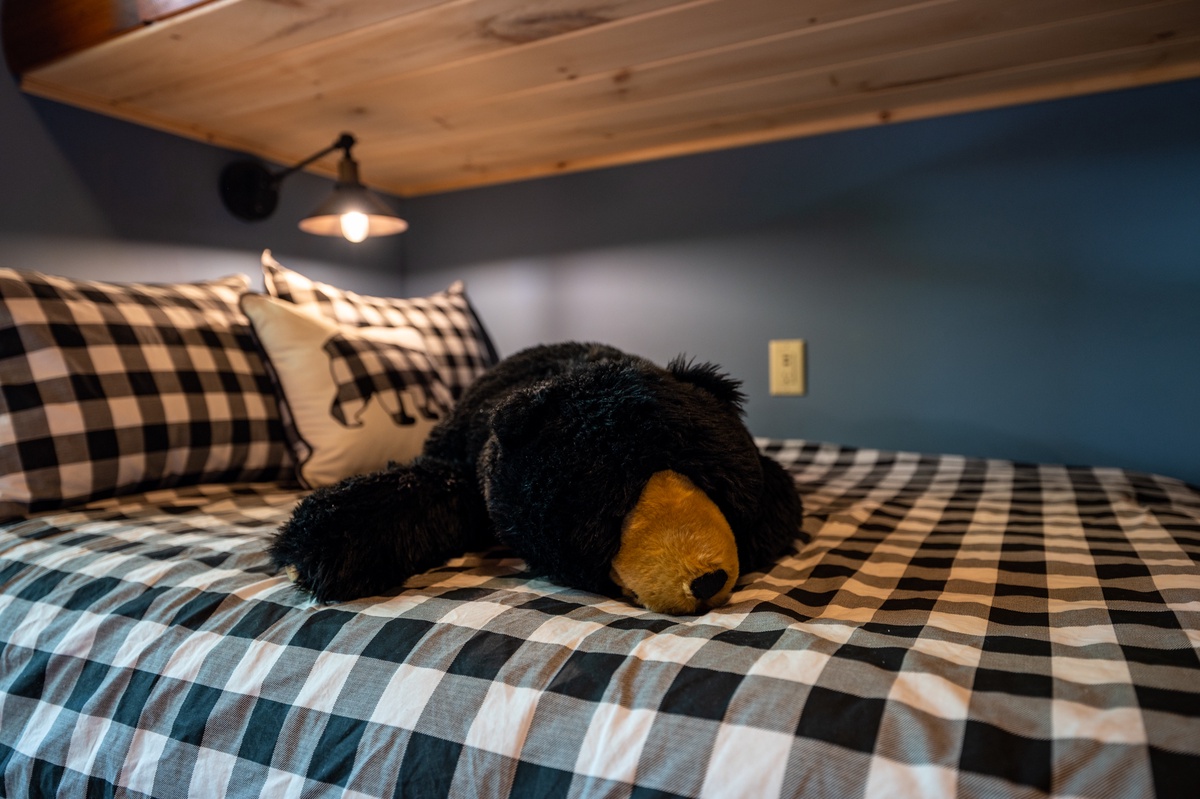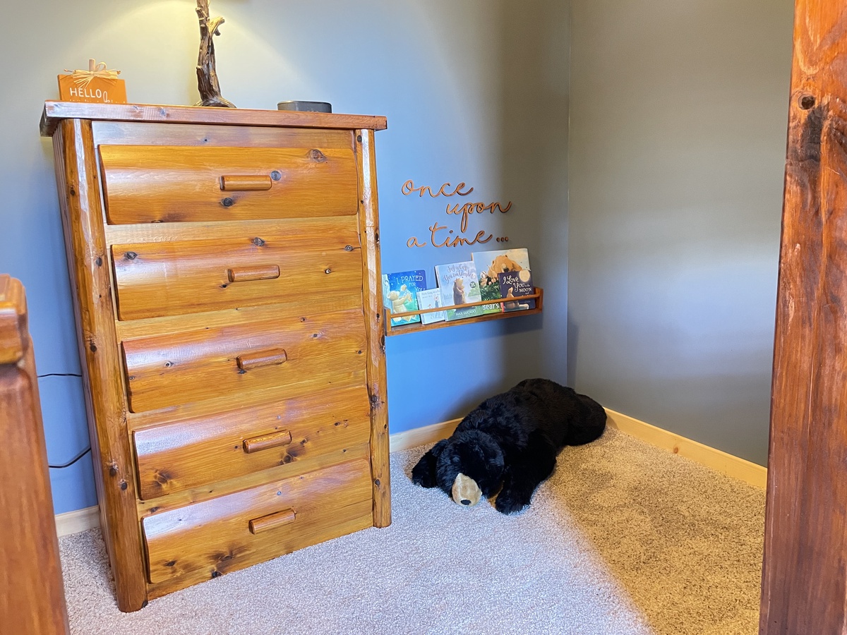 Stepping into the lower-level custom designed bunkroom, made with children in mind, with its reading corner providing books and a snuggly bear, I am reminded of Henry Wadsworth Longfellow’s beginning phrase from his poem: The Children’s Hour: