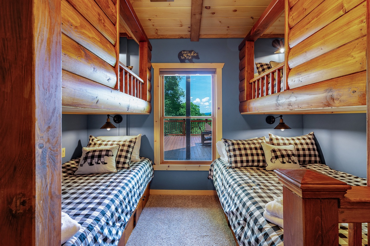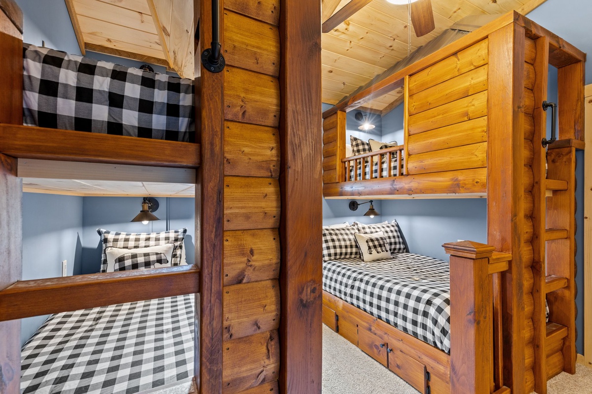 - Bunkbed room with 2 custom designed bunkbeds, each bed having its own reading lamp and power/USB receptacles