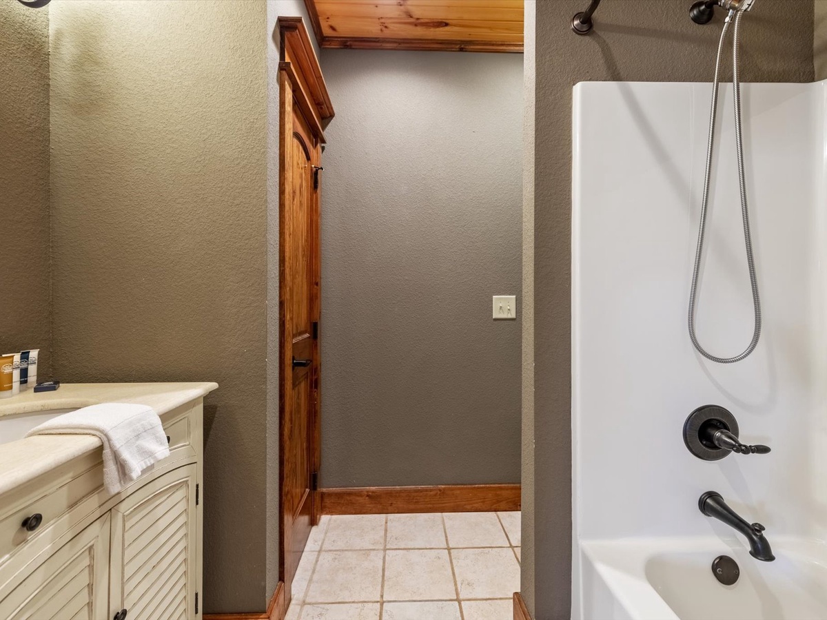 - Shared full bathroom with shower/tub combo