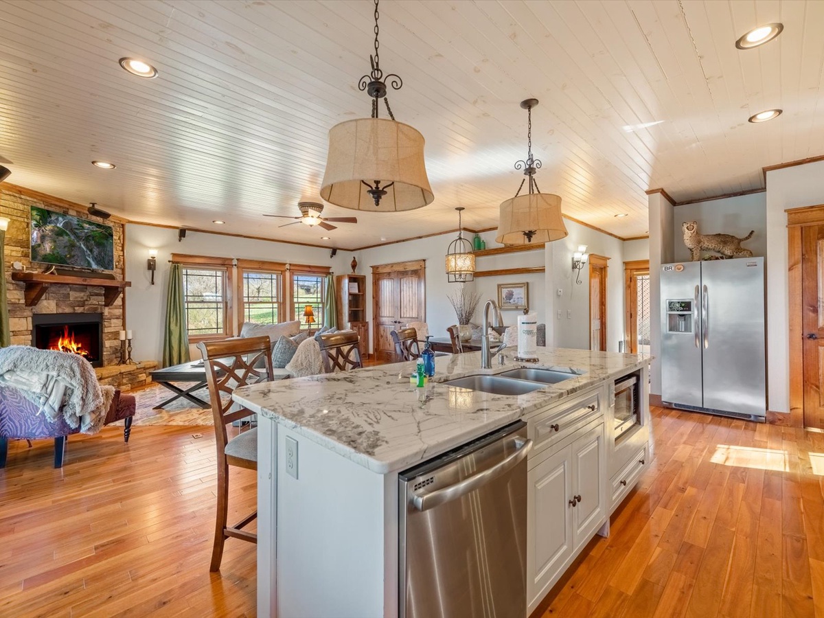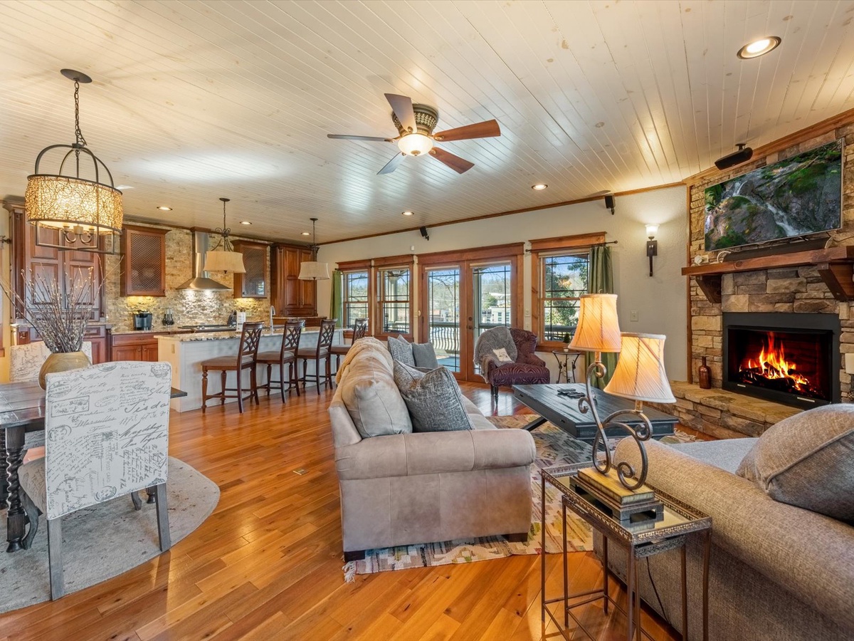 - Gas fireplace and 70” TV