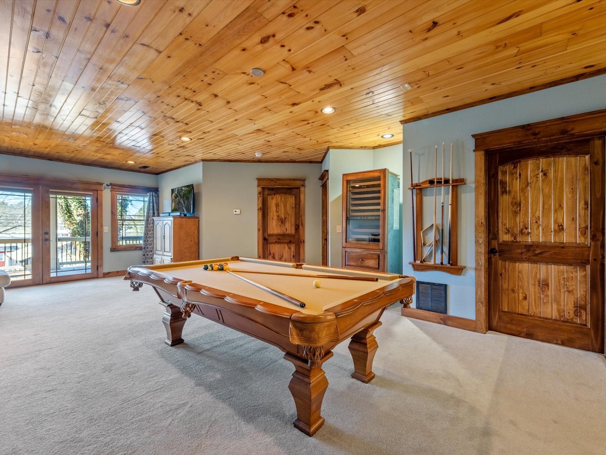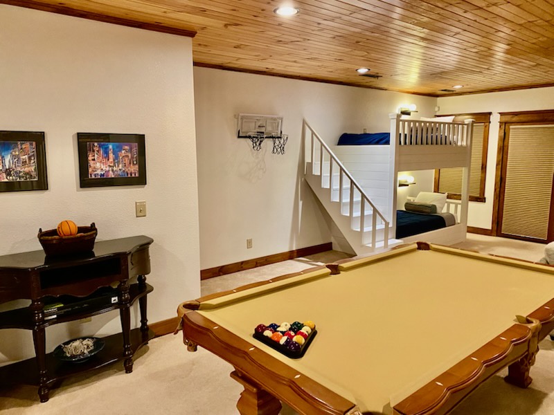The dining and kitchen area offer plenty of seating for you and your guests for any meal of the day. Afterward, invite them to the living room where you can sit in front of the fireplace and make vacation memories with your loved ones. Regardless of how you spend your day, you can always find some extra fun in the downstairs game room. The lower level also offers another bedroom for you or another guest to rest your tired bones at the end of an adventurous day. It's safe to say that Blue Ridge Cottage is a top-notch place to spend your next vacation!