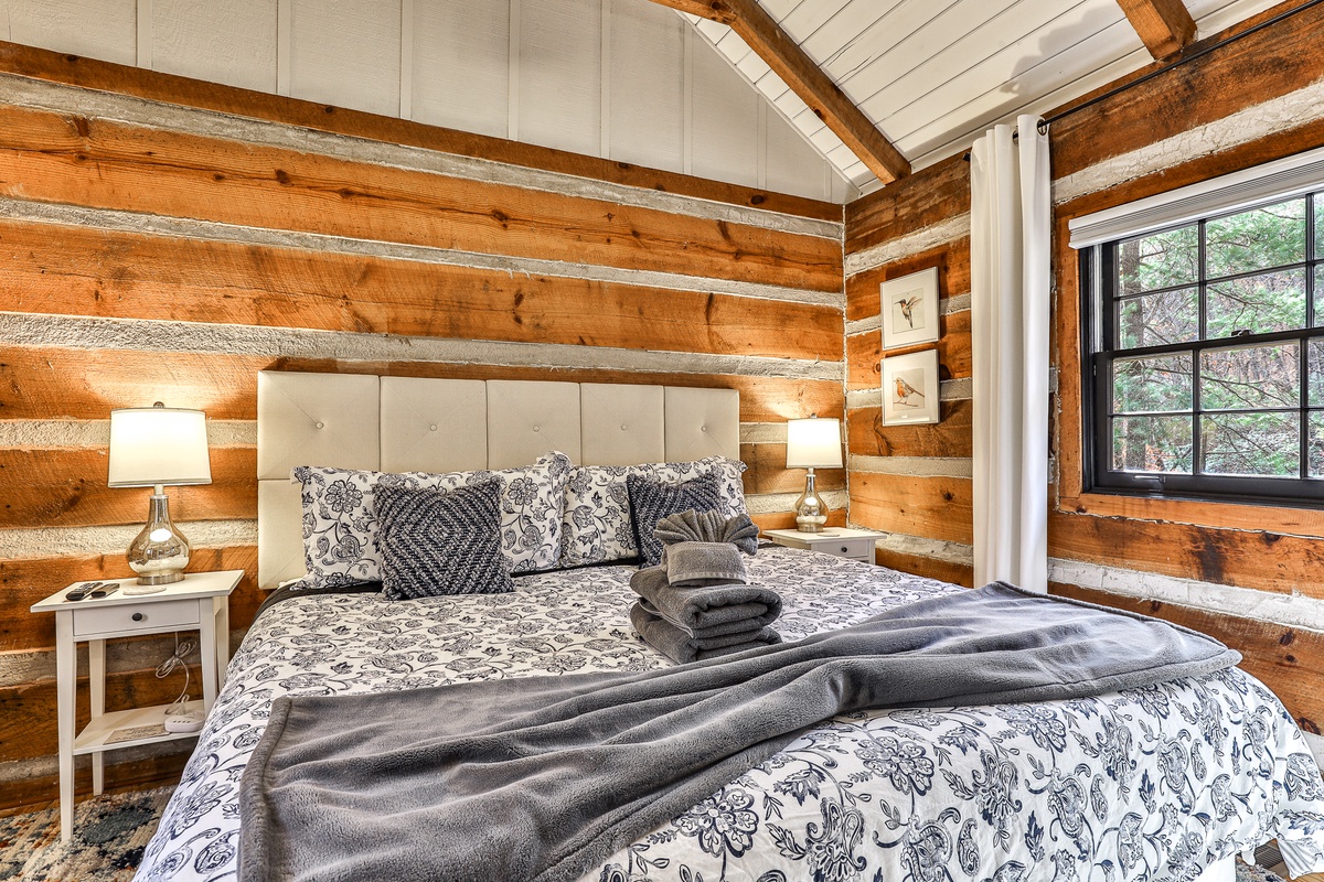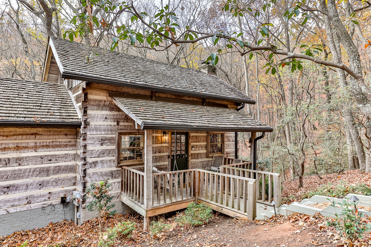This picture-perfect cabin makes for an incredible getaway, loaded with stylish charm from room to room. It is a cozy, yet stylish retreat, nestled in a beautiful wooded hillside glen with a creek!