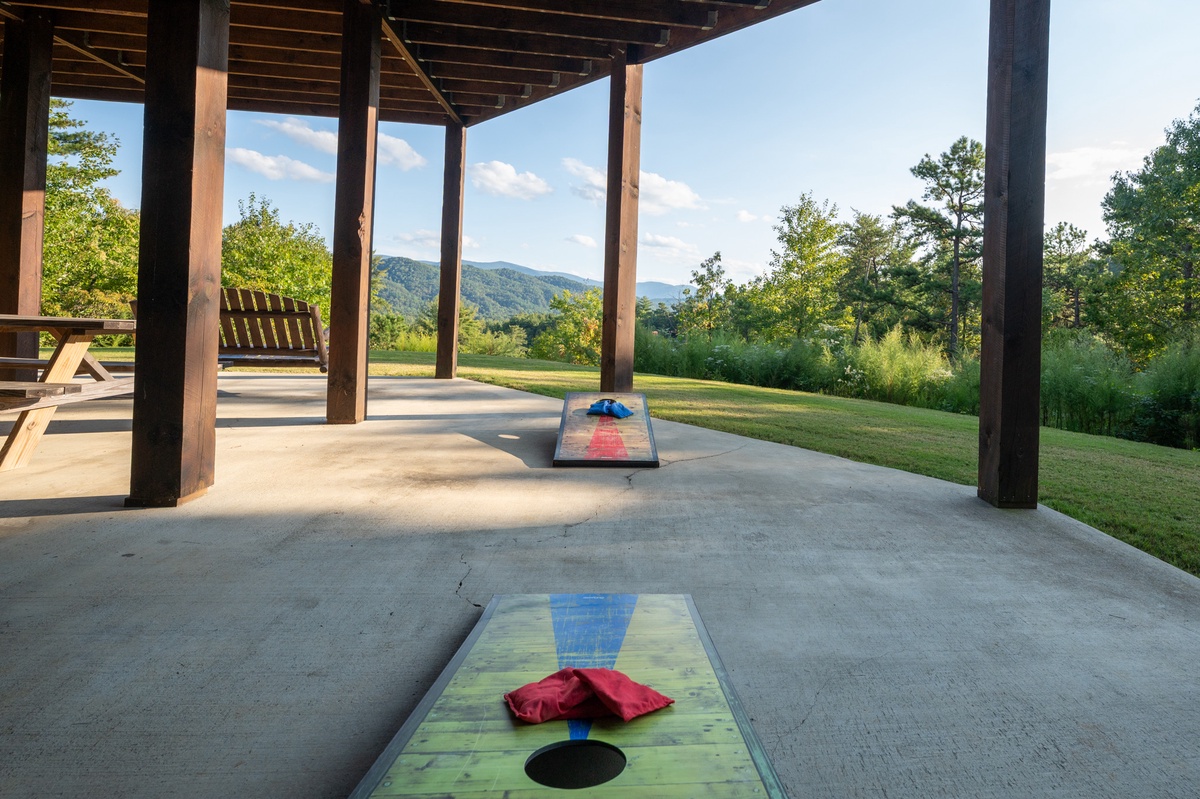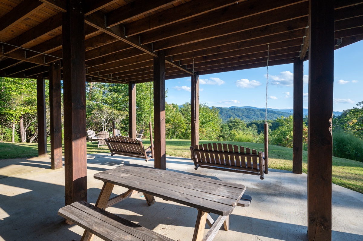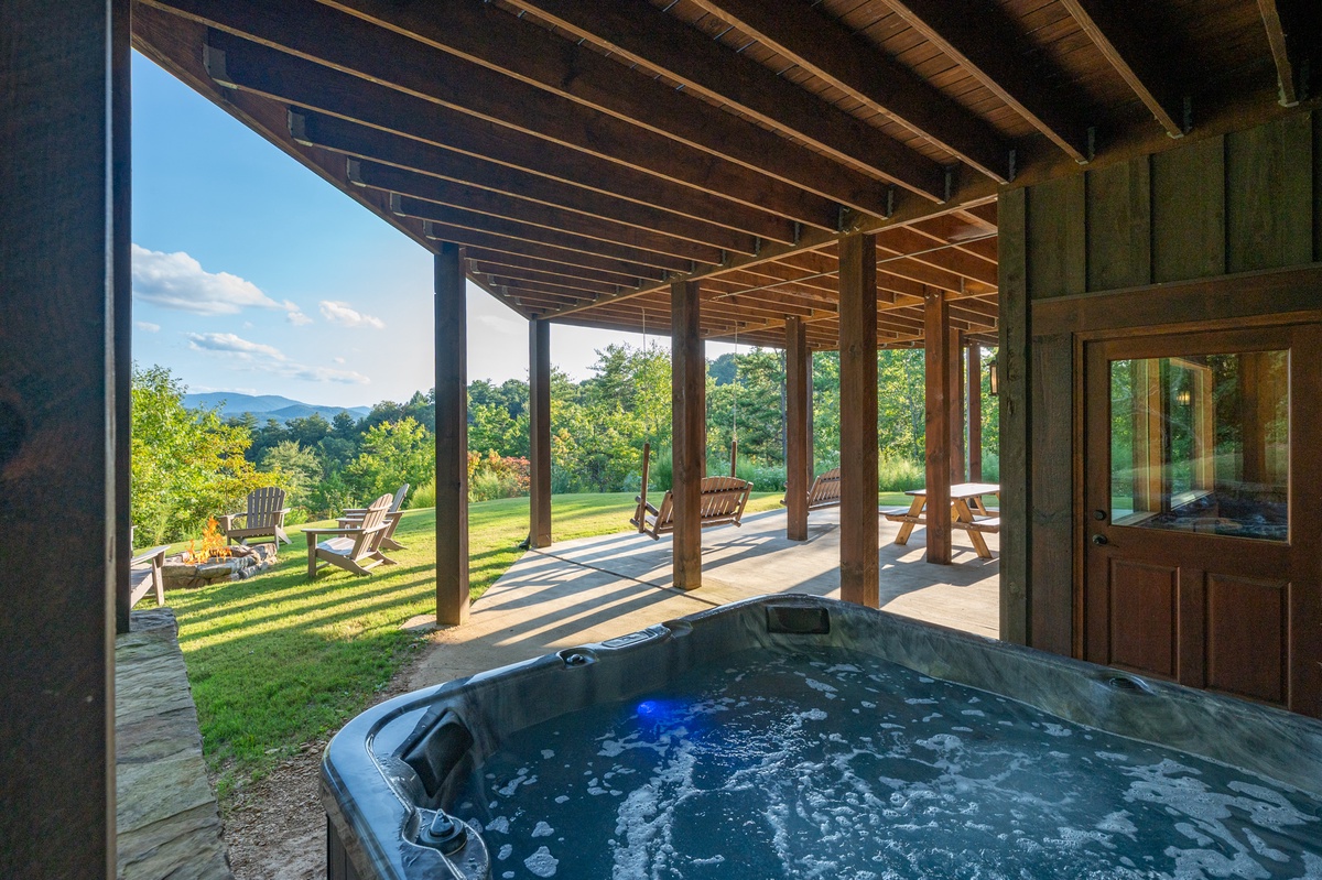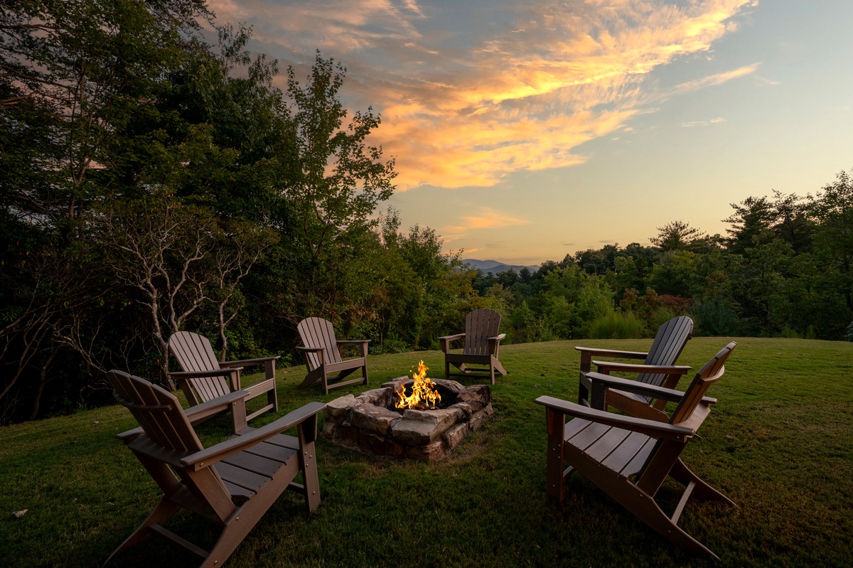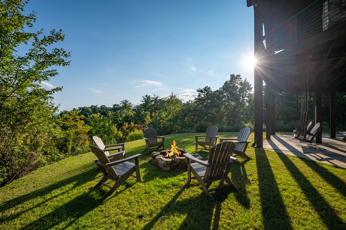 The lower level patio has a 5 person hot tub, 2 large porch swings, and corn hole boards. A must-do activity while staying at Breakaway Ridge is roasting marshmallows over the fire pit after the sun goes down and sitting comfortably on wooden Adirondack chairs.