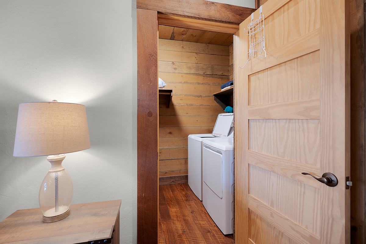 - King bedroom with large walk-in closet home to the washer and dryer and access to shared walk-in shower bathroom