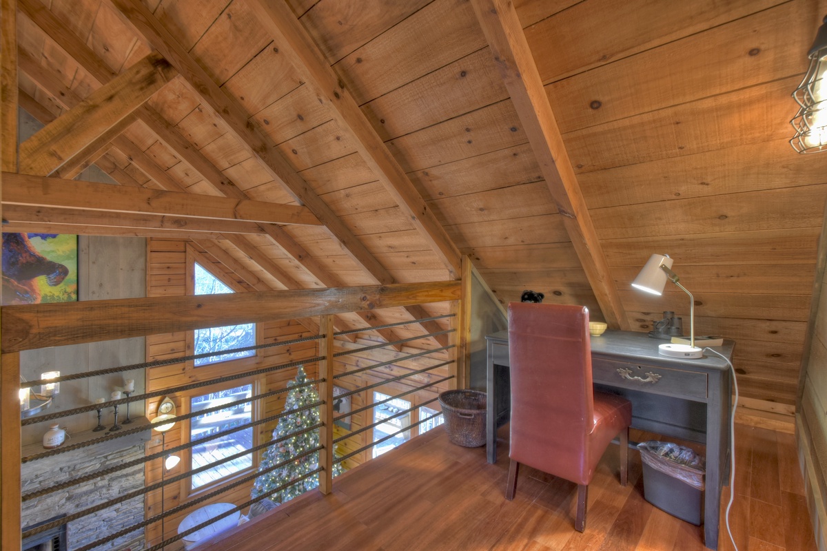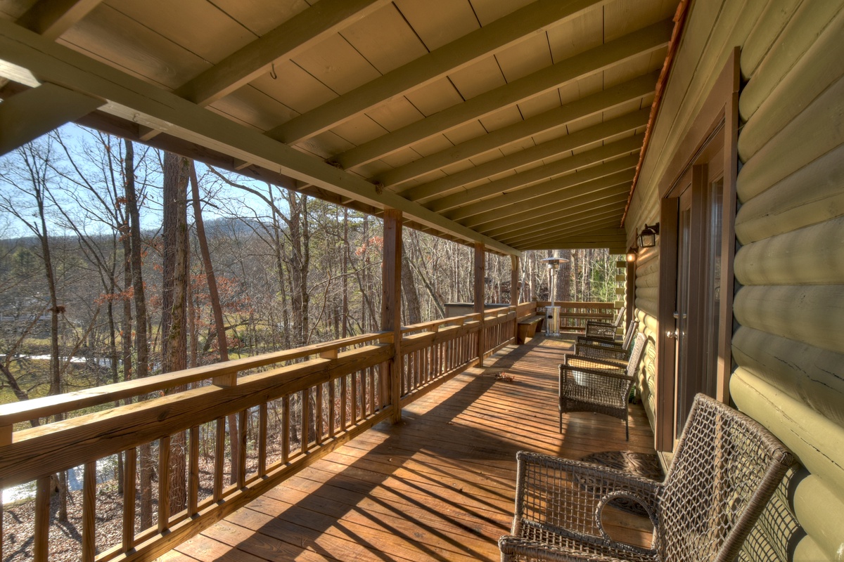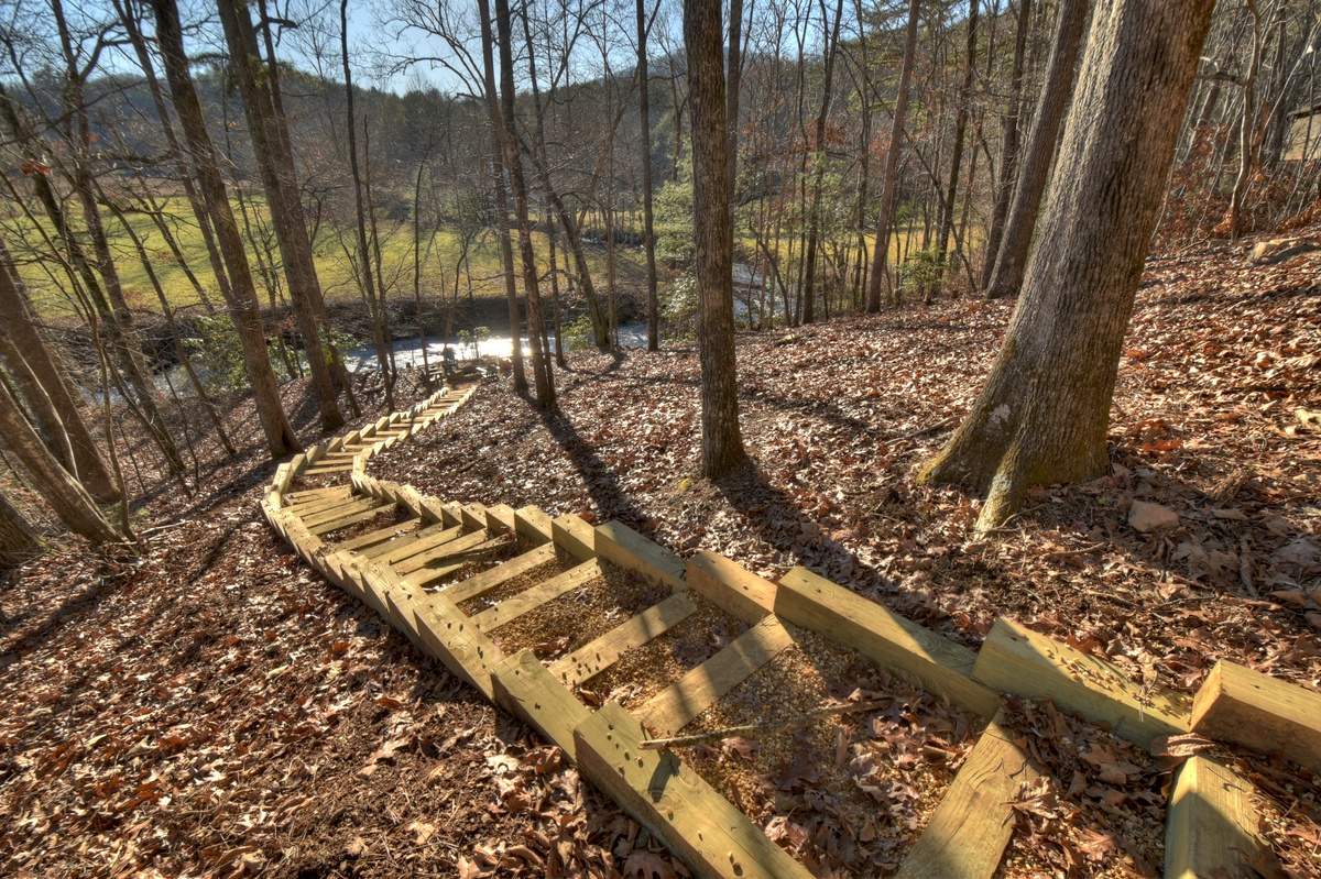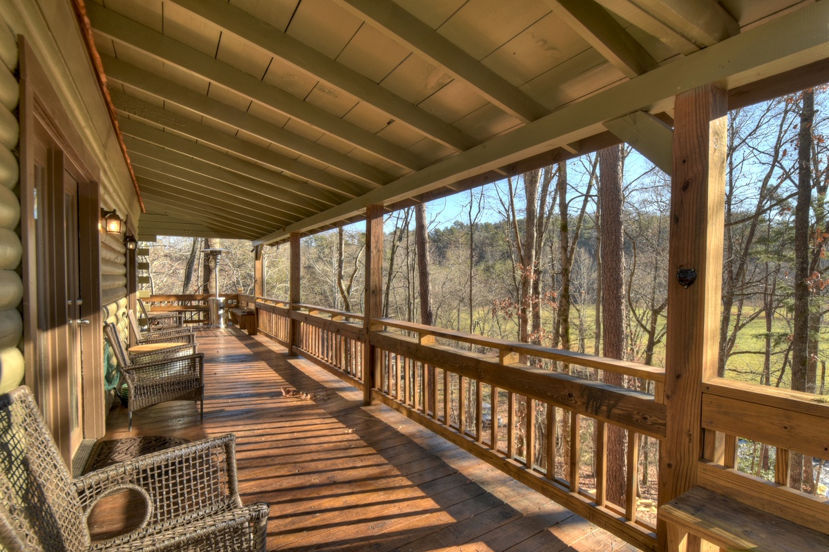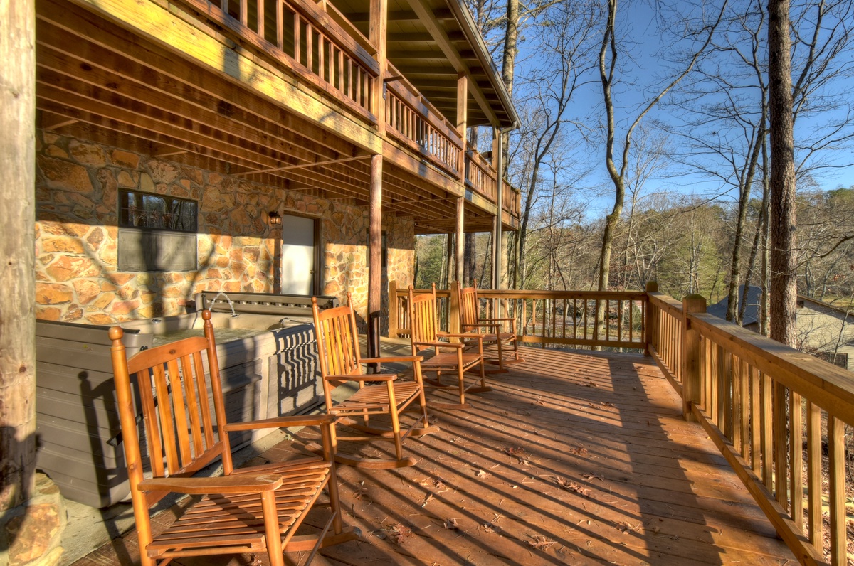 Make your way outside to the lower deck with an outdoor wood-burning fireplace where a warm and inviting hot tub that overlooks the rushing waters of Fightingtown Creek awaits you. Every day is an amazing day spending your afternoons and evenings listening to the sounds of nature and taking in the fresh mountain air as the sun goes down in the gorgeous North Georgia mountains.